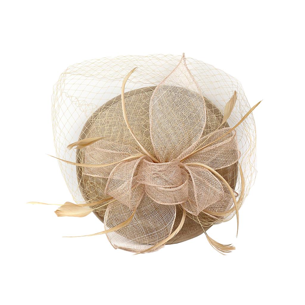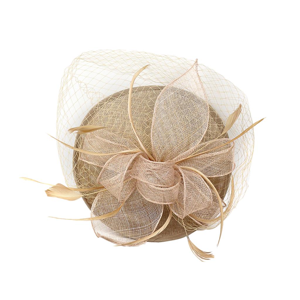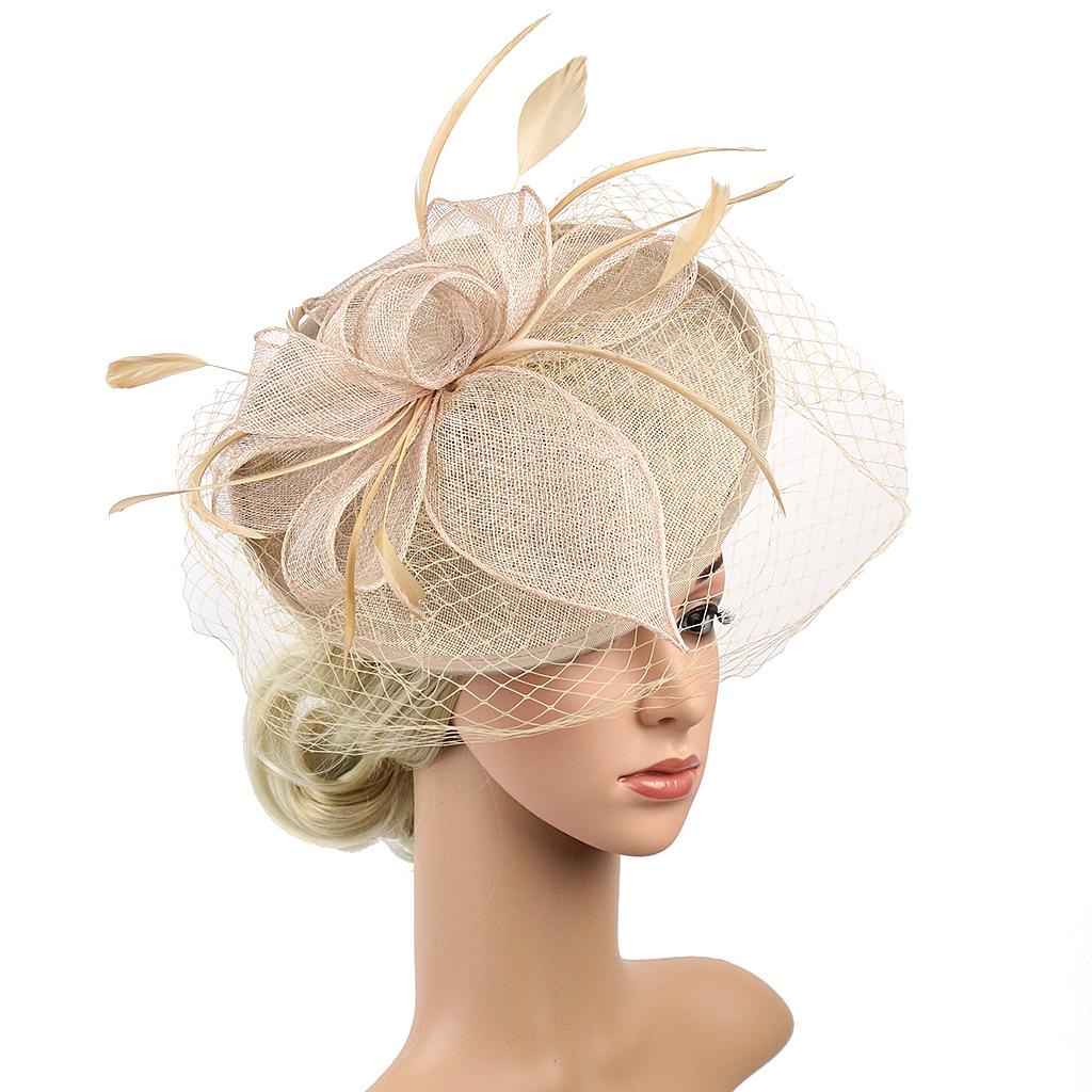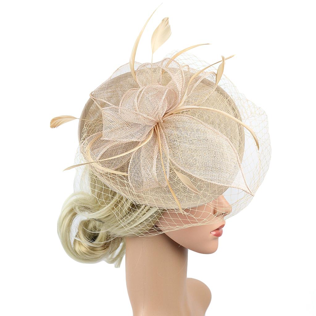 Sinamay Hat Feather Headband Fascinator Veil Wedding Royal Ascot Champagne