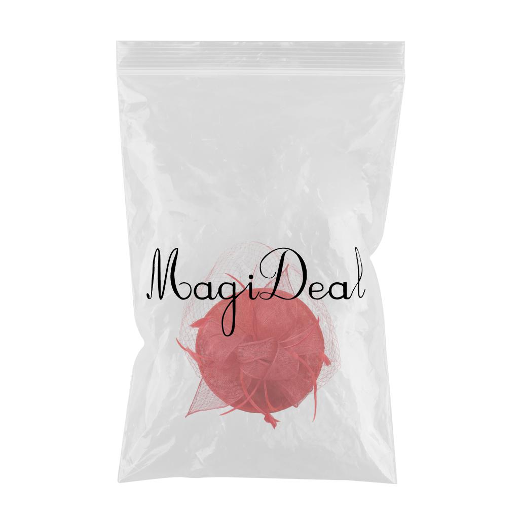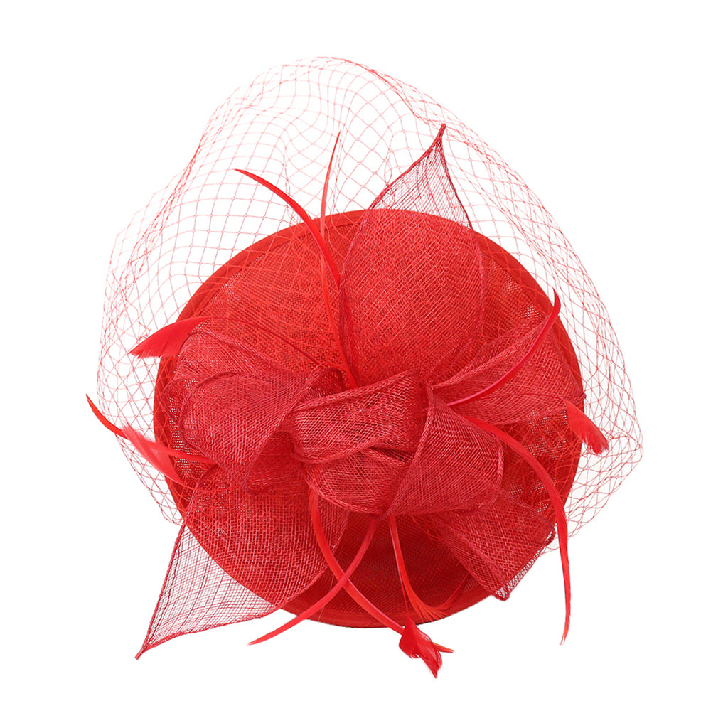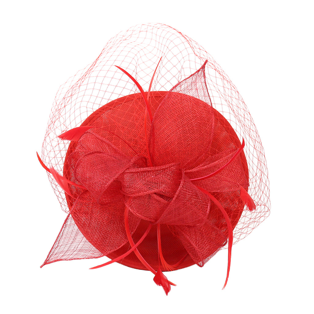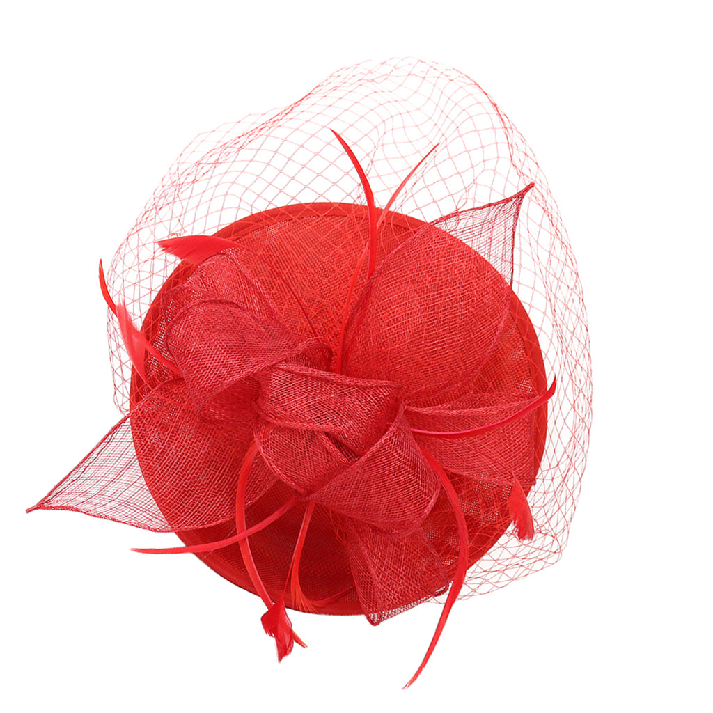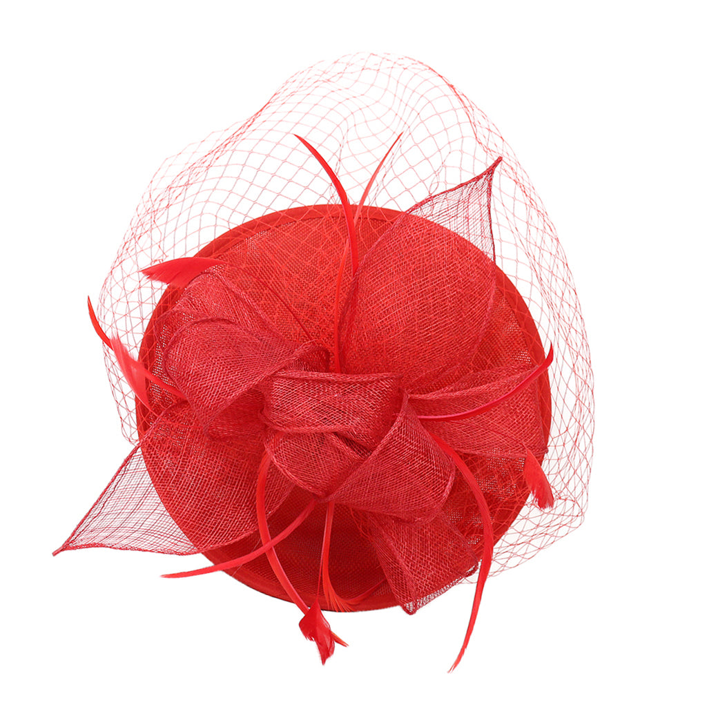 Sinamay Hat Feather Headband Fascinator Veil Wedding Royal Ascot Red