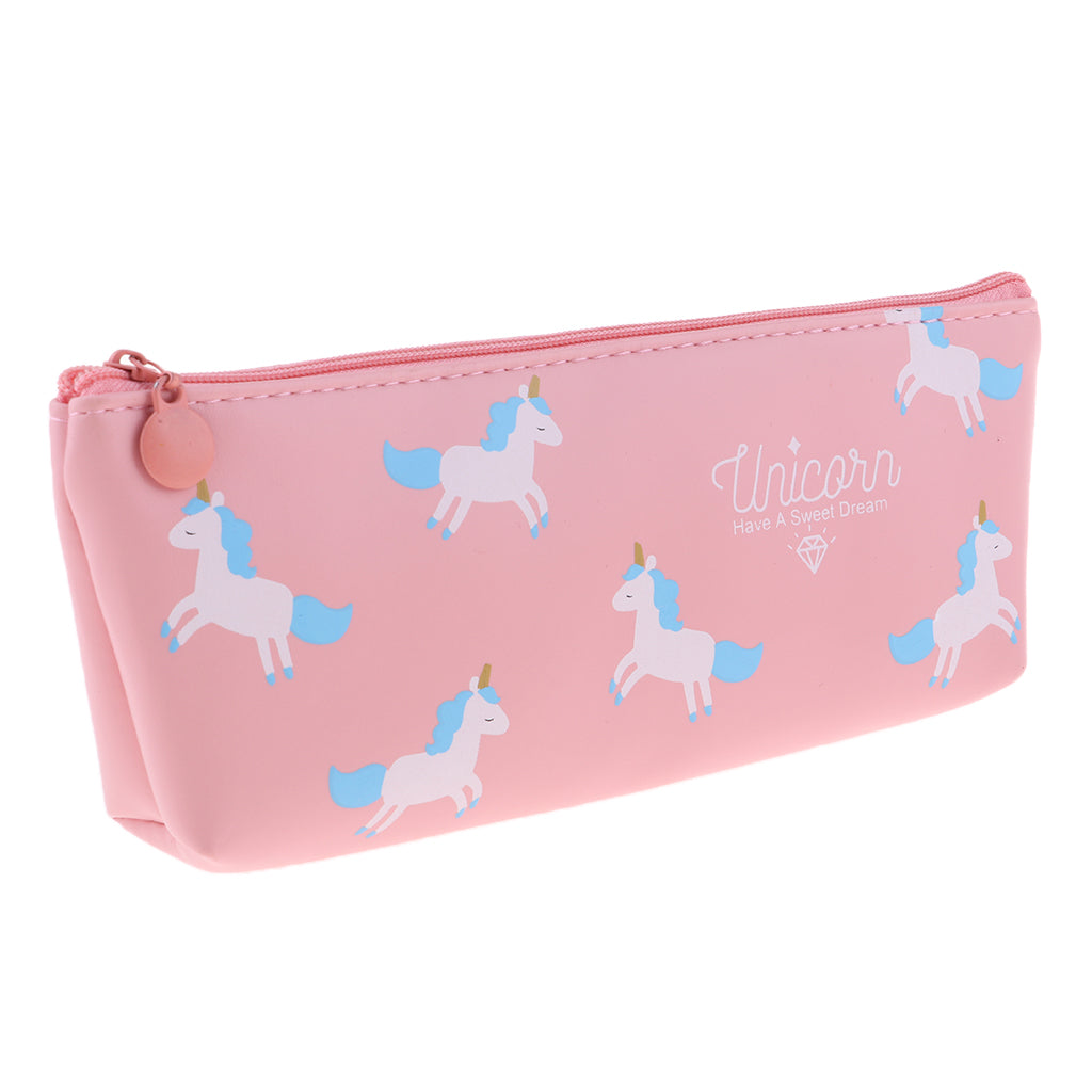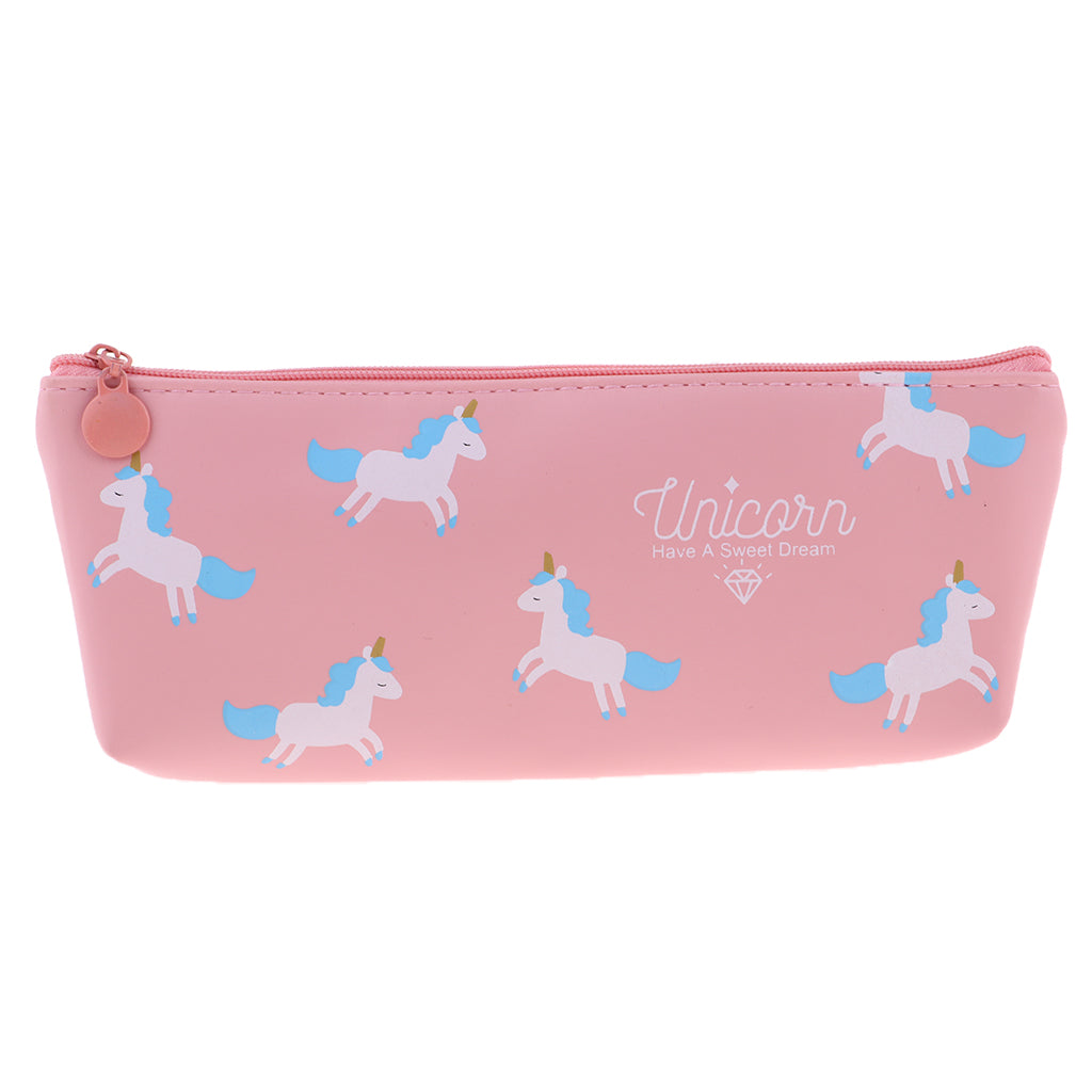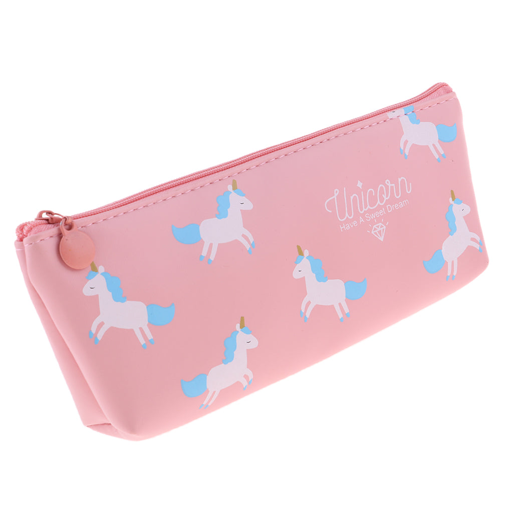 Soft Cartoon Zipper Pouch Pencil Pen Case Holder Cosmetic Makeup Bag Pink