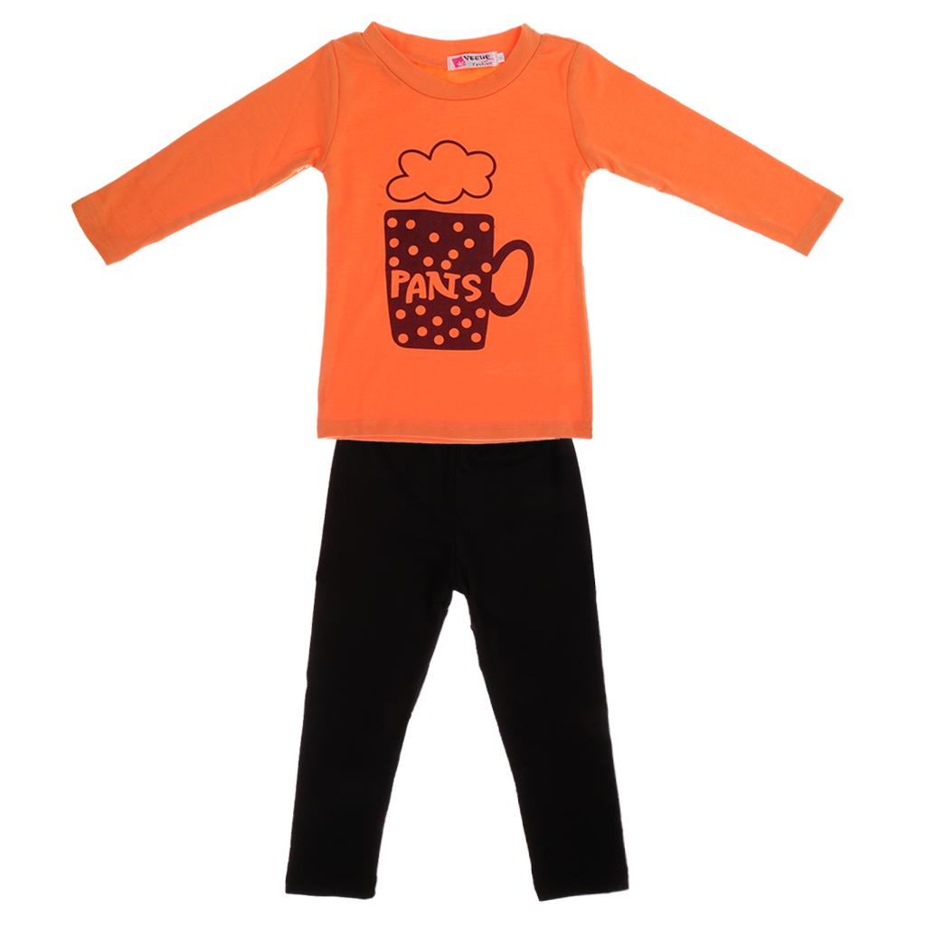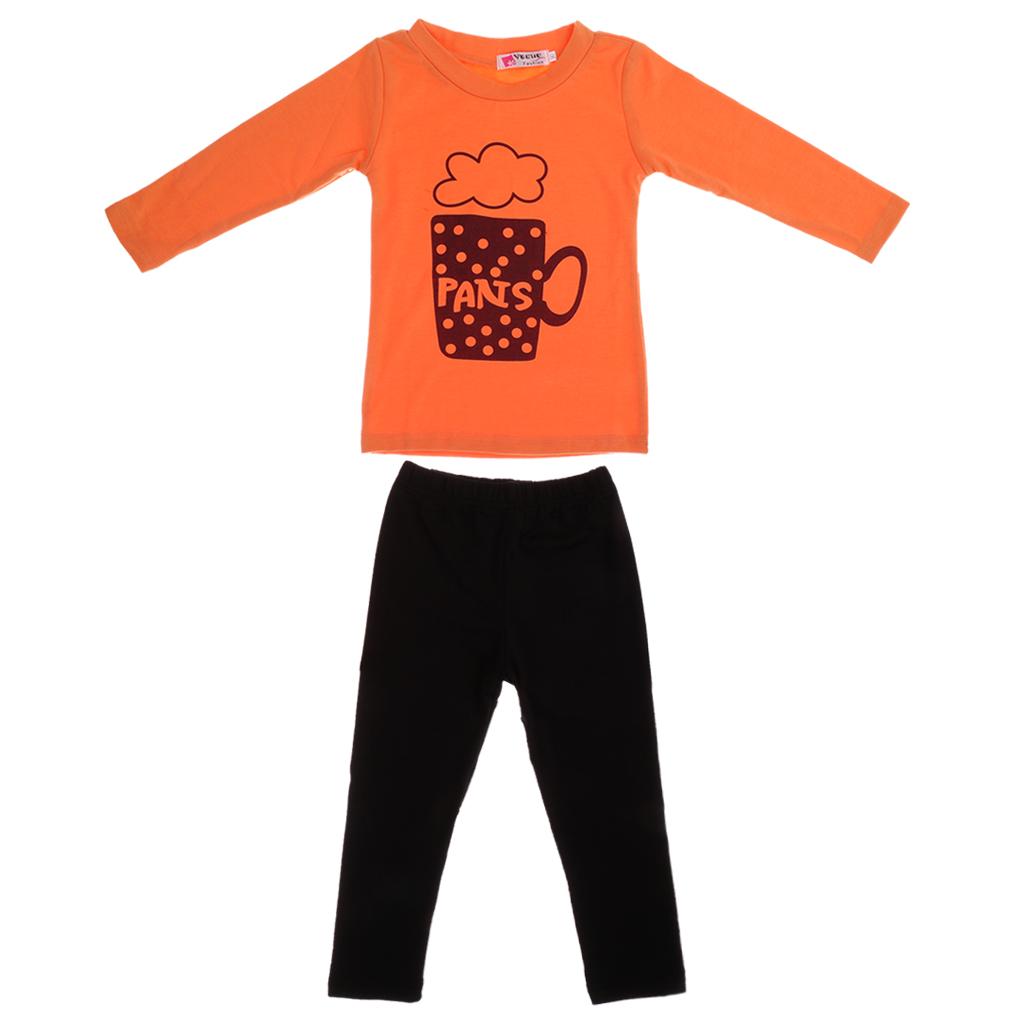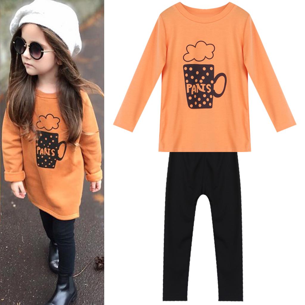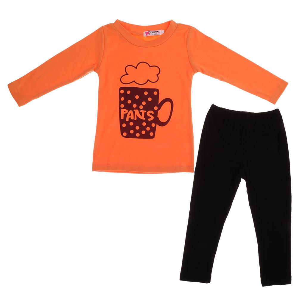 Stylish Kids Girls Orange T-shirt Tops and Black Pants 2Pcs Outfits 130cm