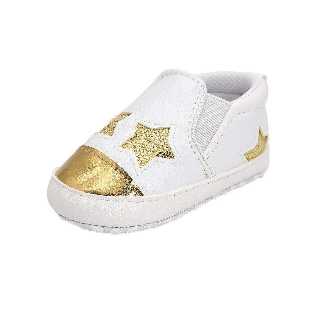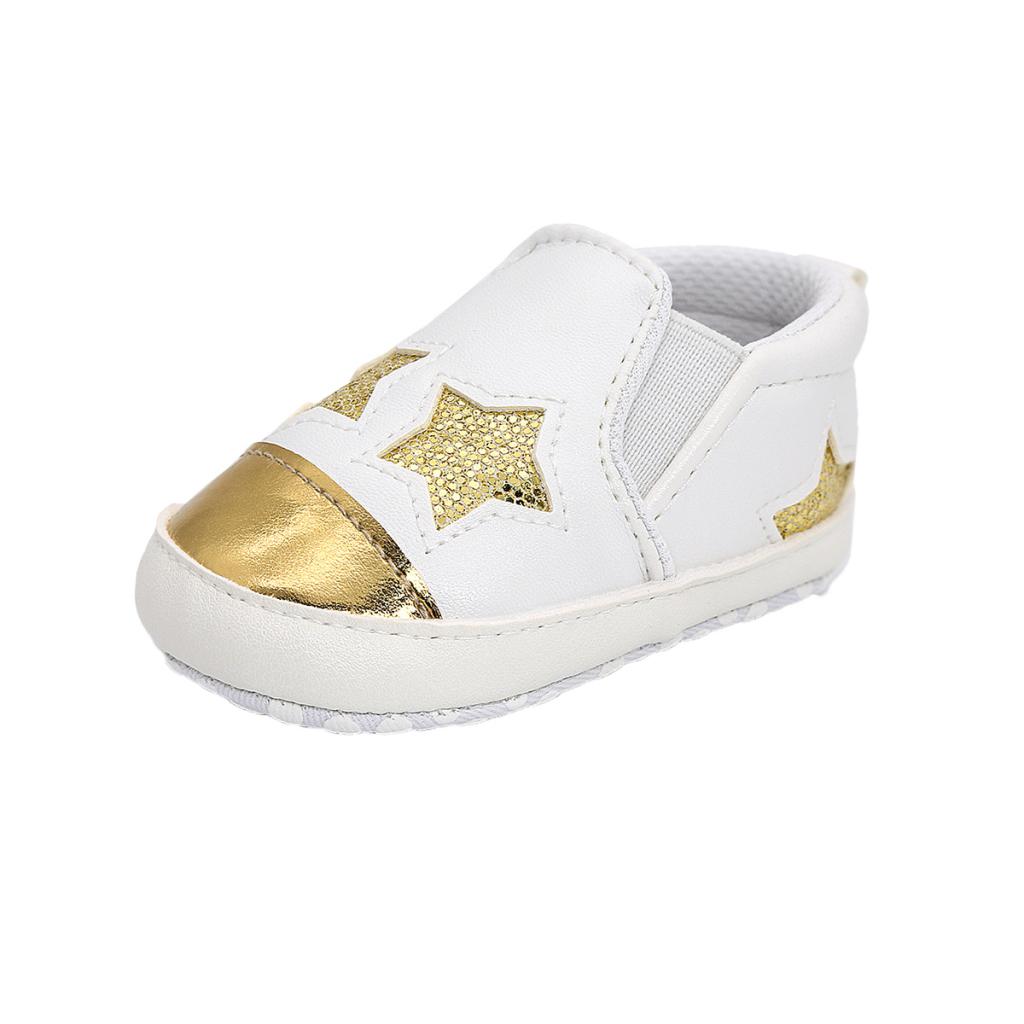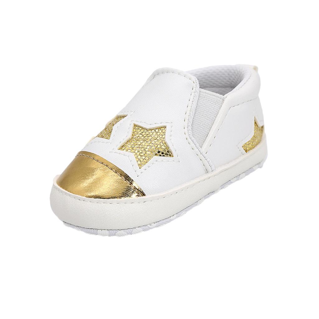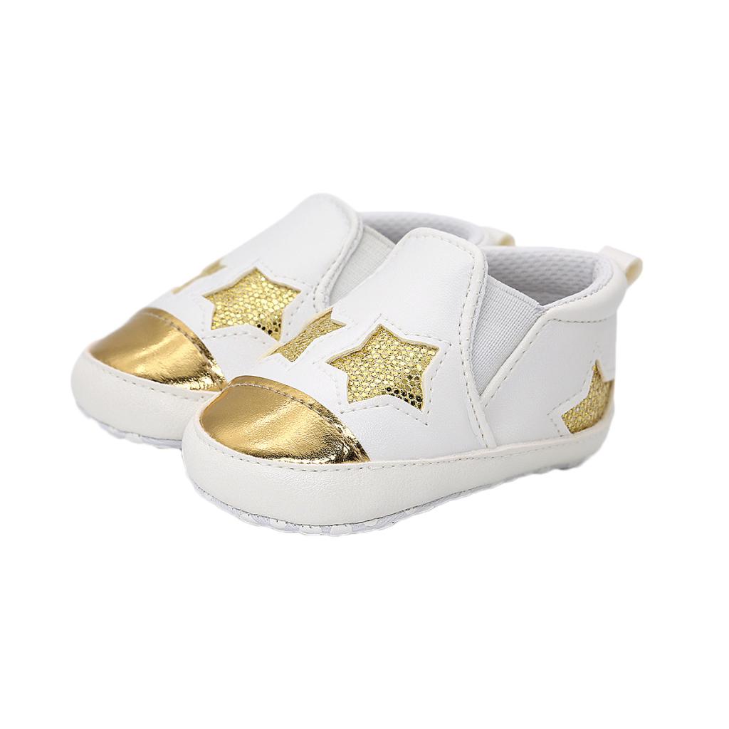 Unisex Baby Crib Shoes Cute Stars Soft Sole Comfort Prewalker Shoes M Gold