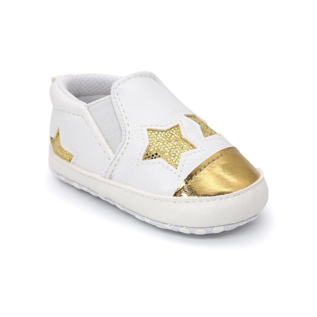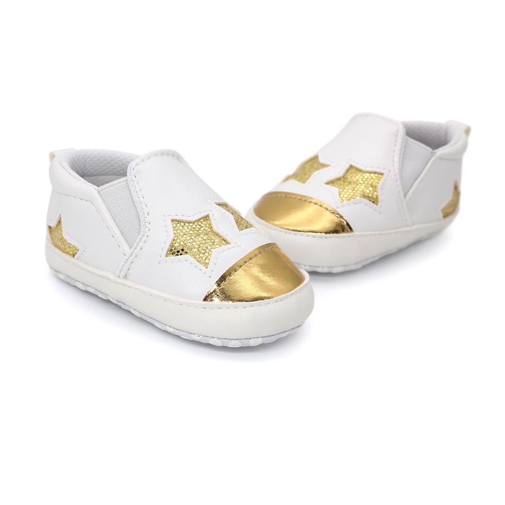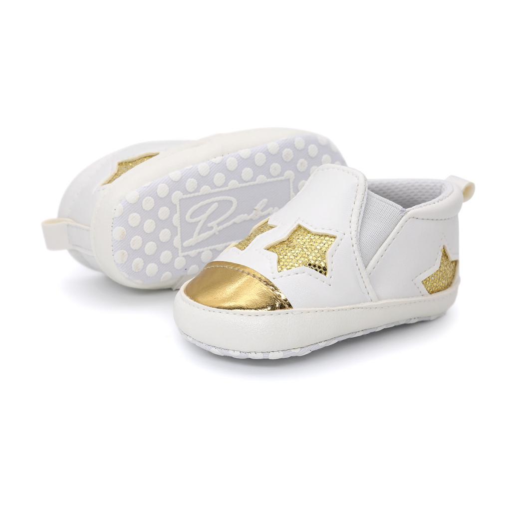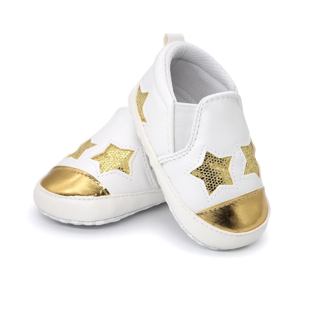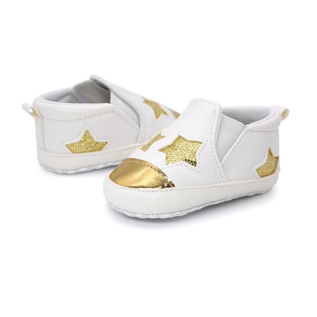 Unisex Baby Crib Shoes Cute Stars Soft Sole Comfort Prewalker Shoes M Gold