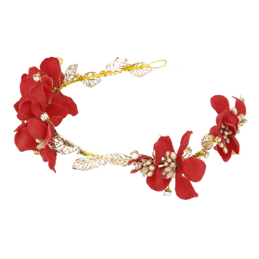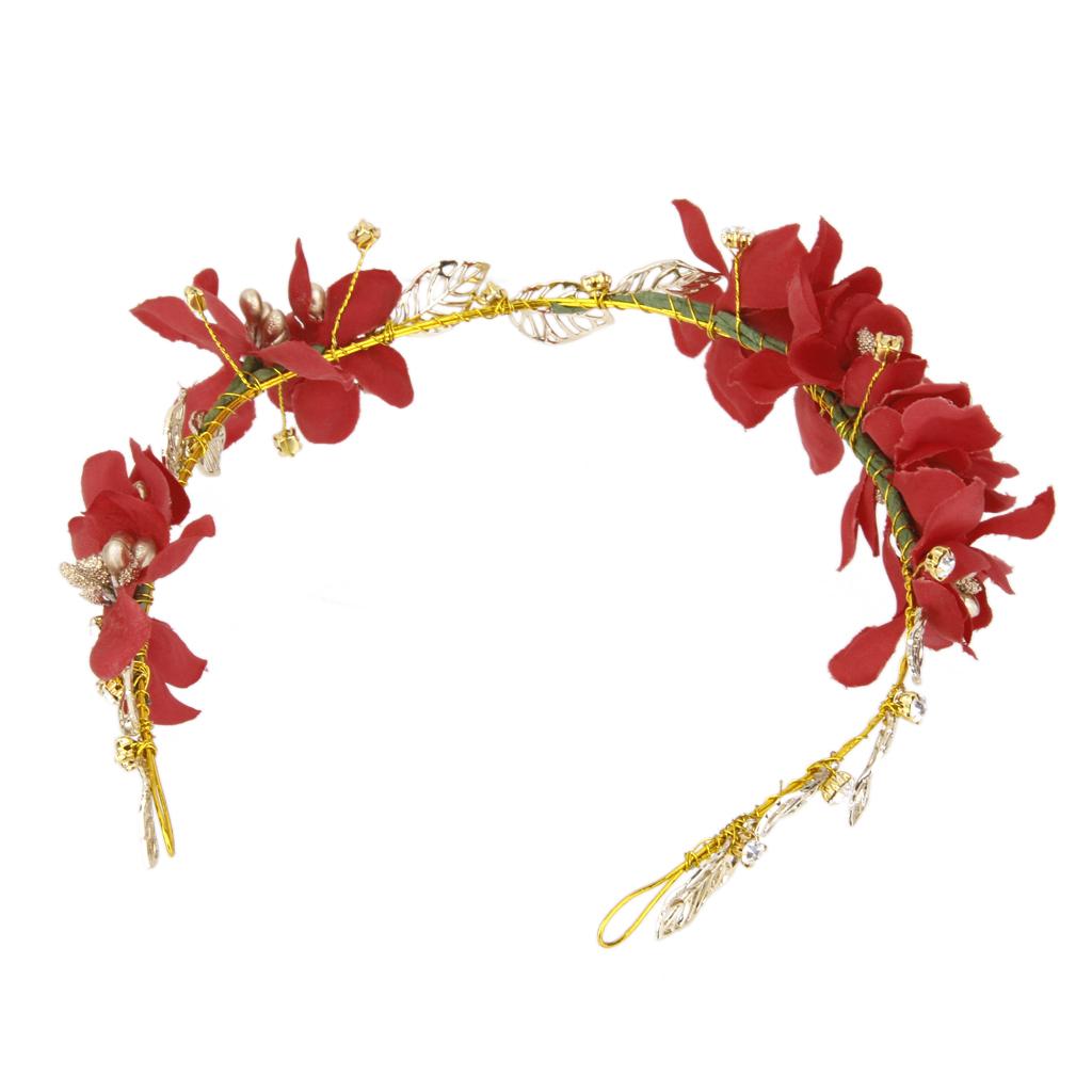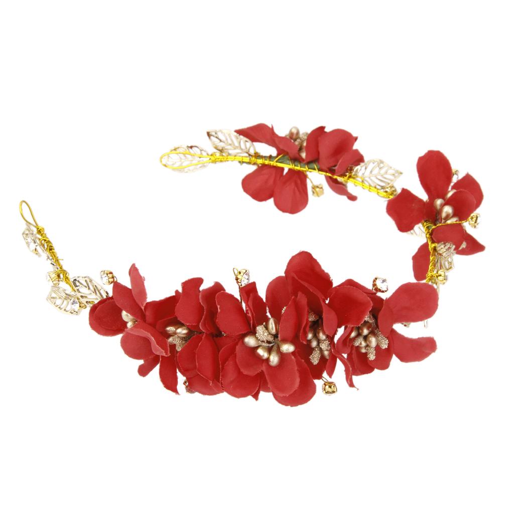 Wedding Party Bridal Women Girl Flower Hair Headband Garland Tiara Crown Red