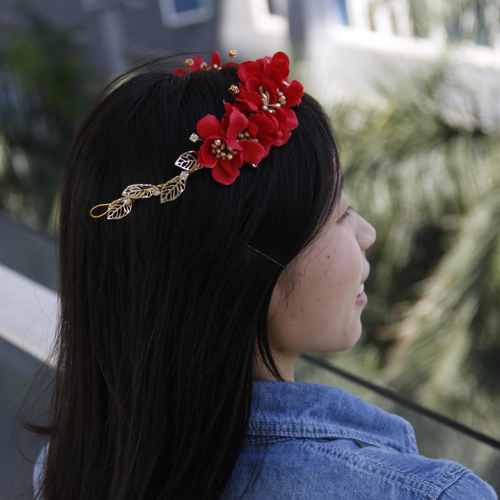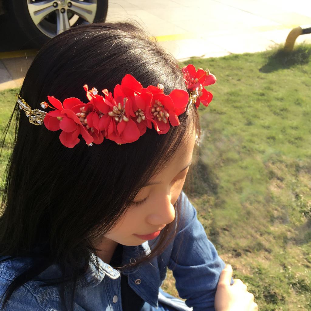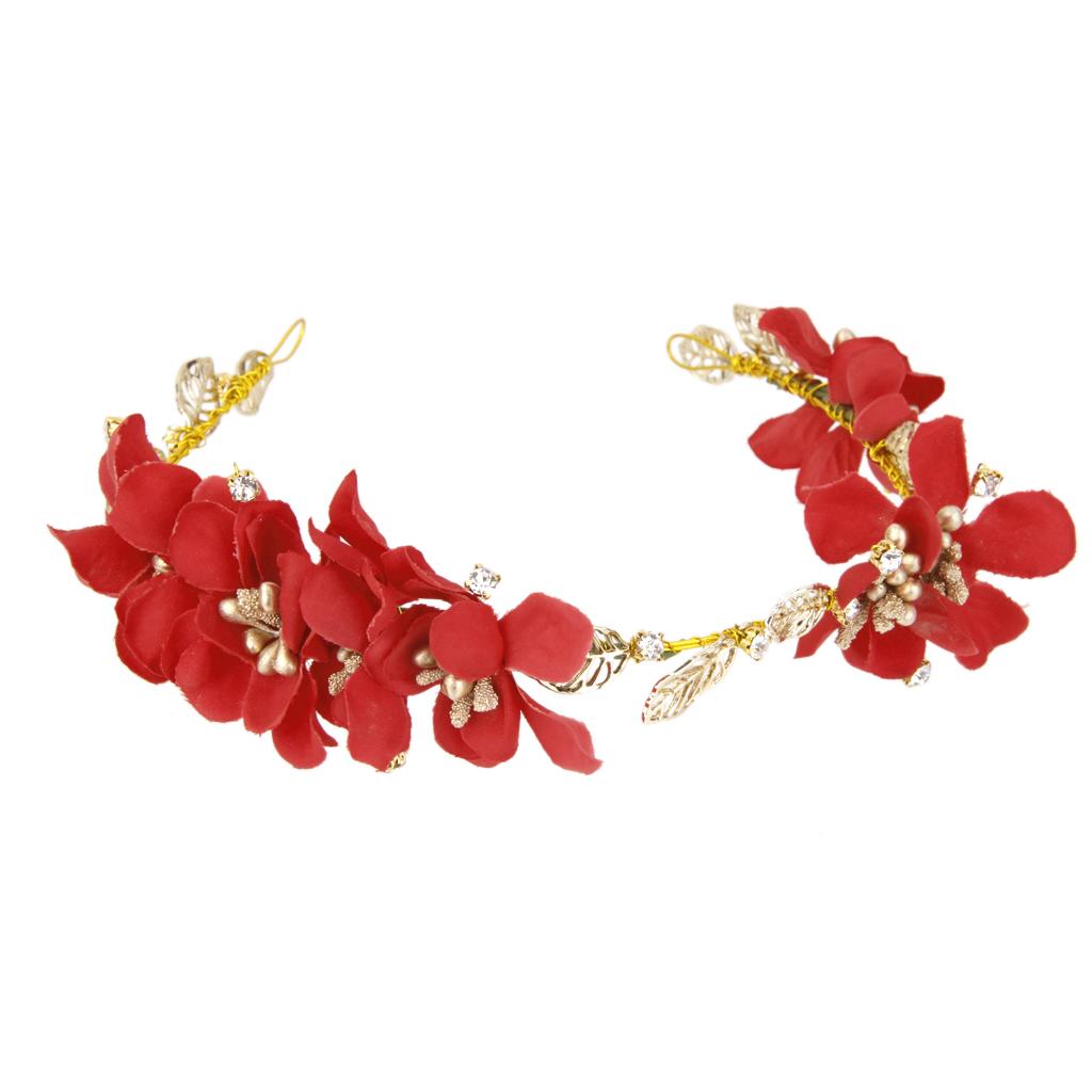 Wedding Party Bridal Women Girl Flower Hair Headband Garland Tiara Crown Red