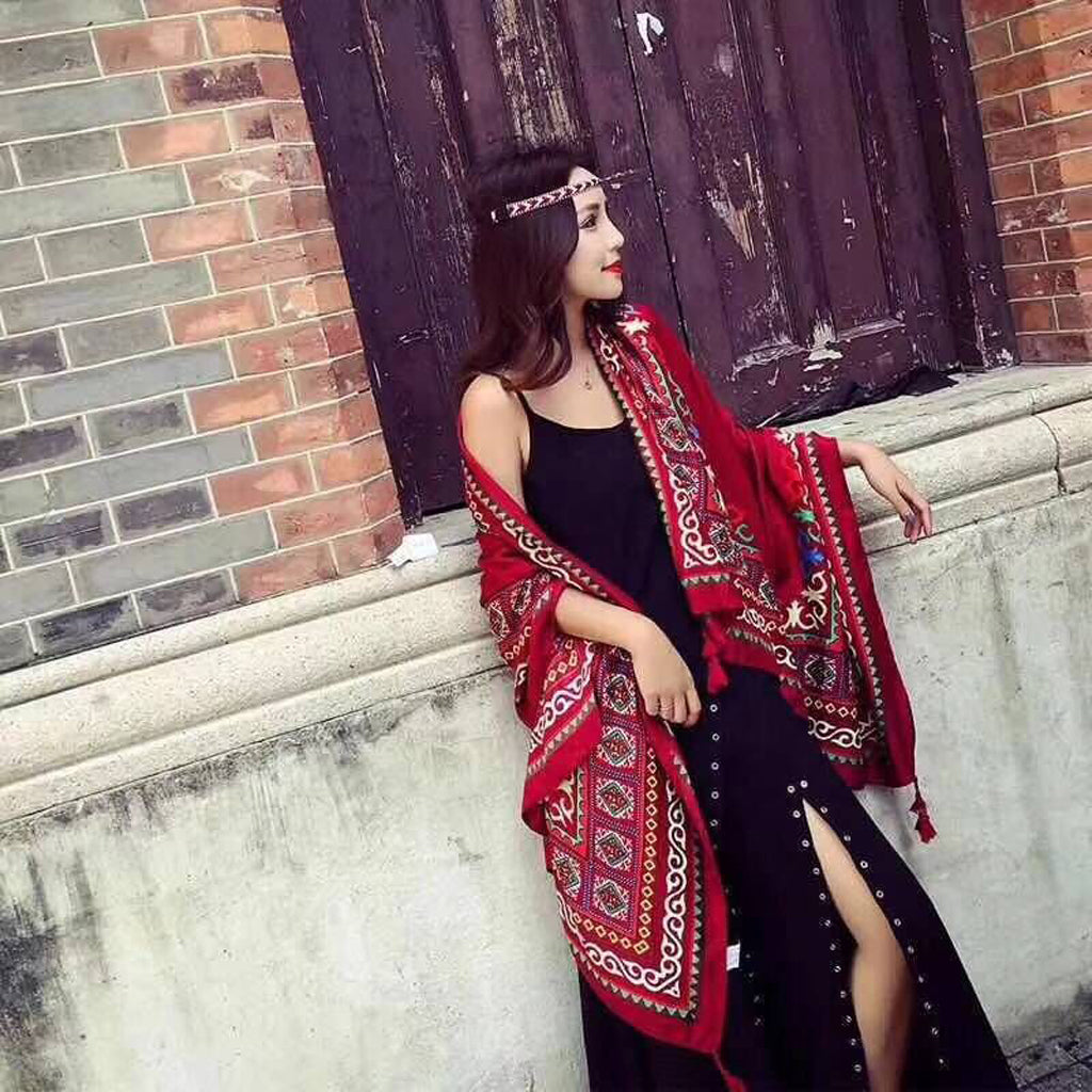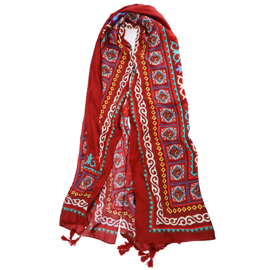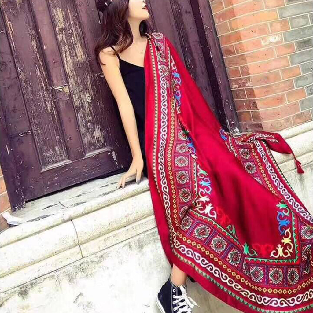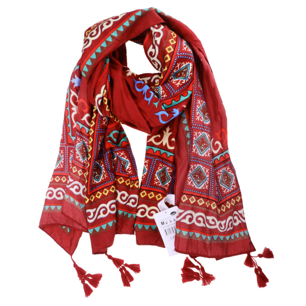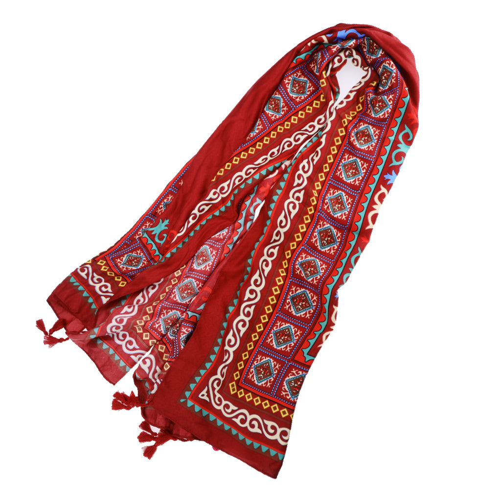 Women Bohemian Fashion Long Cotton Scarf Wraps Tassels Print Shawl Girls #3