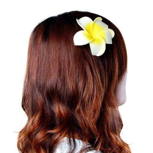 This cute little island style hairclip is decorated with tropical plumeria flowers. Perfect accessory for a summer dress or as a party favor!