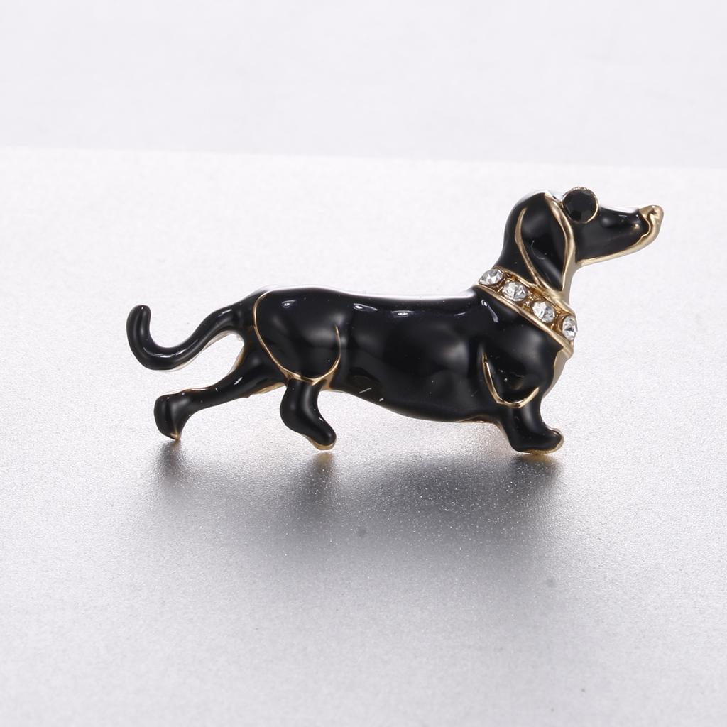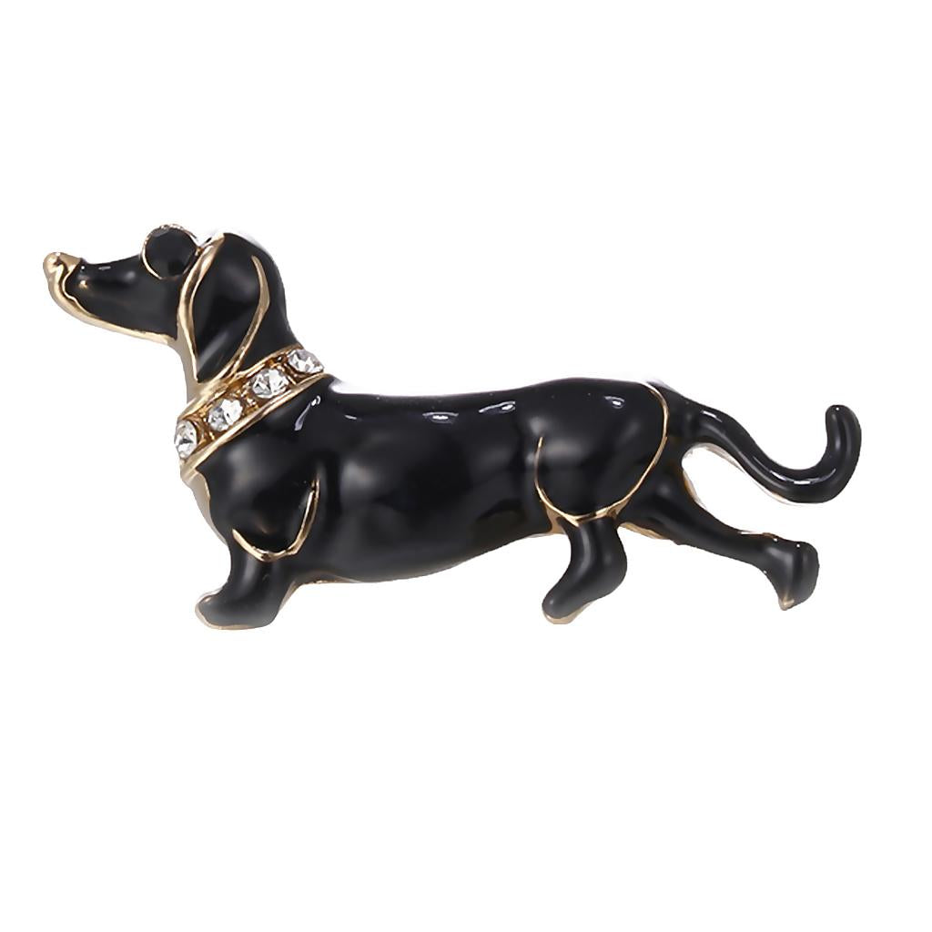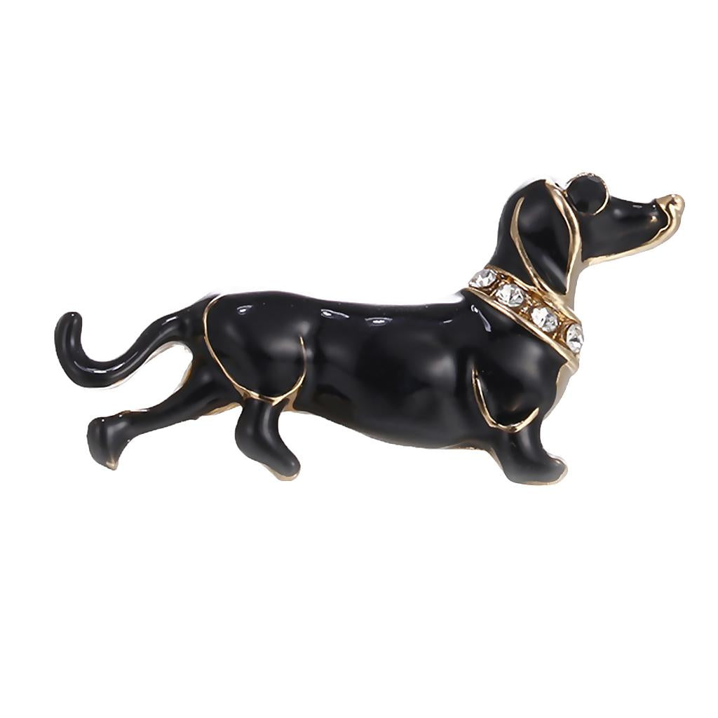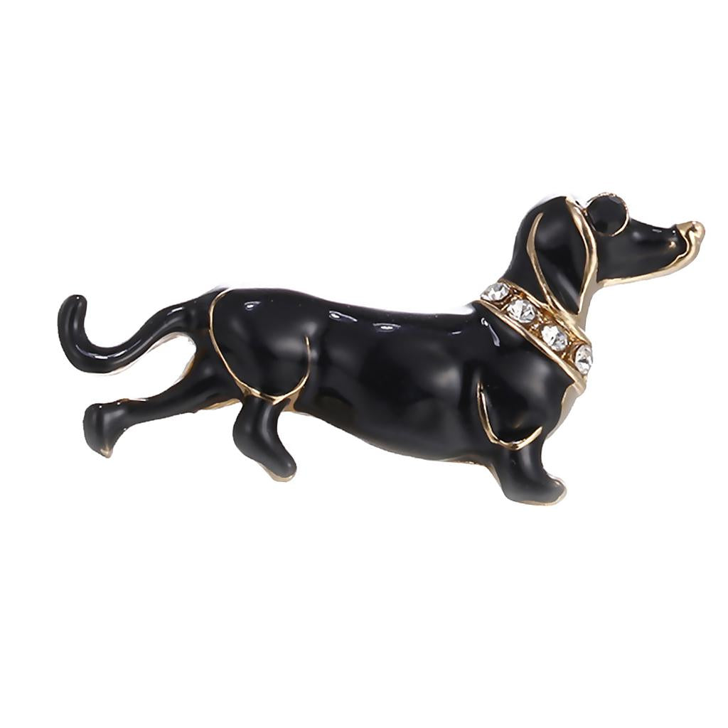 Women Men Jewelry Rhinestone Dog Animal Brooch Corsage Collar Pin black