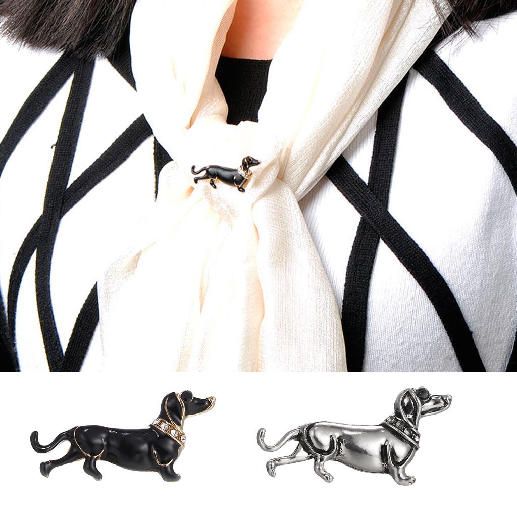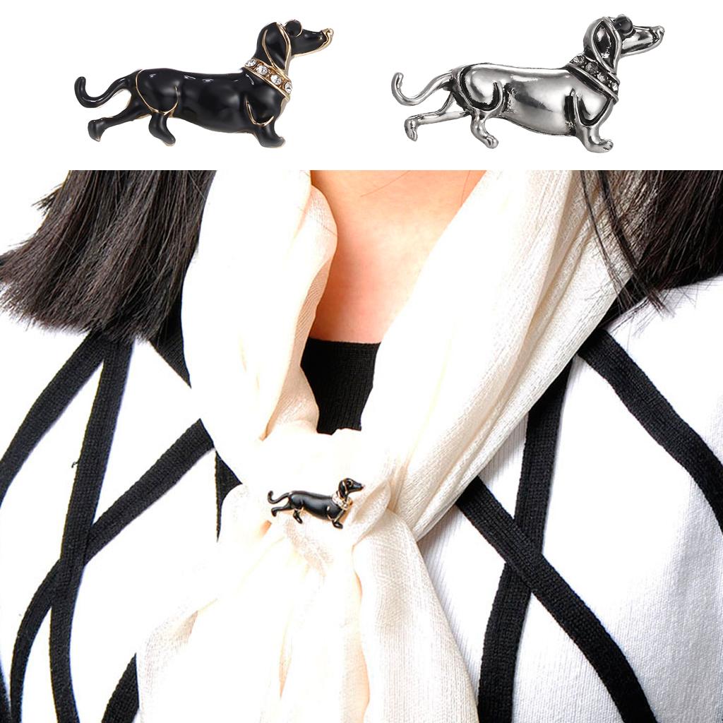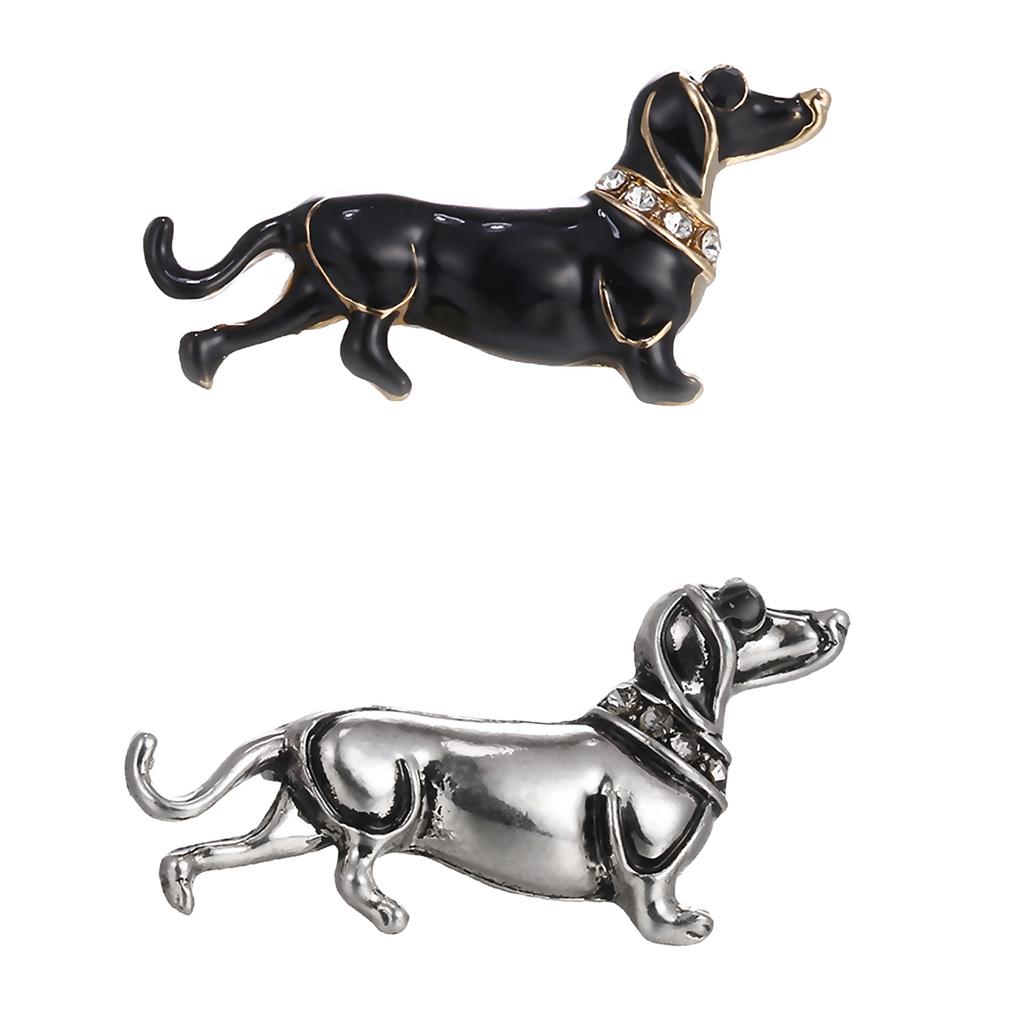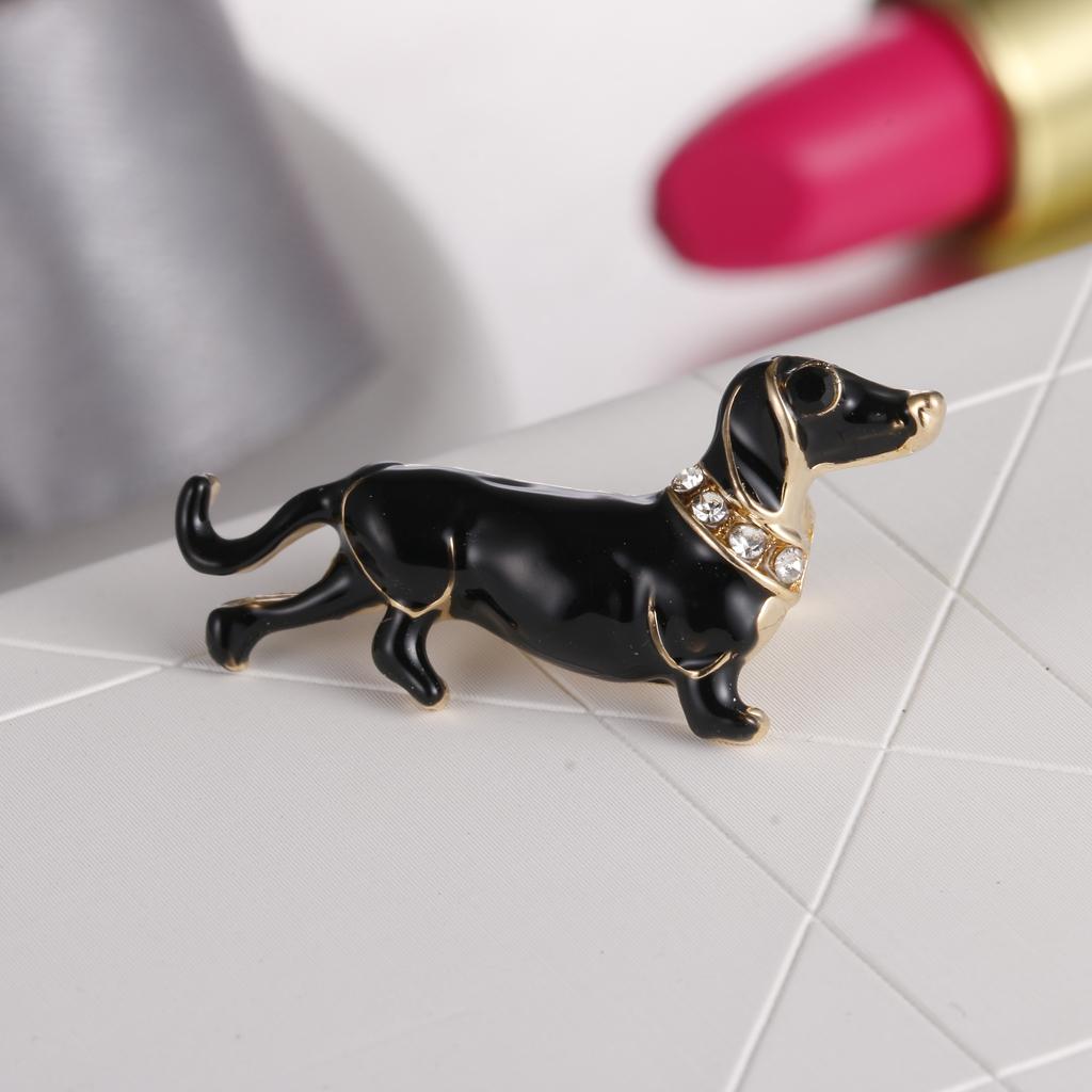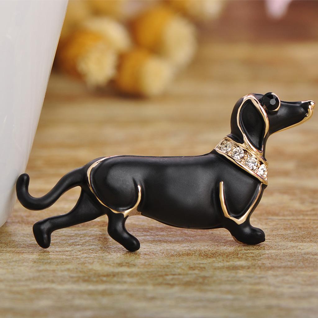 Women Men Jewelry Rhinestone Dog Animal Brooch Corsage Collar Pin black