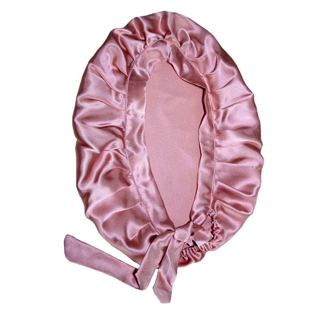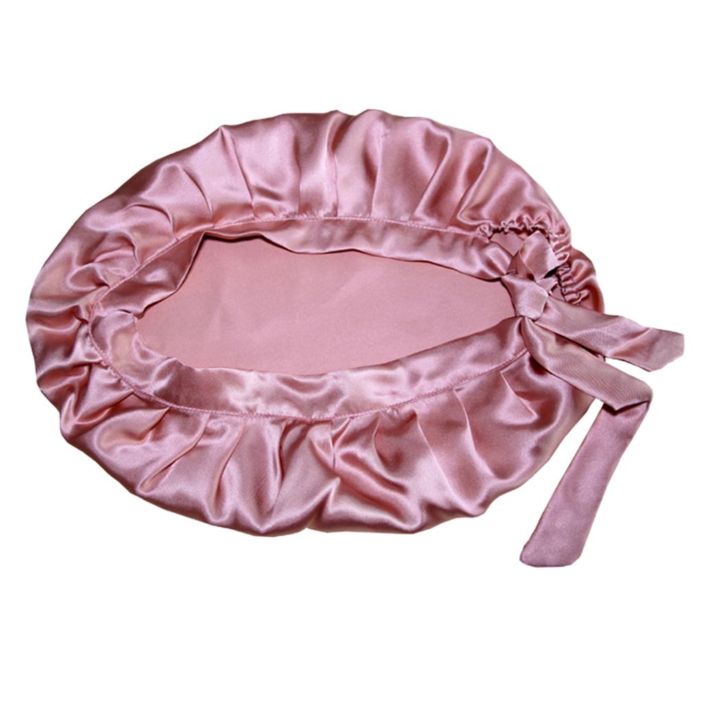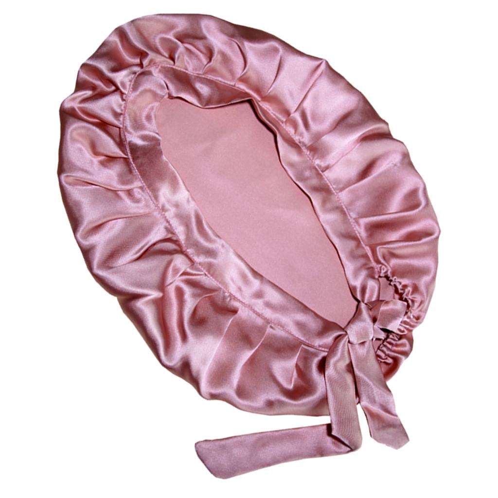 Women Pure Silk Sleep Hats Wrap Night Cap Hair Care Bonnet Flesh Pink