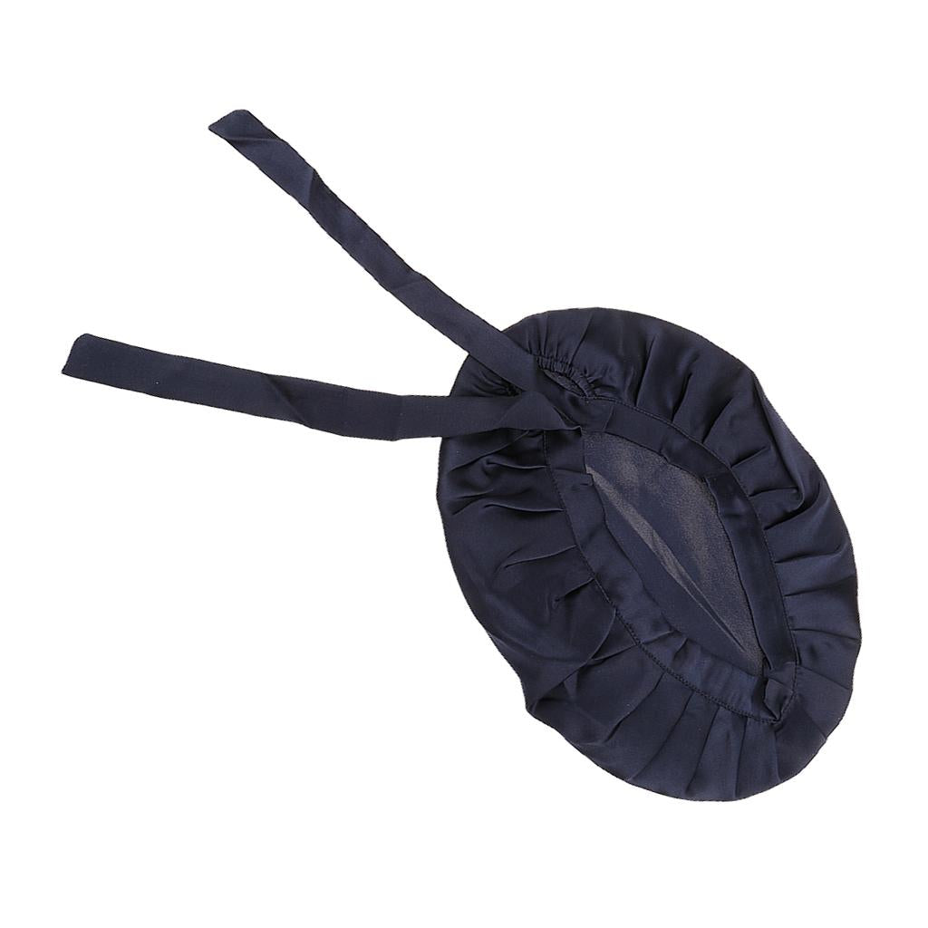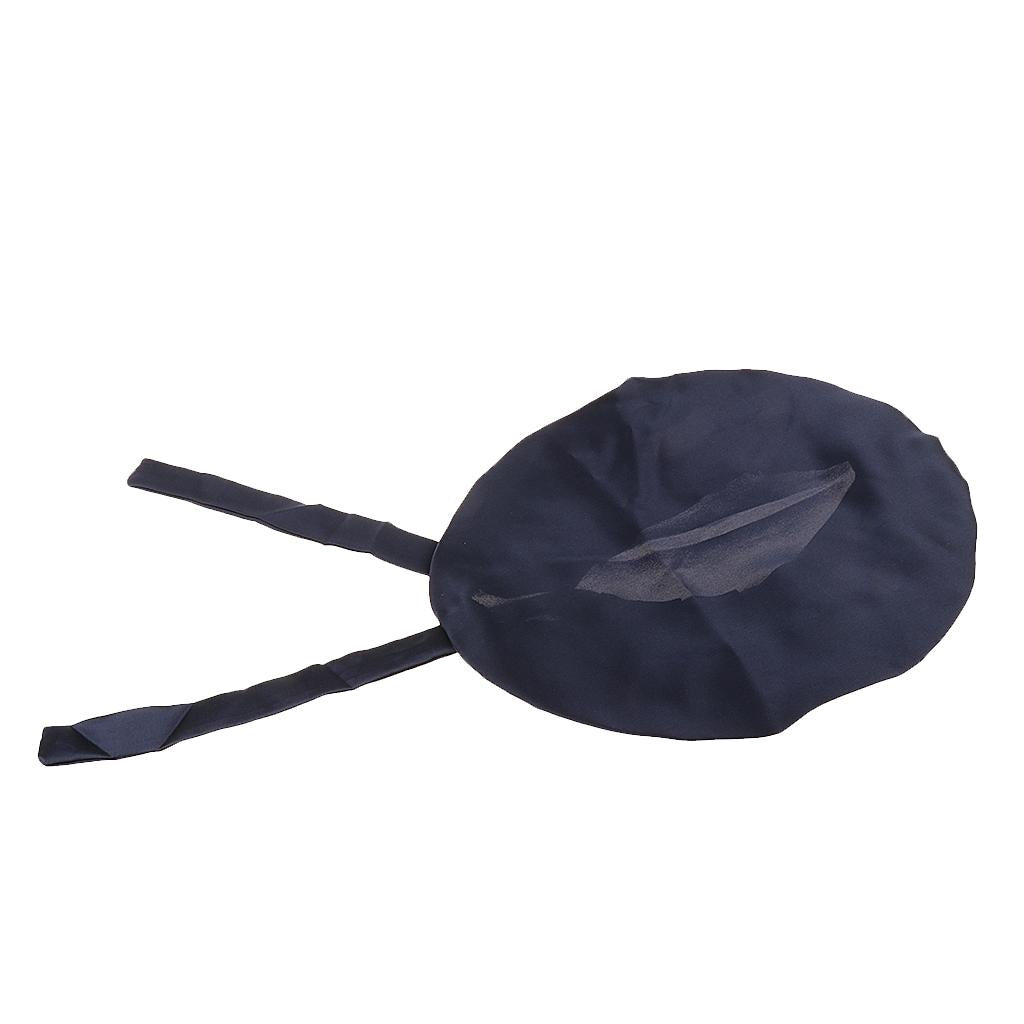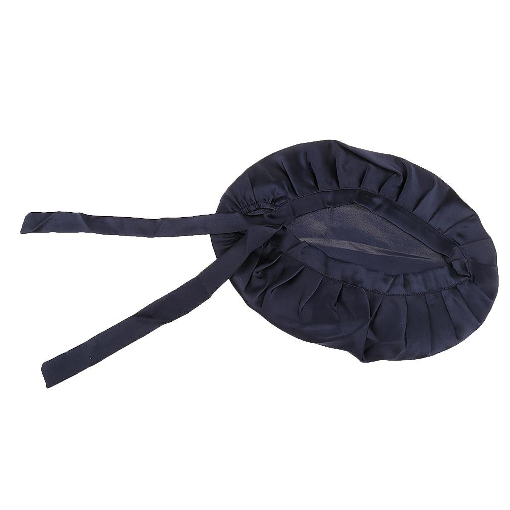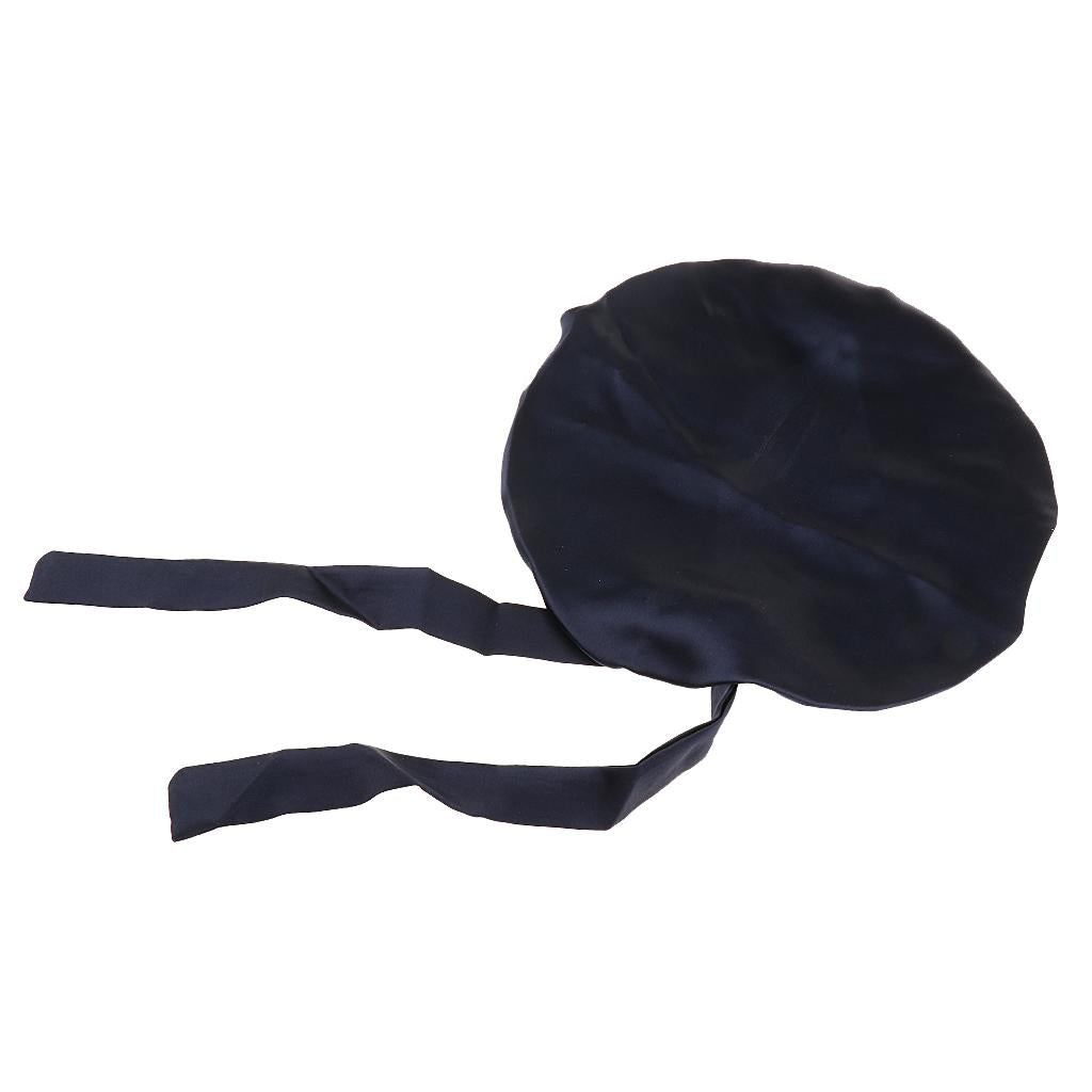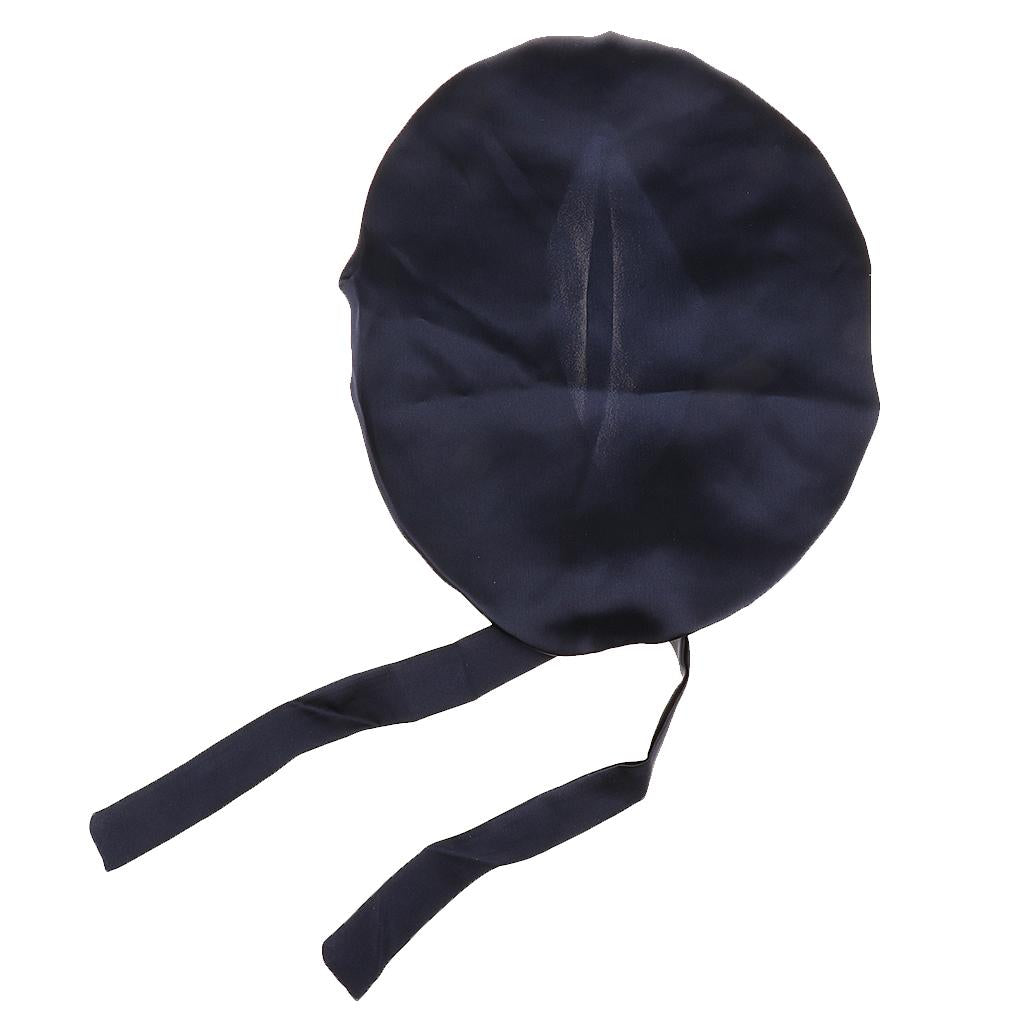 Women Pure Silk Sleep Hats Wrap Night Cap Hair Care Bonnet Navy Blue