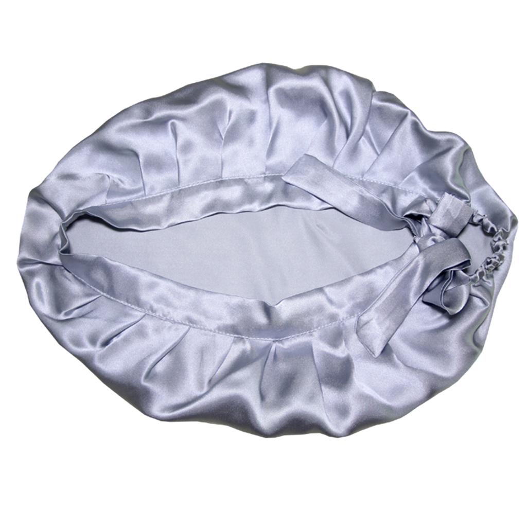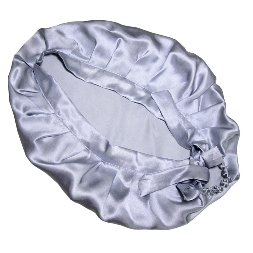 Women Pure Silk Sleep Hats Wrap Night Cap Hair Care Bonnet Silvery Grey