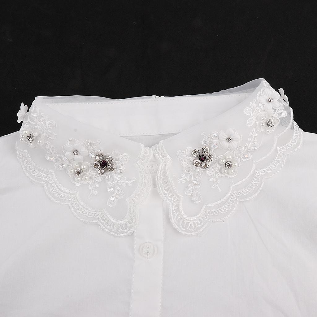 Womens Fake Collar Removable False Blouse Embroidered 5-Half Shirt #5