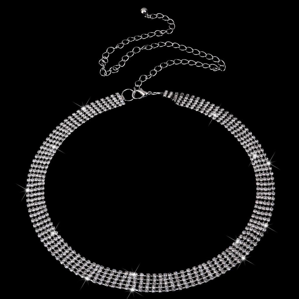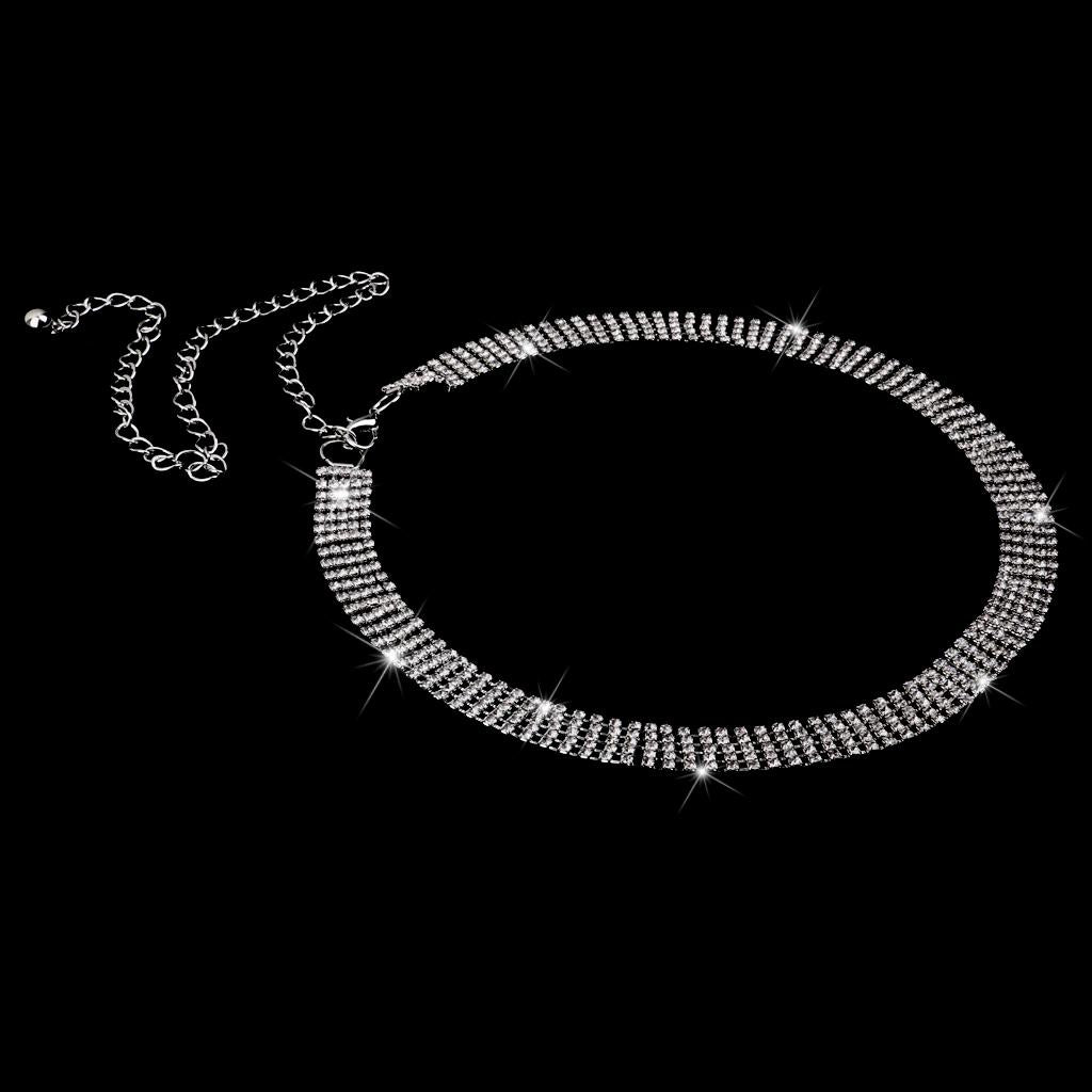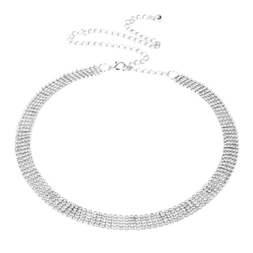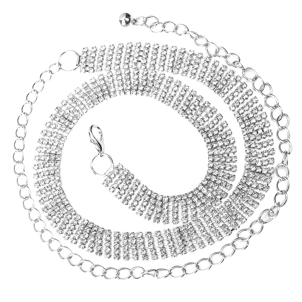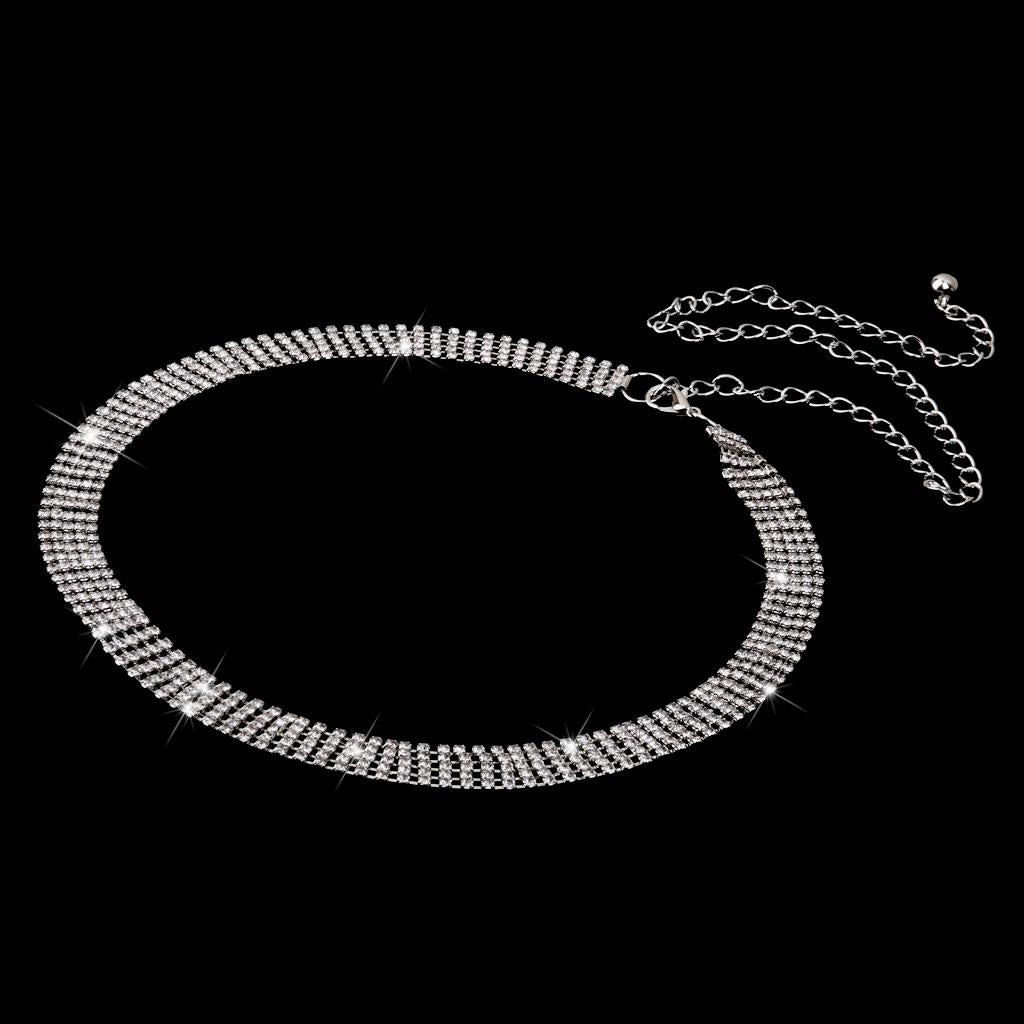 Women'S Hip Waist 5 Rows Crystal Rhinestone Chains Belt Bikini Dress Belt