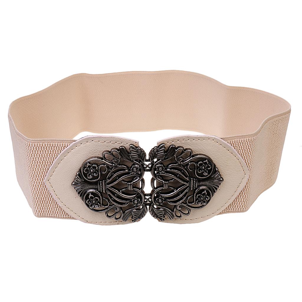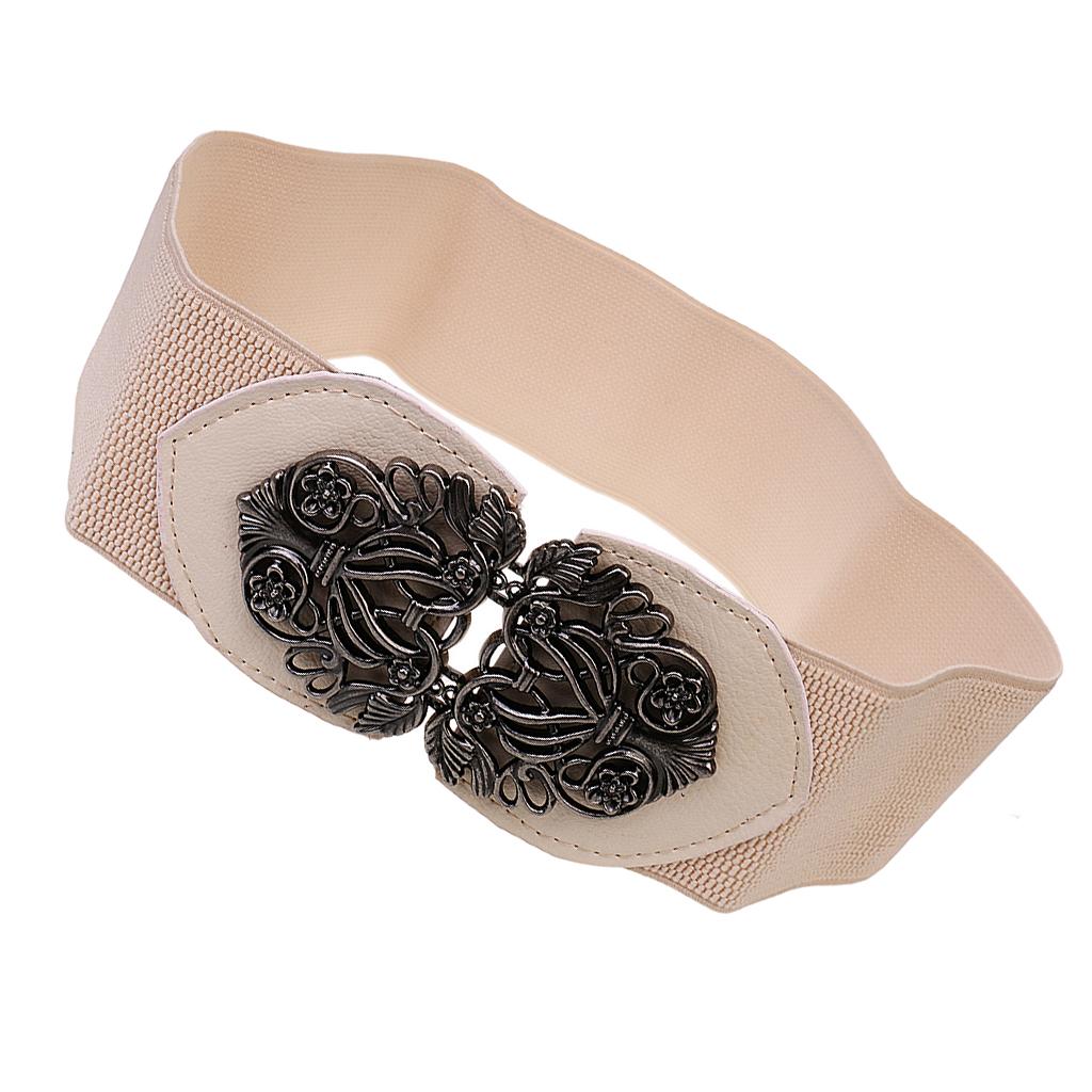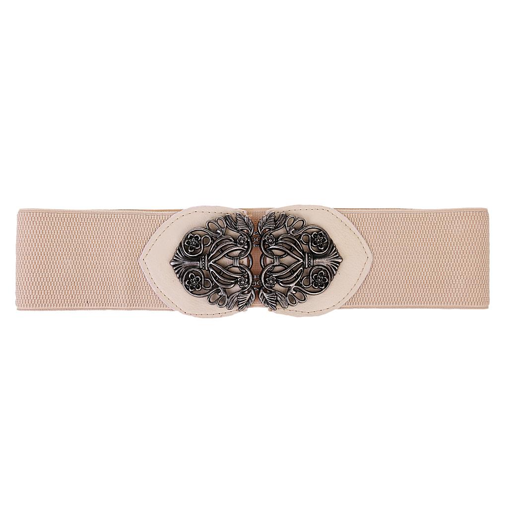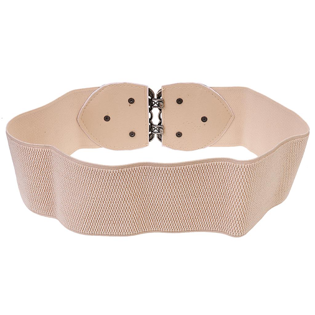 Womens Ladies PU Leather Wide Elastic Buckle waist belt Beige