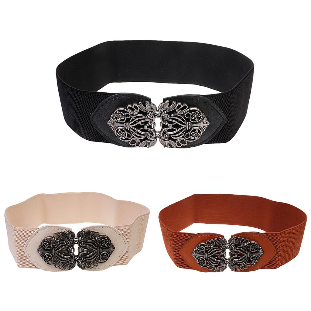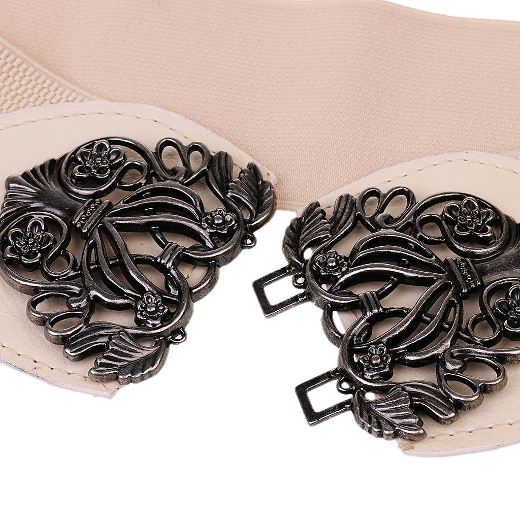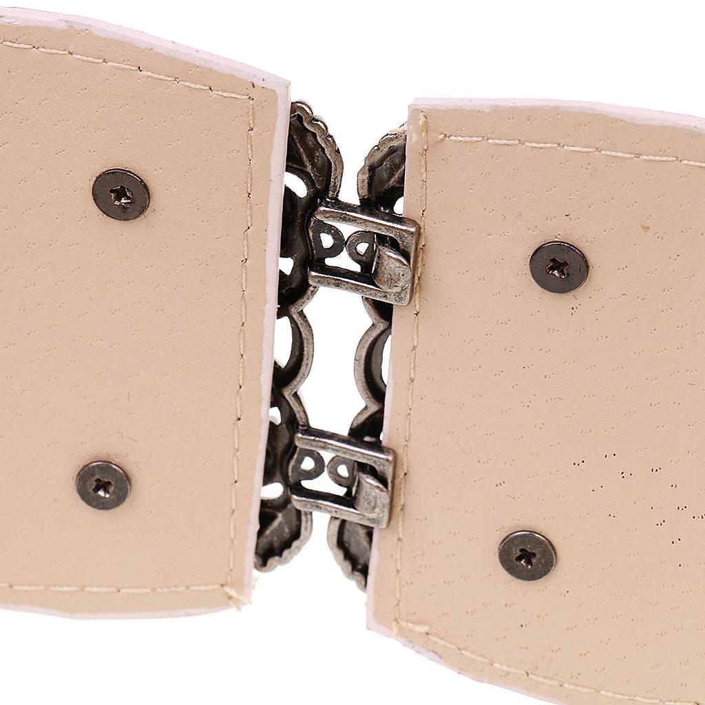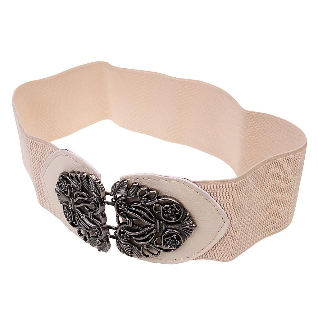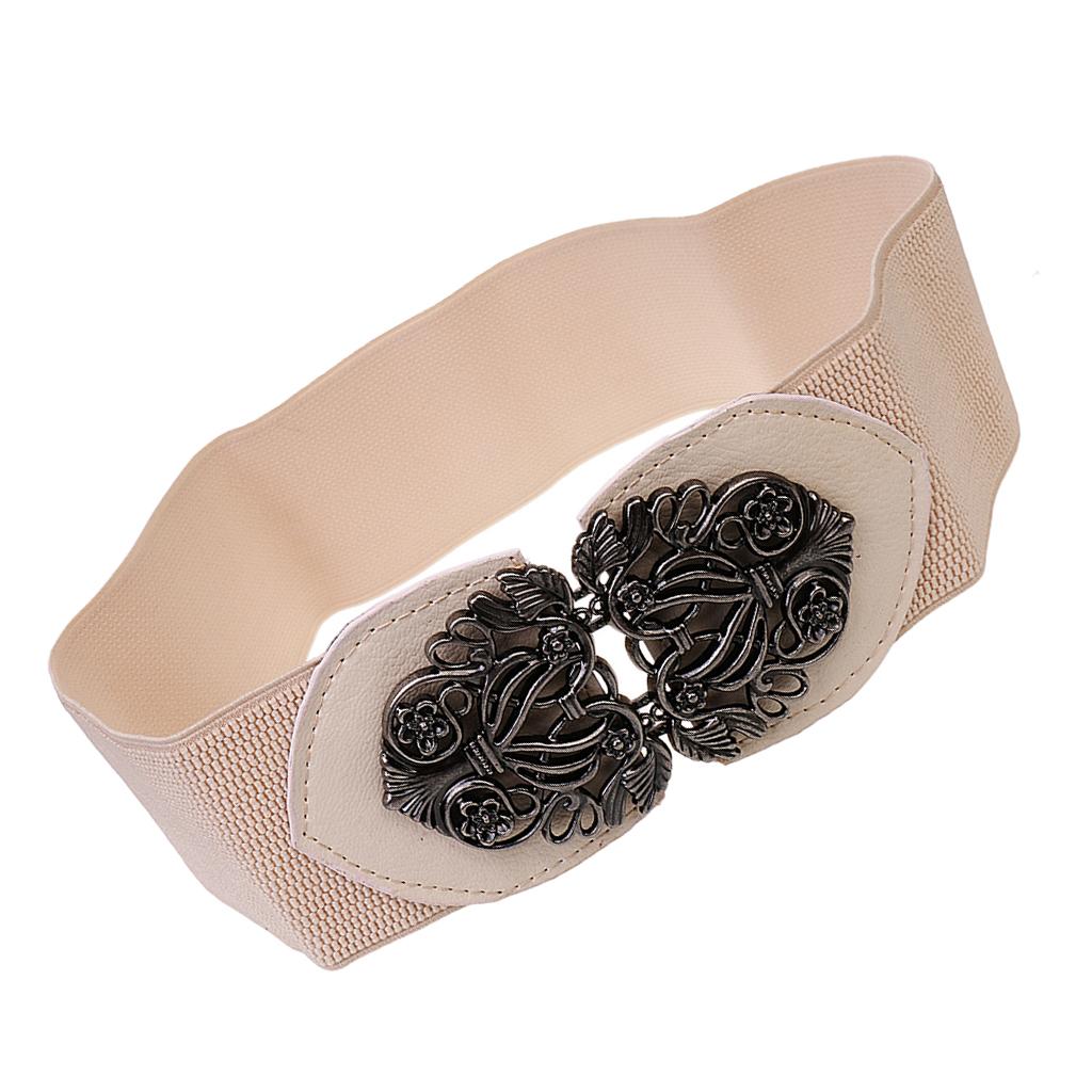 Womens Ladies PU Leather Wide Elastic Buckle waist belt Beige