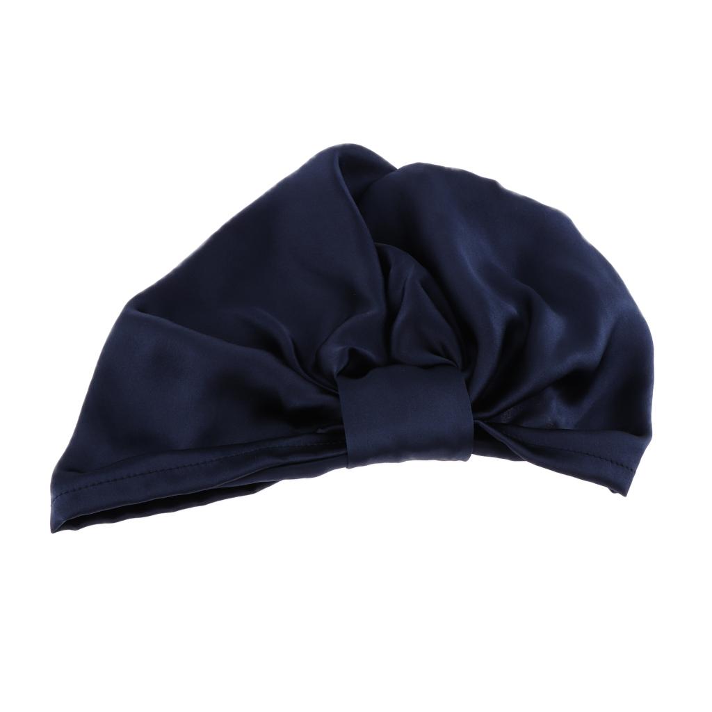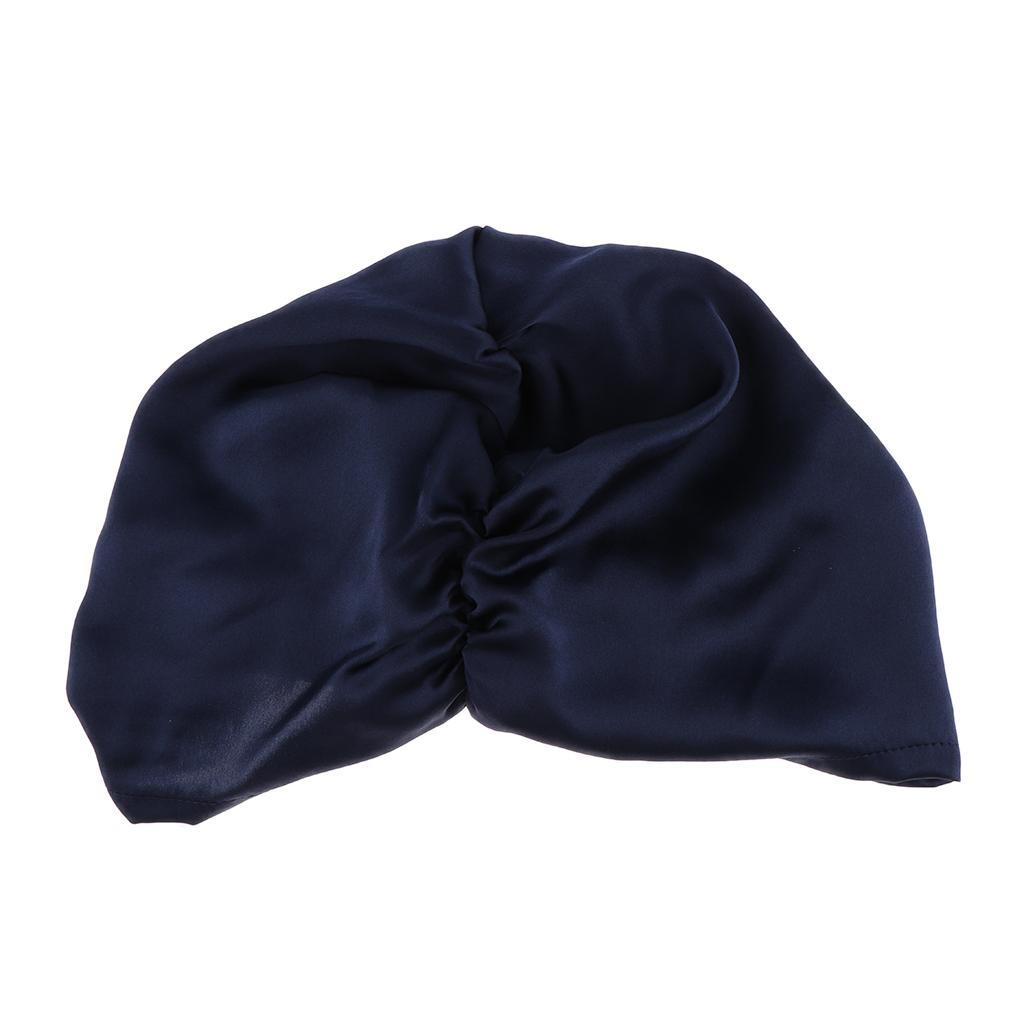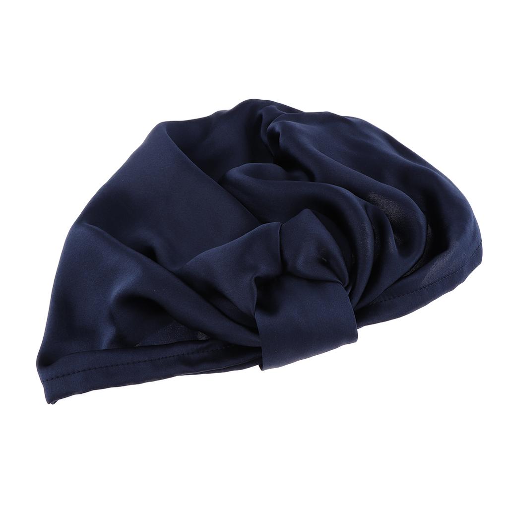 Womens Pure Silk Sleep Hats Wrap Night Cap Hair Care Bonnet Navy