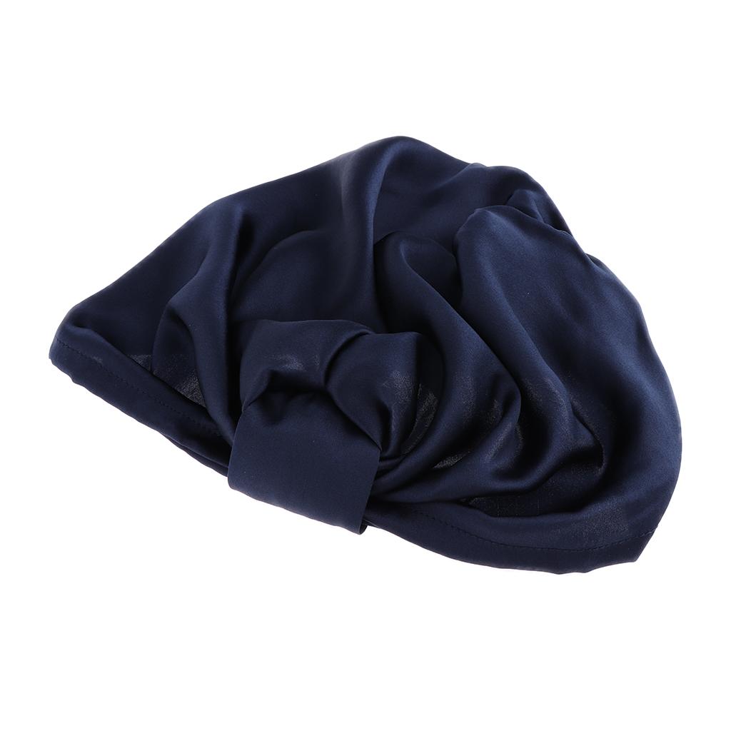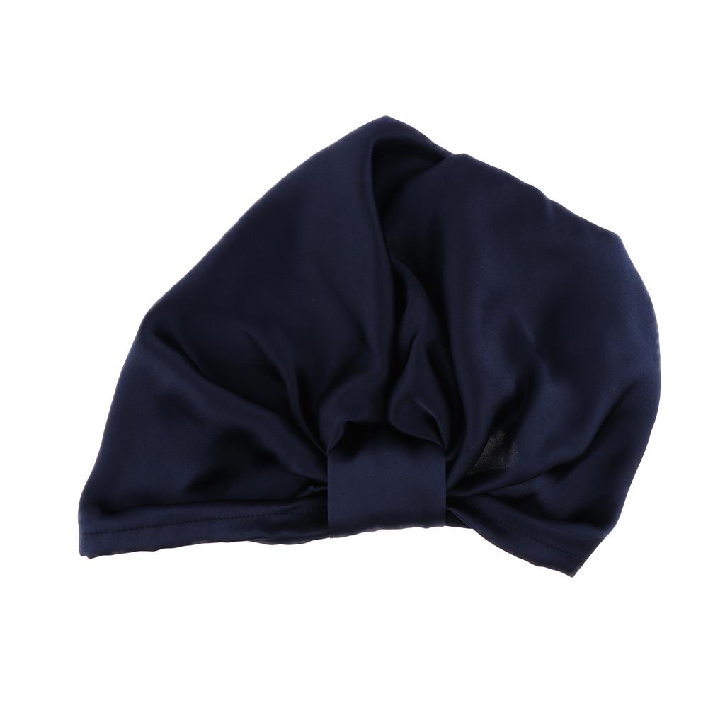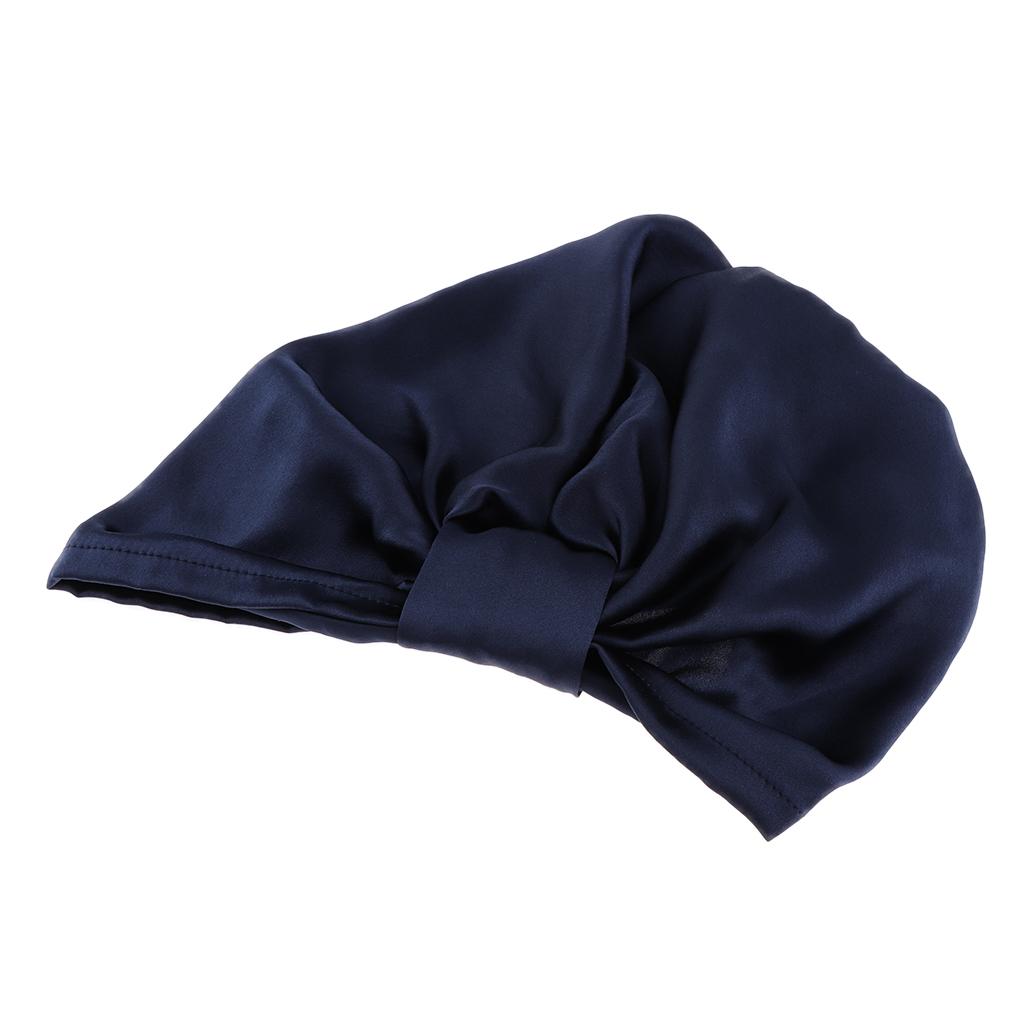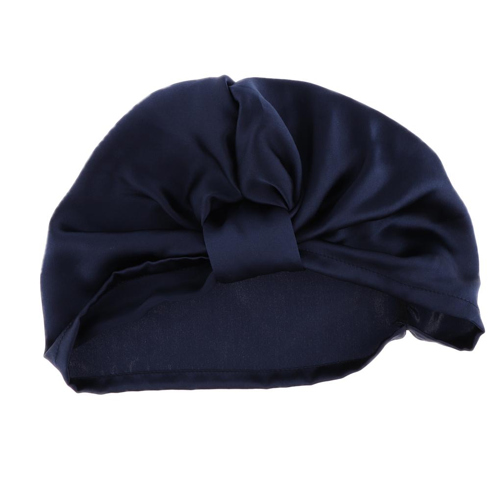 Womens Pure Silk Sleep Hats Wrap Night Cap Hair Care Bonnet Navy