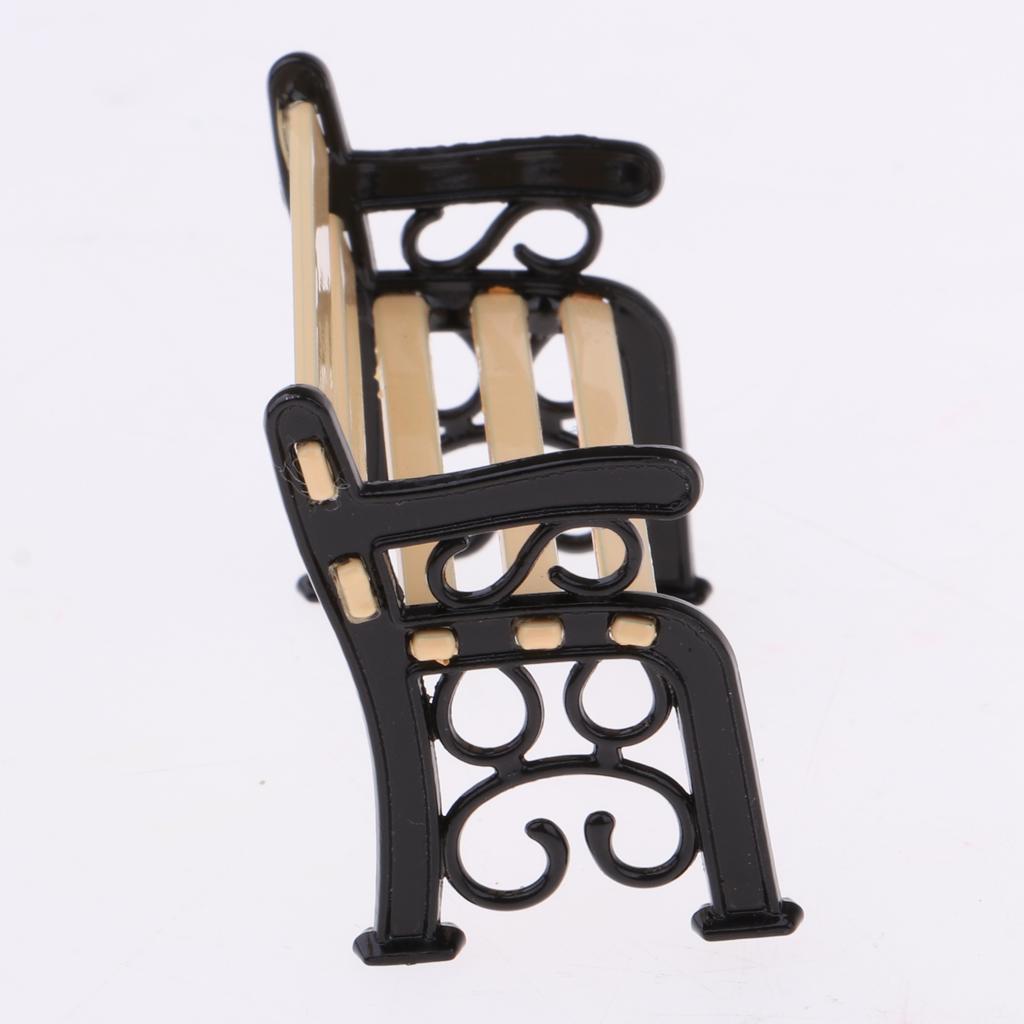 1:12 Dollhouse Furniture Mini Metal Bench with Street Lamp Garden Patio Accessories