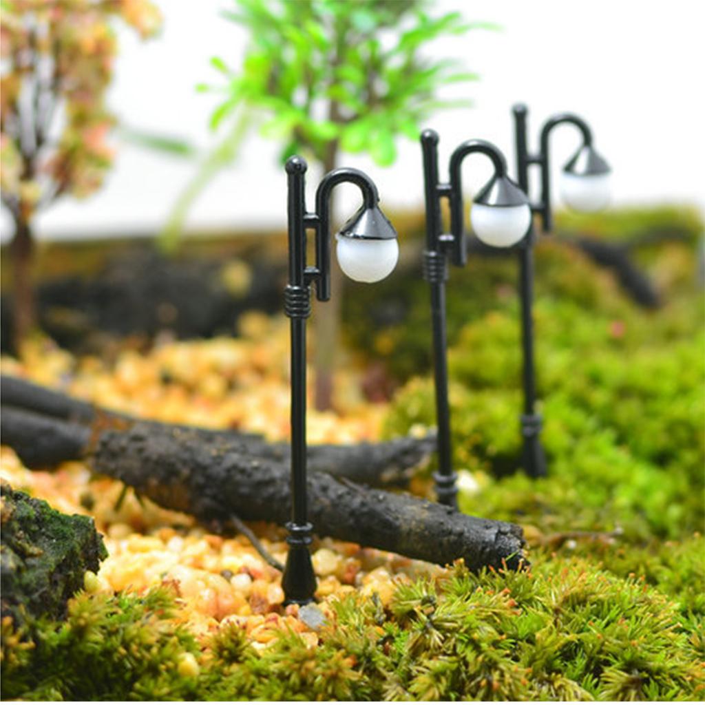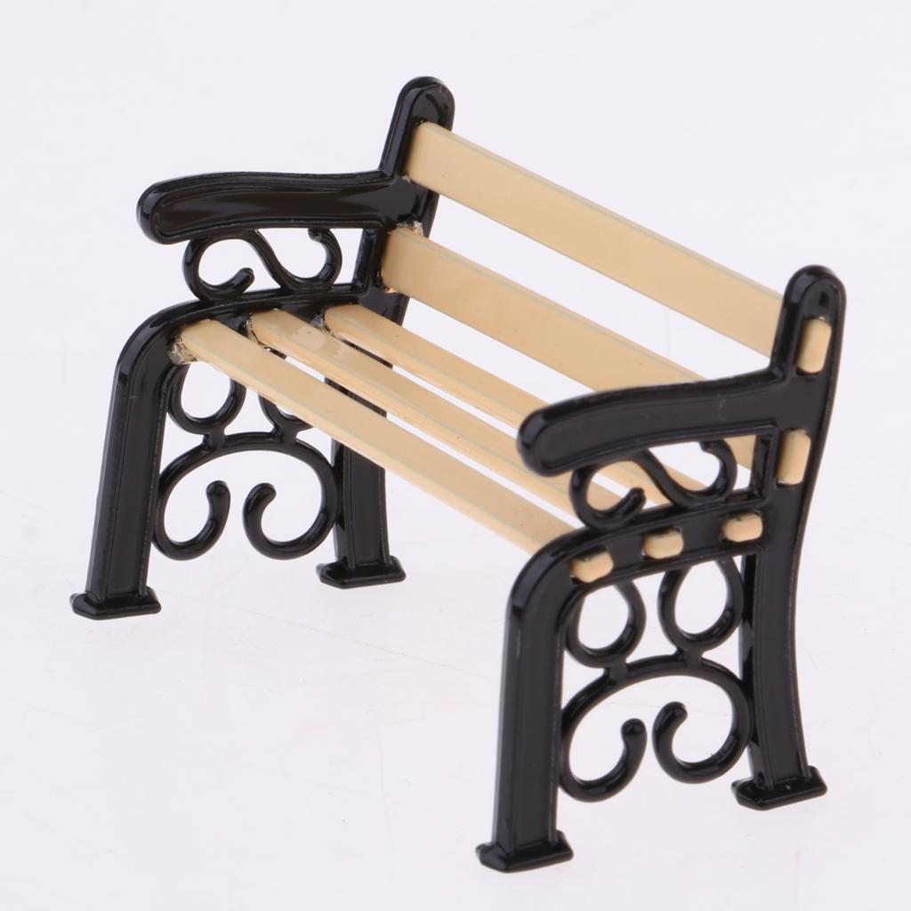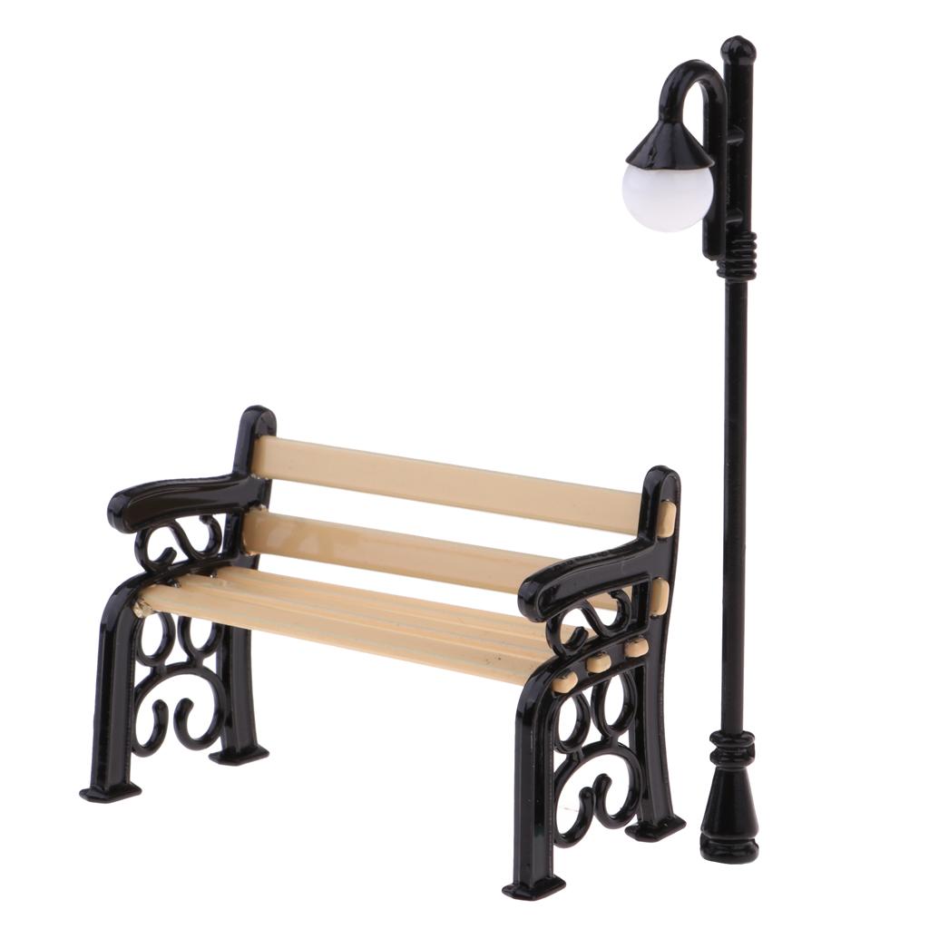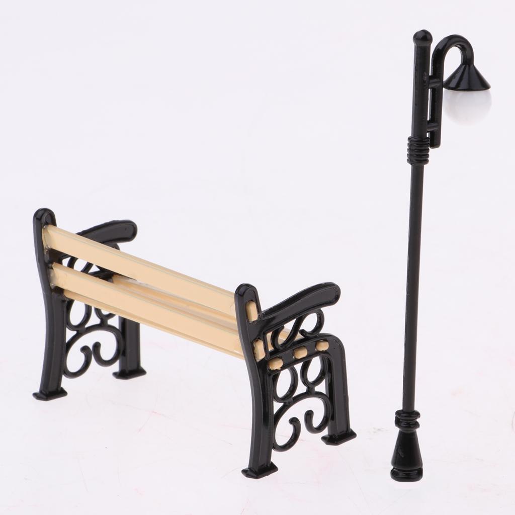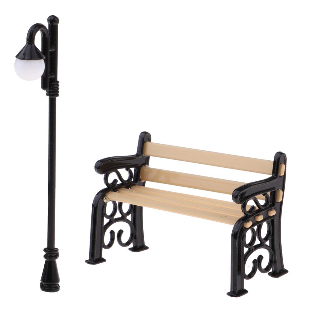 2 pieces dollhouse furniture lifelike mini outdoor garden ornament metal park bench and street lamp craft accessories