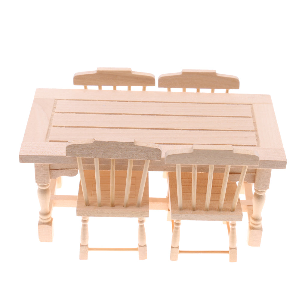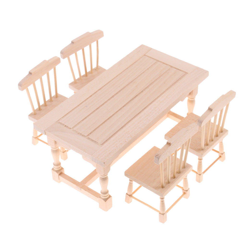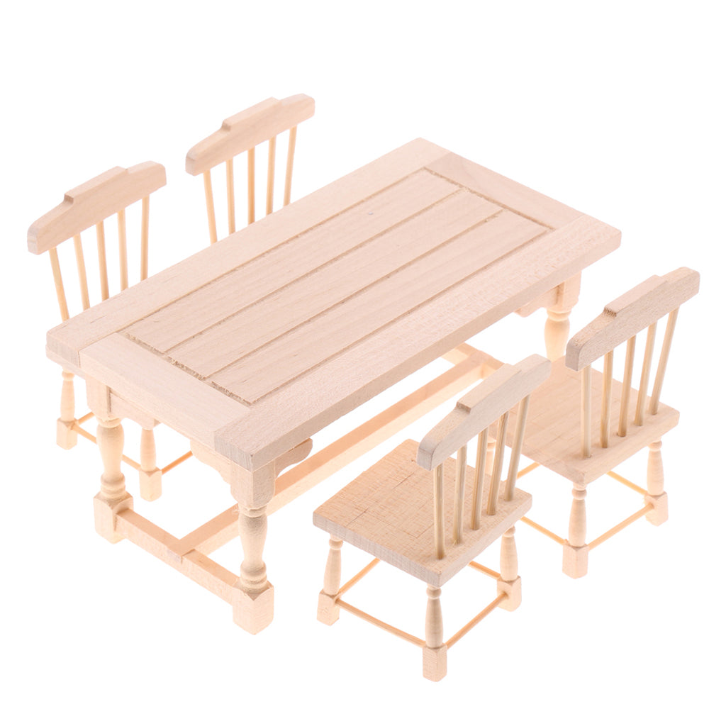 1/12 Dollhouse Miniatures Dining Room Furniture Dining Table with 4 Chairs Set