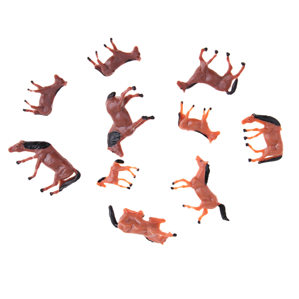 10Pcs 1/87 HO Scale Horses Model Painted Animal Figure for Miniature Model Train Layout Farm Zoo Wild Animal Park