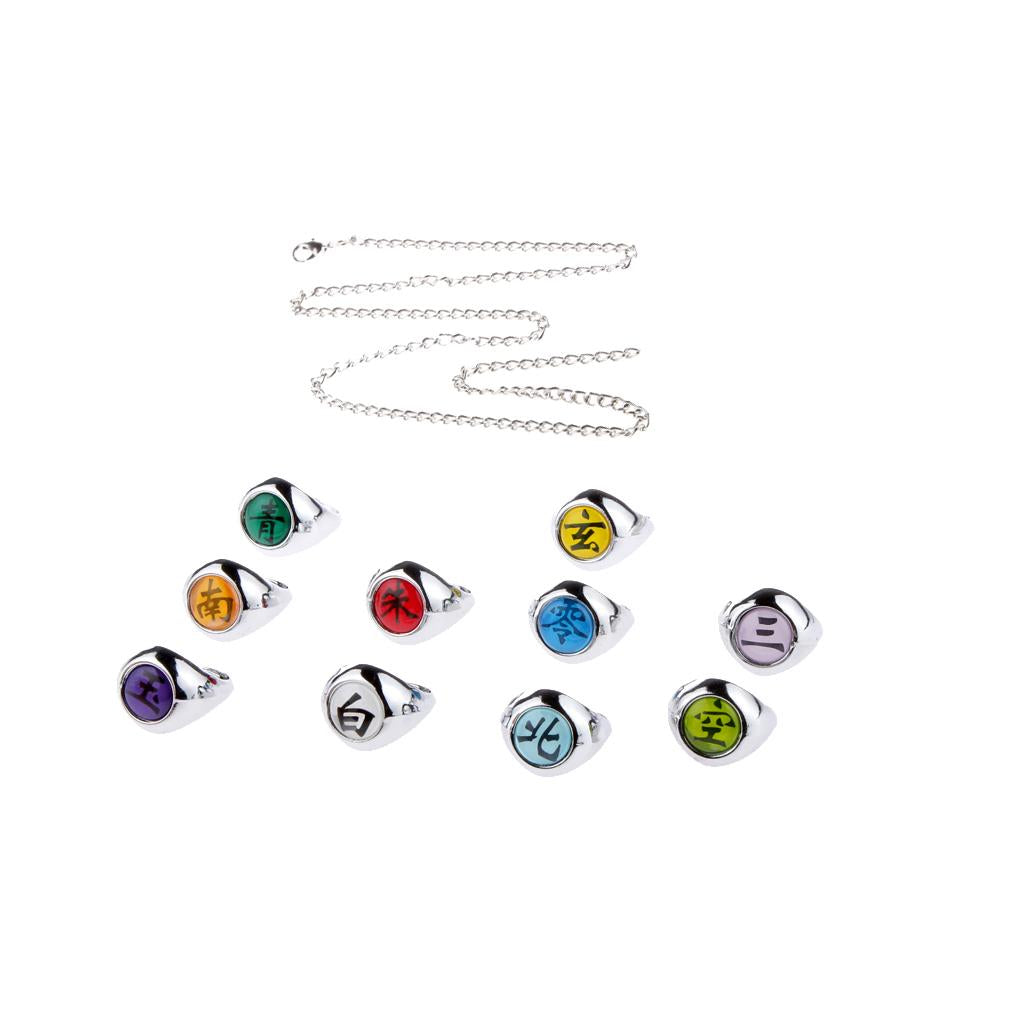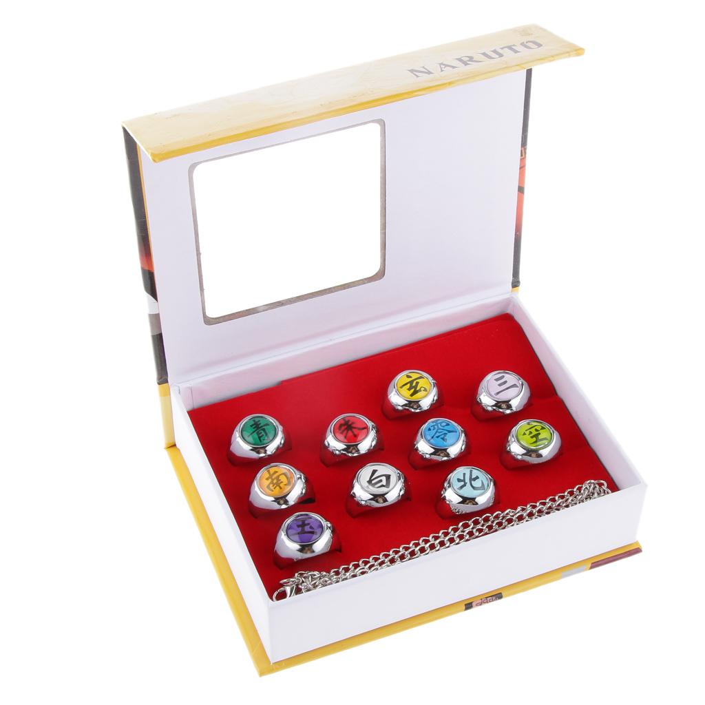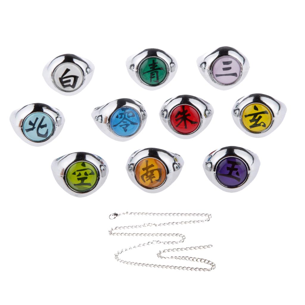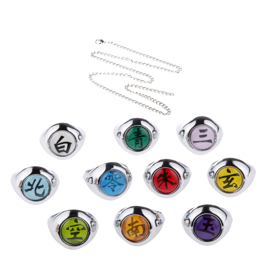 • 10pcs Naruto Shippuden Akatsuki Members Cosplay Rings + 1pc chain