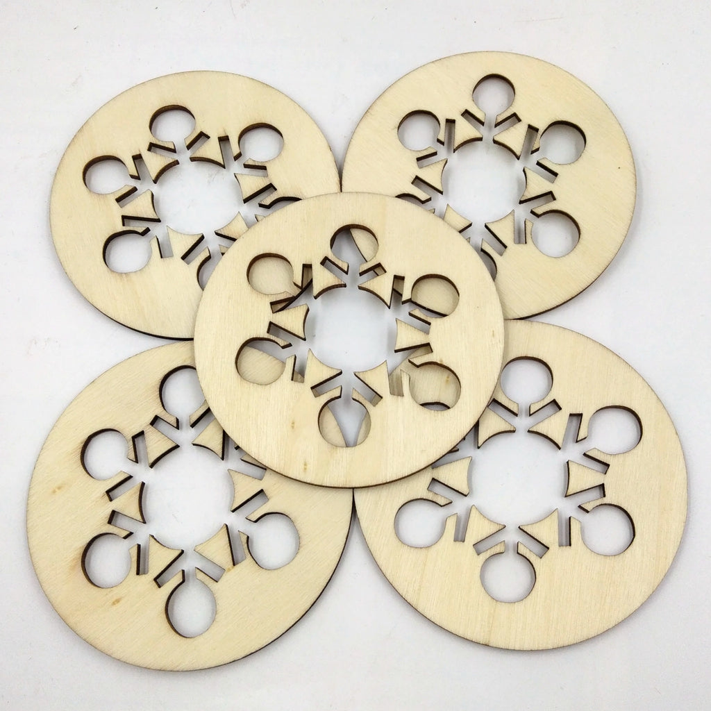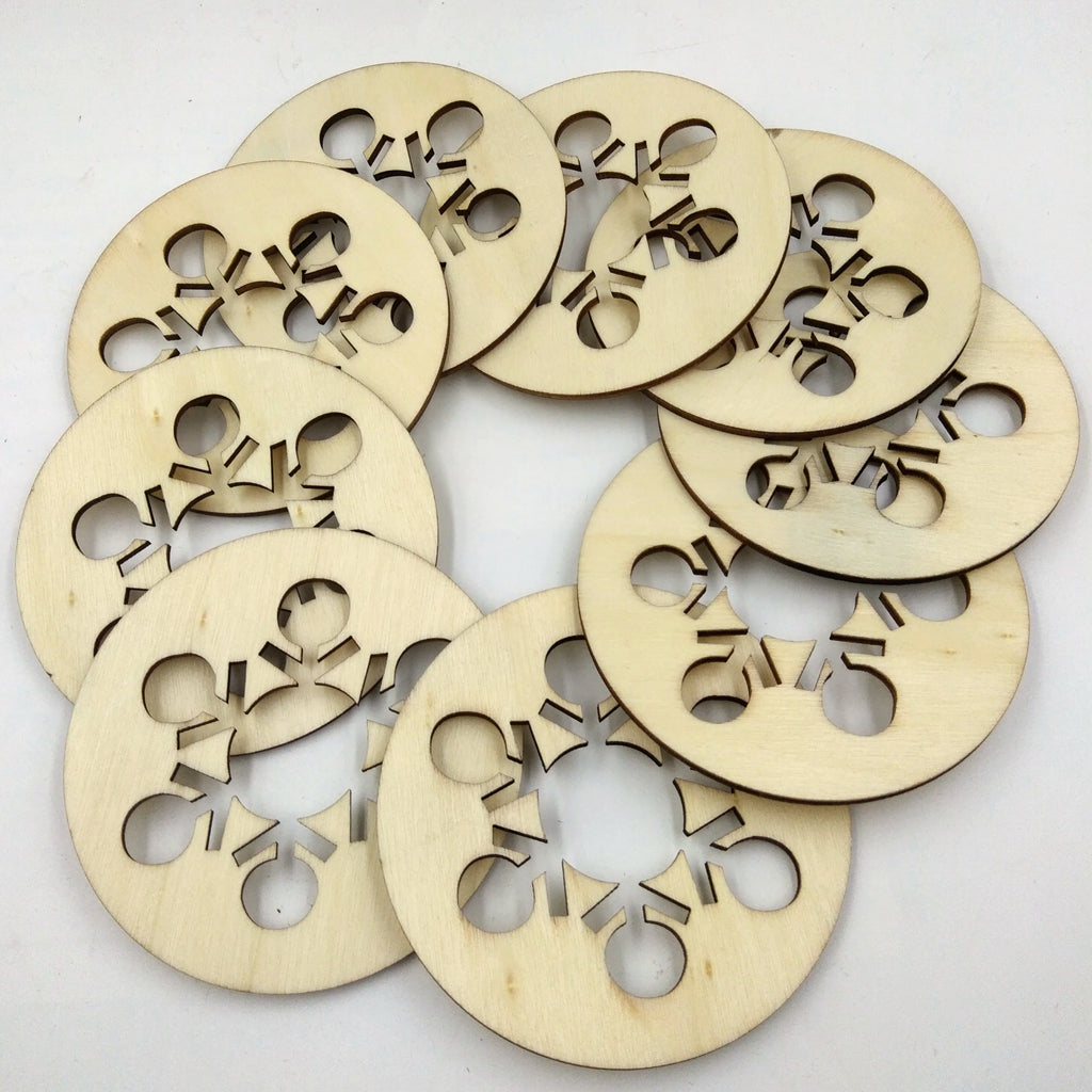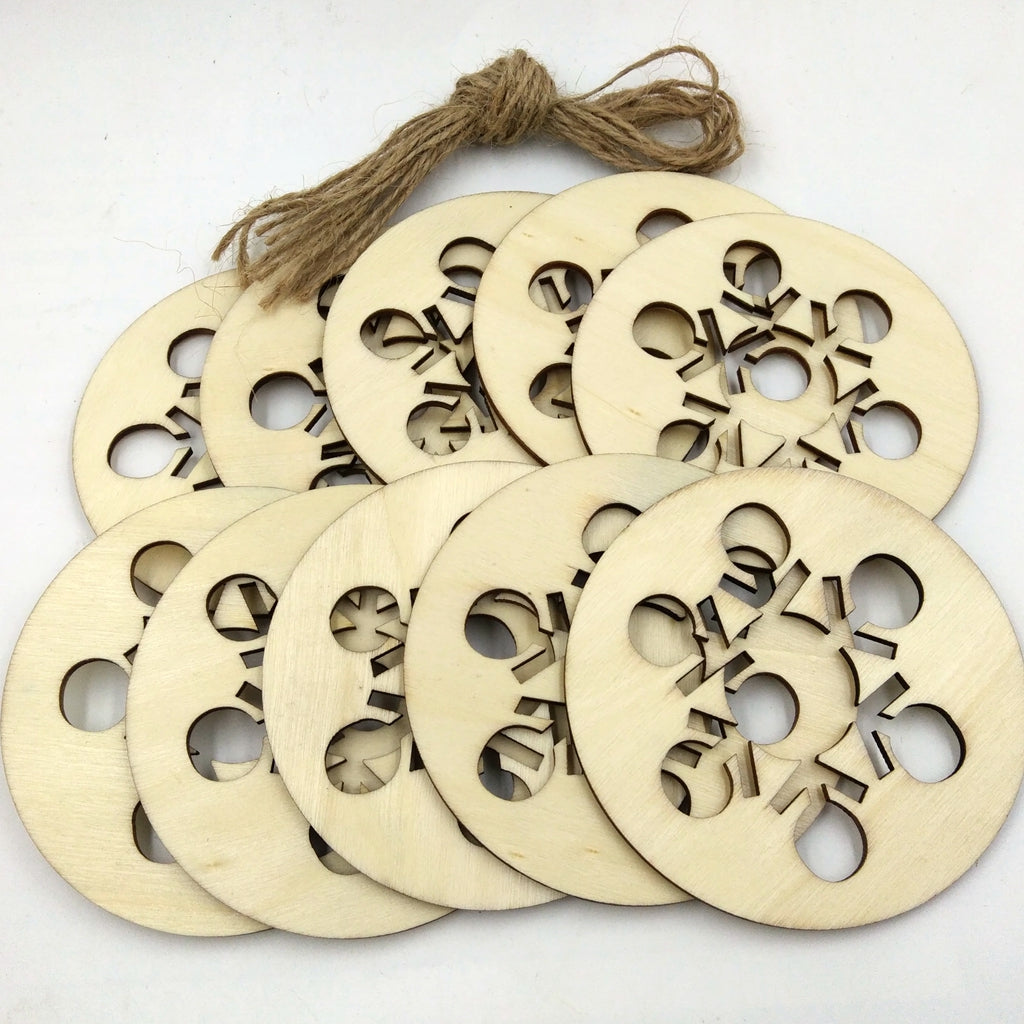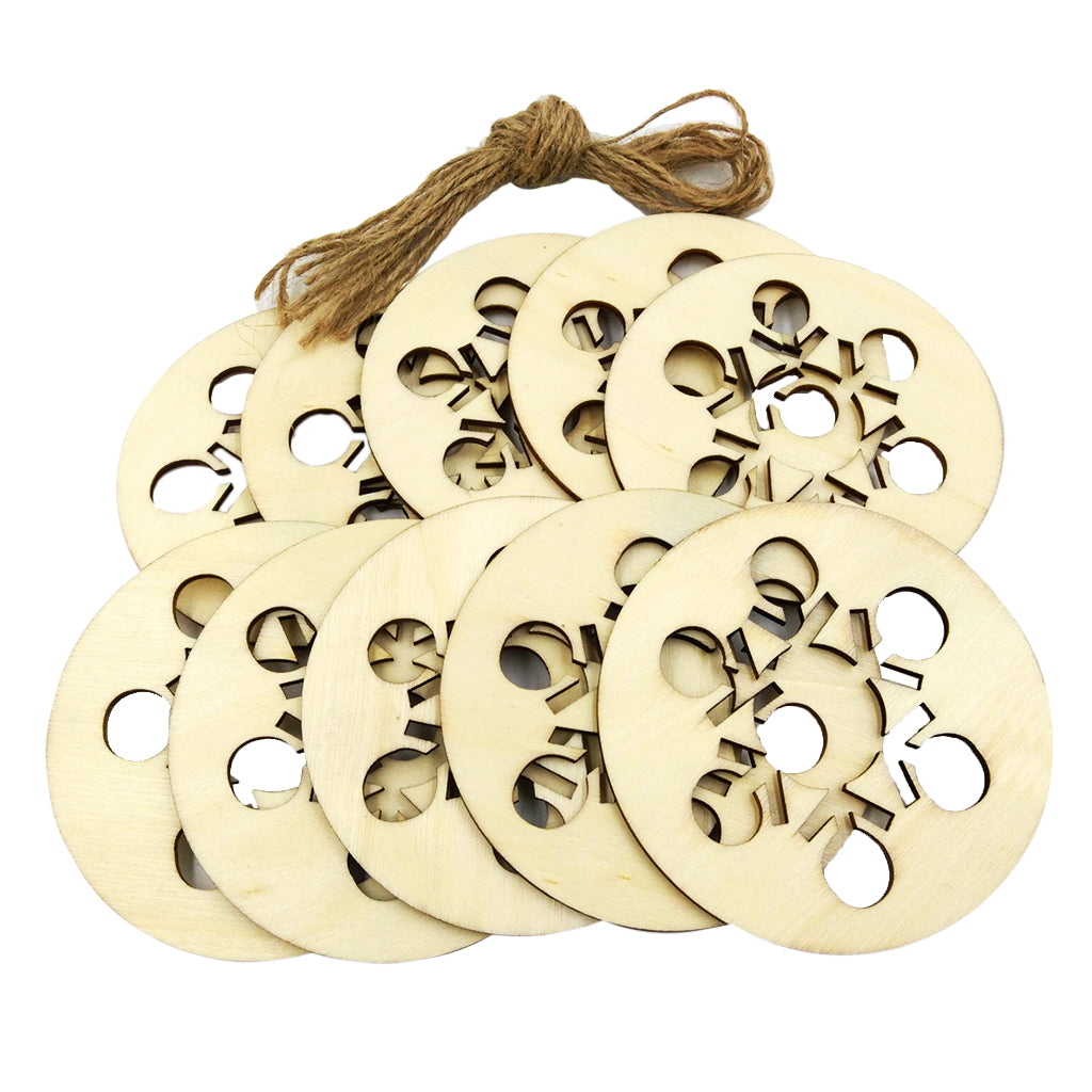10Pcs Wooden Wood Base Disk Circle Snowflake Pieces for Crafting Cardmaking