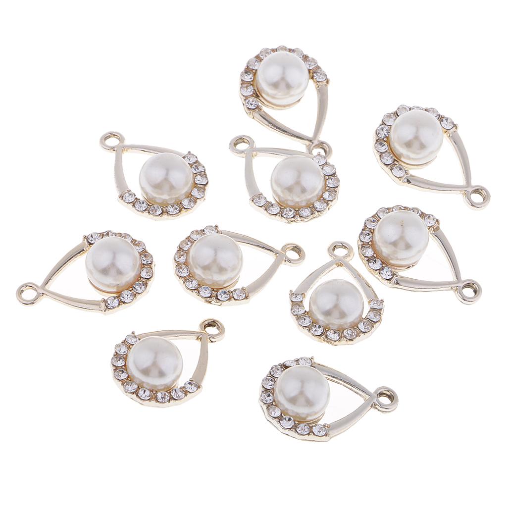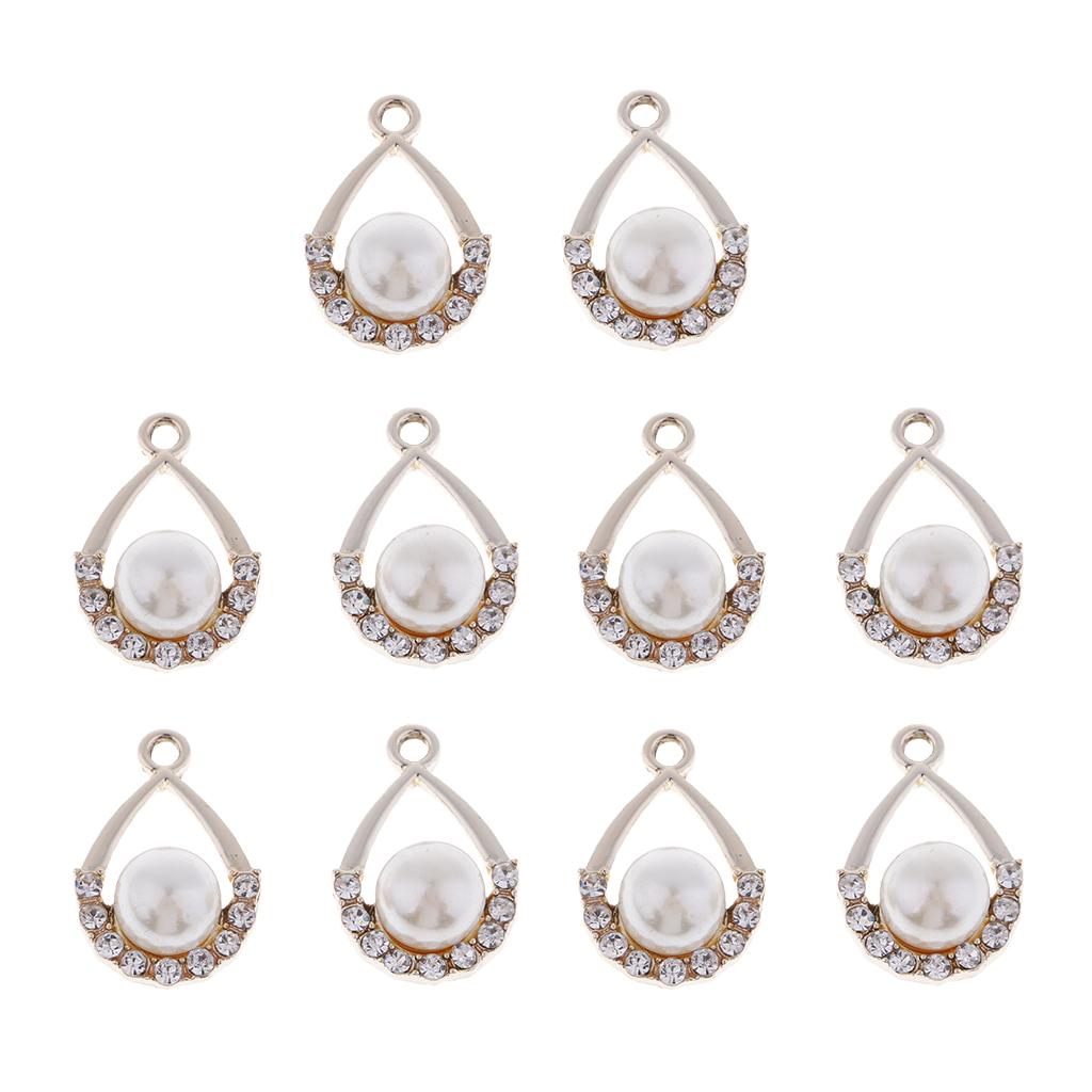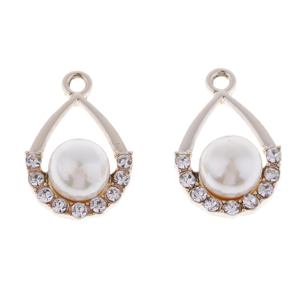 10pieces Champagne Gold Alloy Pearl Crystal Craft Charms For DIY Jewelry Making Craft Drop Shape Pendants 19x12mm