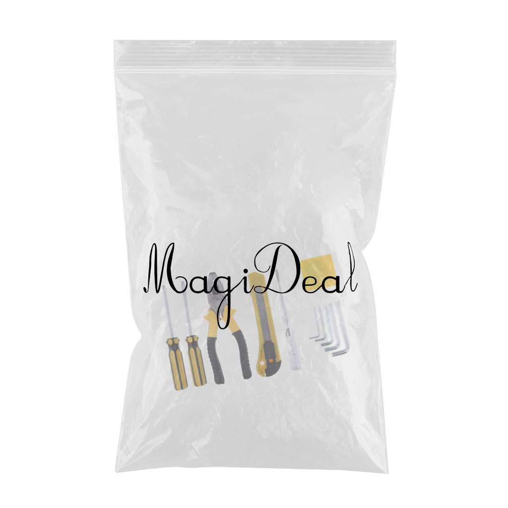 Including 6" pliers, 2pcs screwdriver(5x75,slot & cross types), 5pcs hex wrench, 1m measuring tape, cutter, electric pen, and box