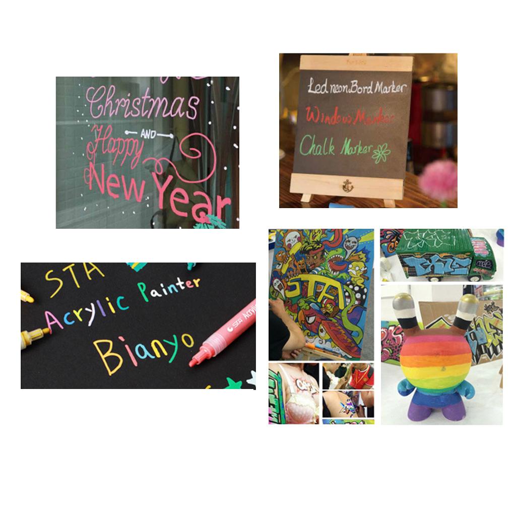 With these painters paint pens ,you can express your wild imagination and outstanding works on drawing on porcelain, ceramic, glass, mug, metal, leather, paper, canvas, wood, brick, rock, metal, plastic and fabric and a variety of other surfaces.
