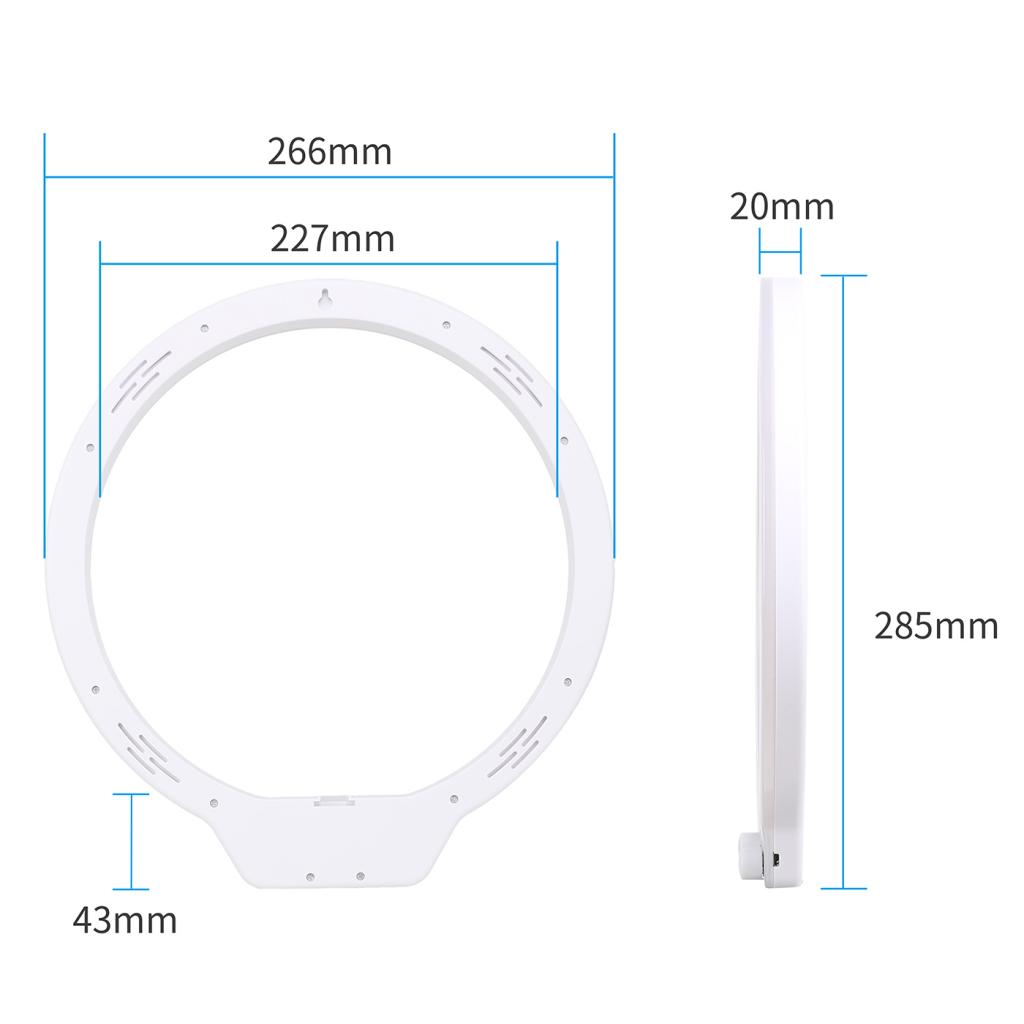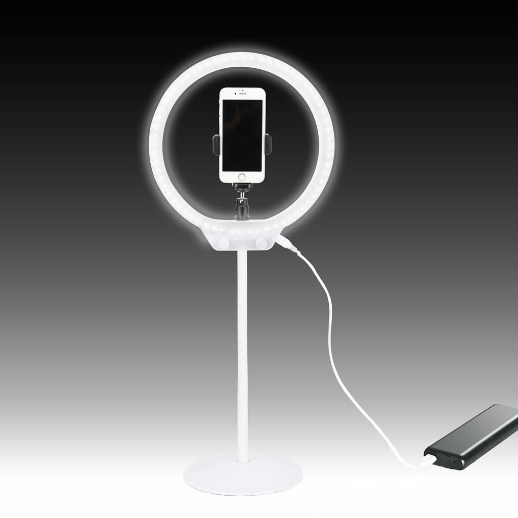 Desktop LED ring fill light, lightweight and portable, using a chip LED lamp beads, dual buttons can adjust the light intensity, or color temperature.