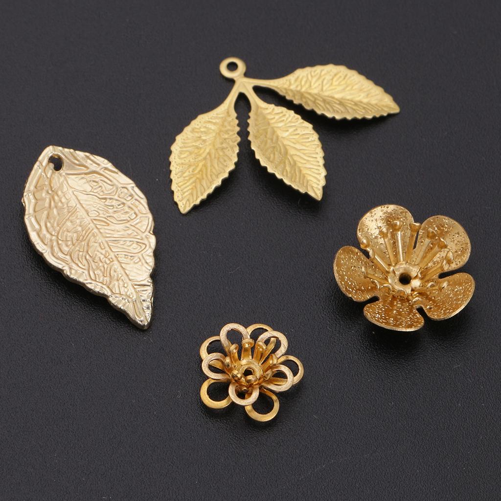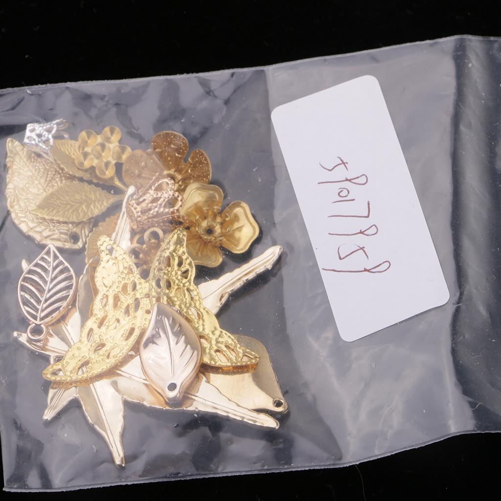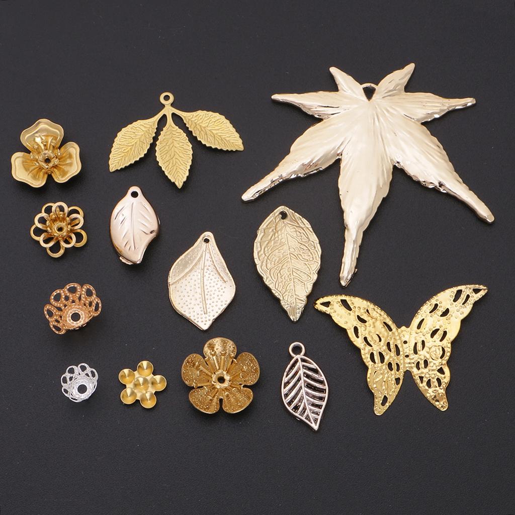 13 Pieces Assorted Metal Filigree Leaf Butterfly Flower Beads Caps Charms Pendants Wedding Bridal Hair Jewelry Making Findings Gold