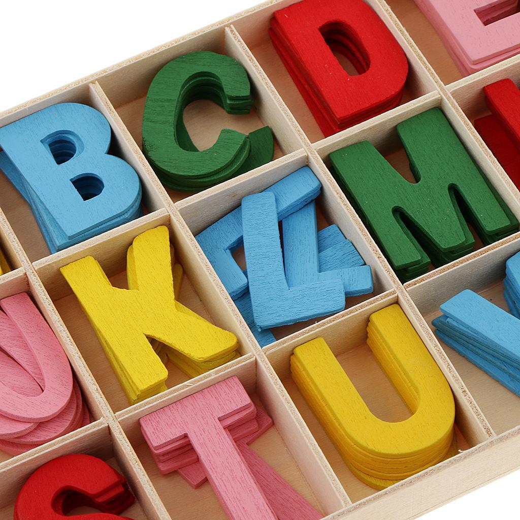 156 Pieces Wooden Alphabet Letters with Storage Tray Box Kids Educational Toys