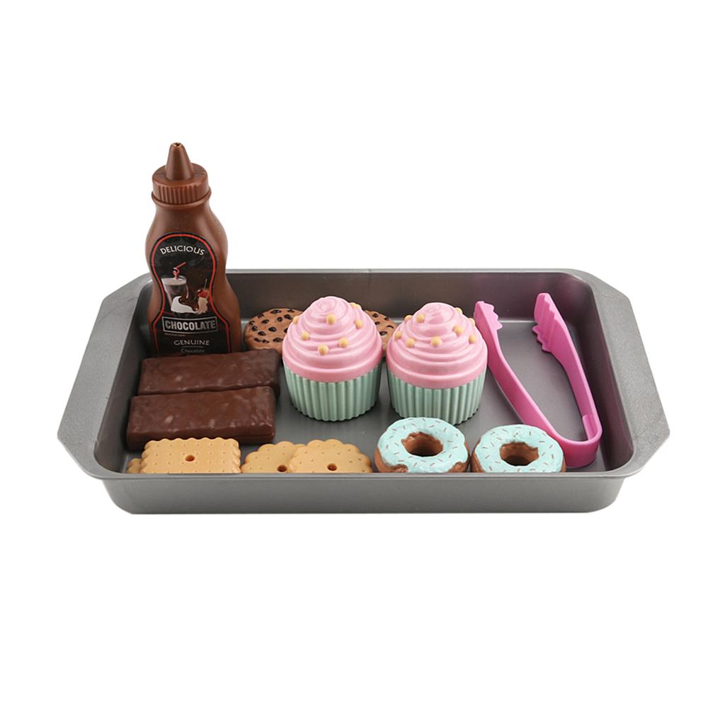 16-piece, Including 1 tray, 1 serving tongs, 3 cookies, 2 cup cakes , 2 donuts and more various desserts