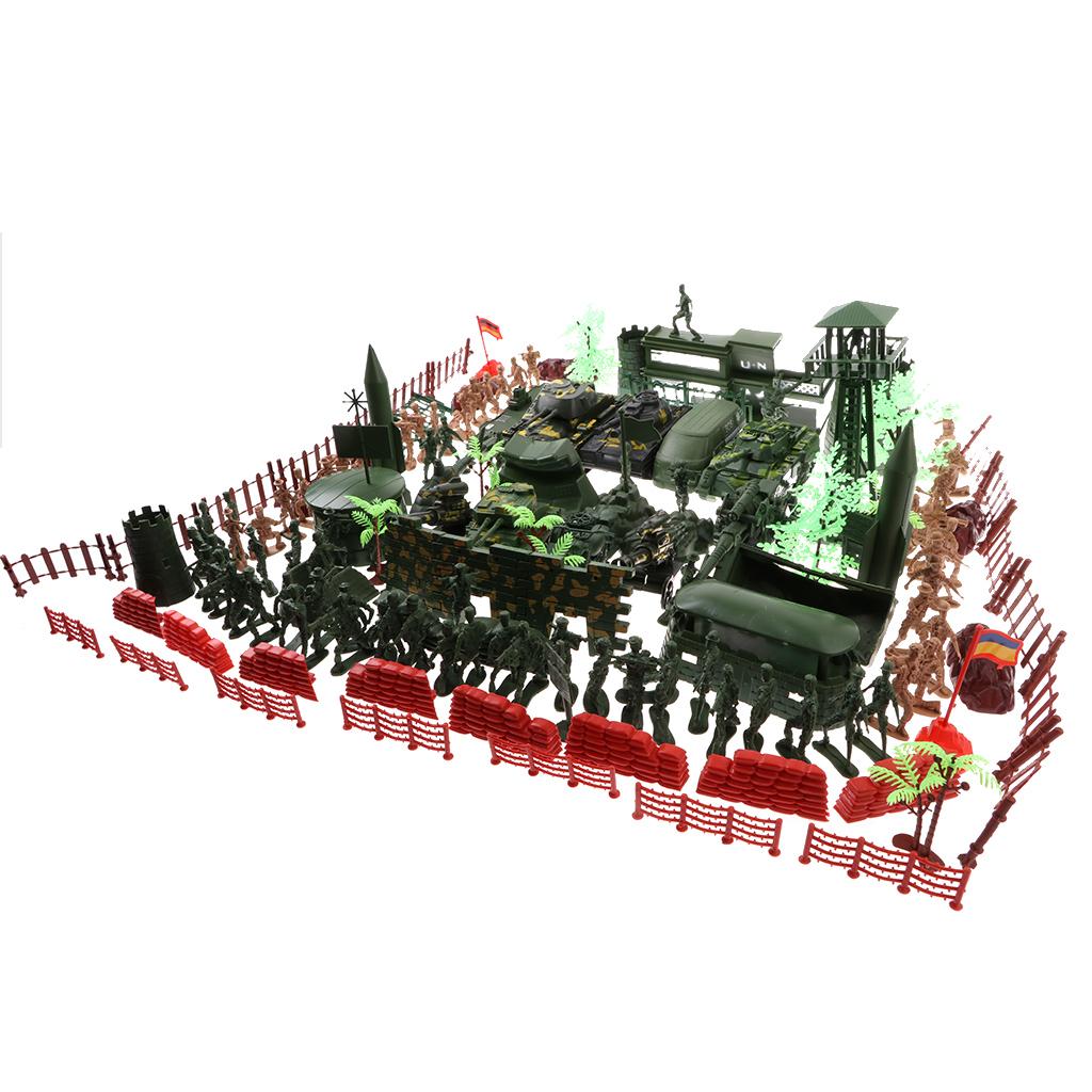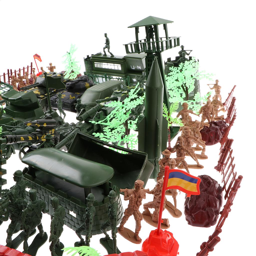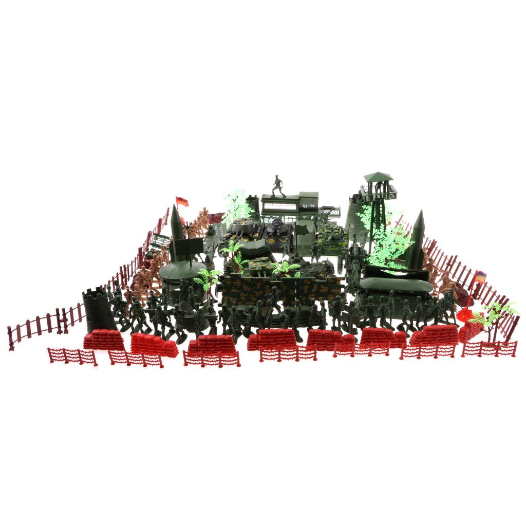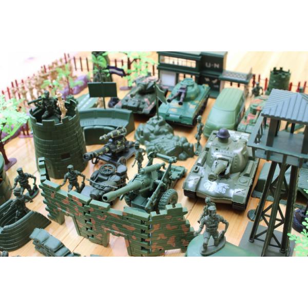 Includes approx. 80 pieces 6cm soldiers figures (in 2 colors), 1 Army Office, 2 Tanks, 1 Helicopter and other accessories (we will send randomly, some small accessories will be different)