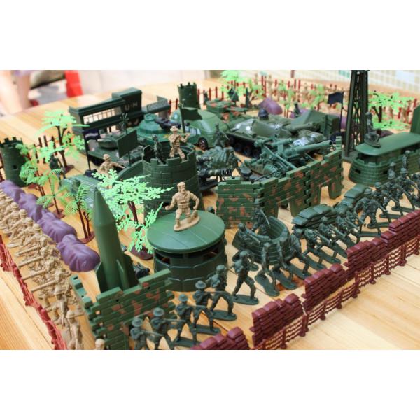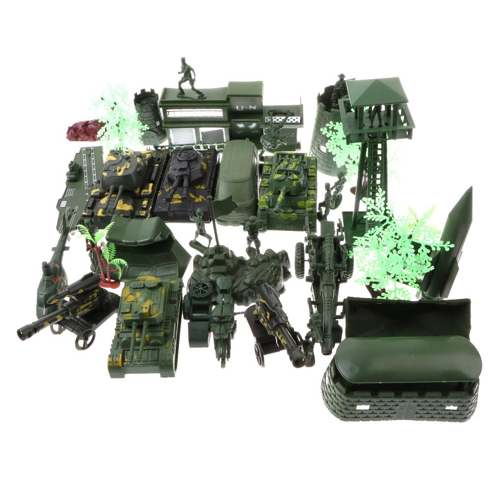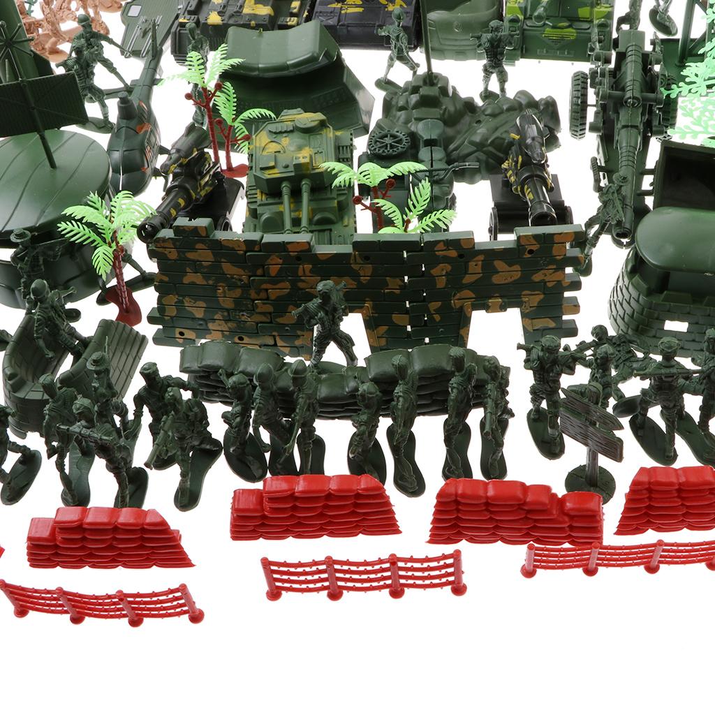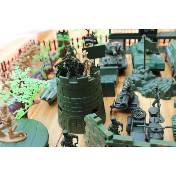 Includes approx. 80 pieces 6cm soldiers figures (in 2 colors), 1 Army Office, 2 Tanks, 1 Helicopter and other accessories (we will send randomly, some small accessories will be different)