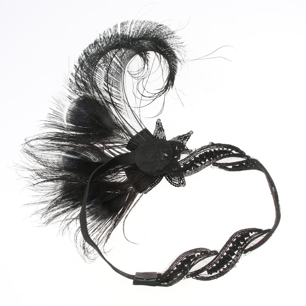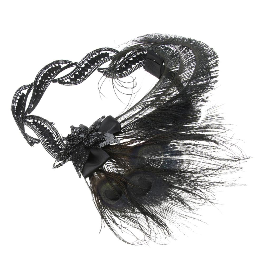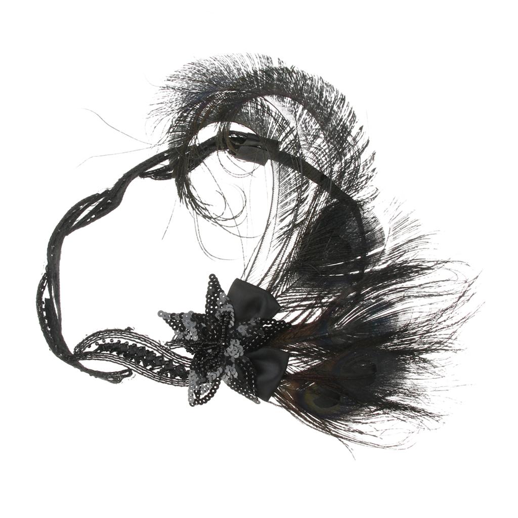 1920s Flapper Headband Roaring 20s Headpiece Gatsby Peacock Feather Headwear