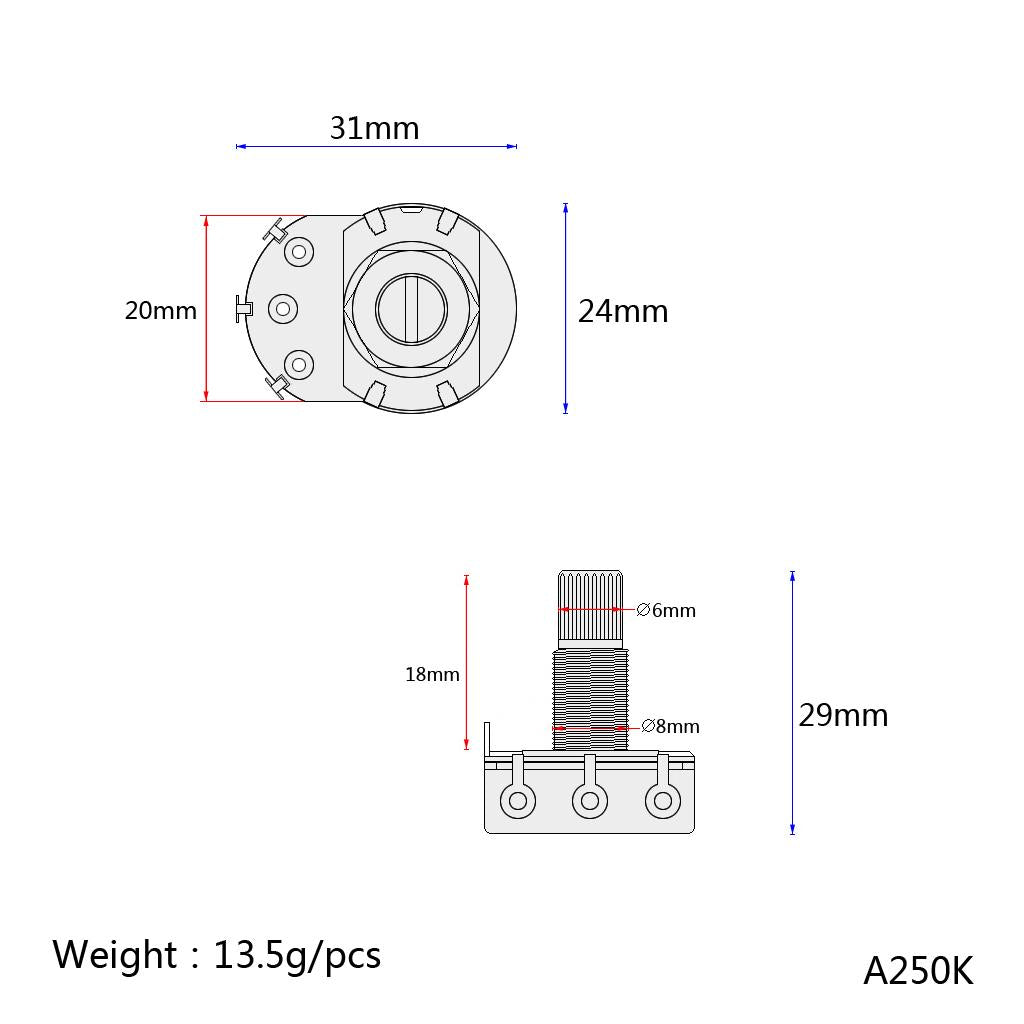 2 Pieces Guitar A250K Potentiometers