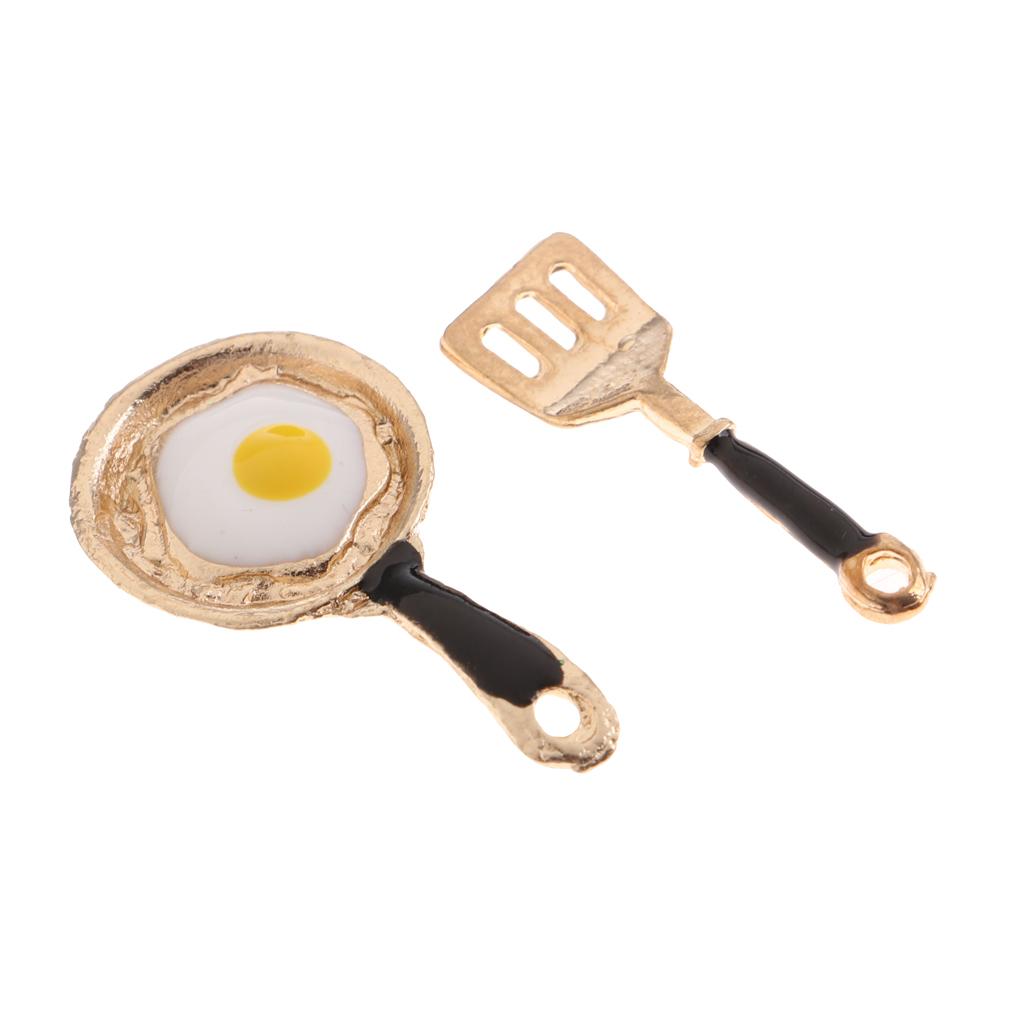 2 Pieces Miniature Frying Egg Pan Fork Set for 1/12 Dolls House Kitchen Cookware Accessories Kids Kitchen Play Toy Black