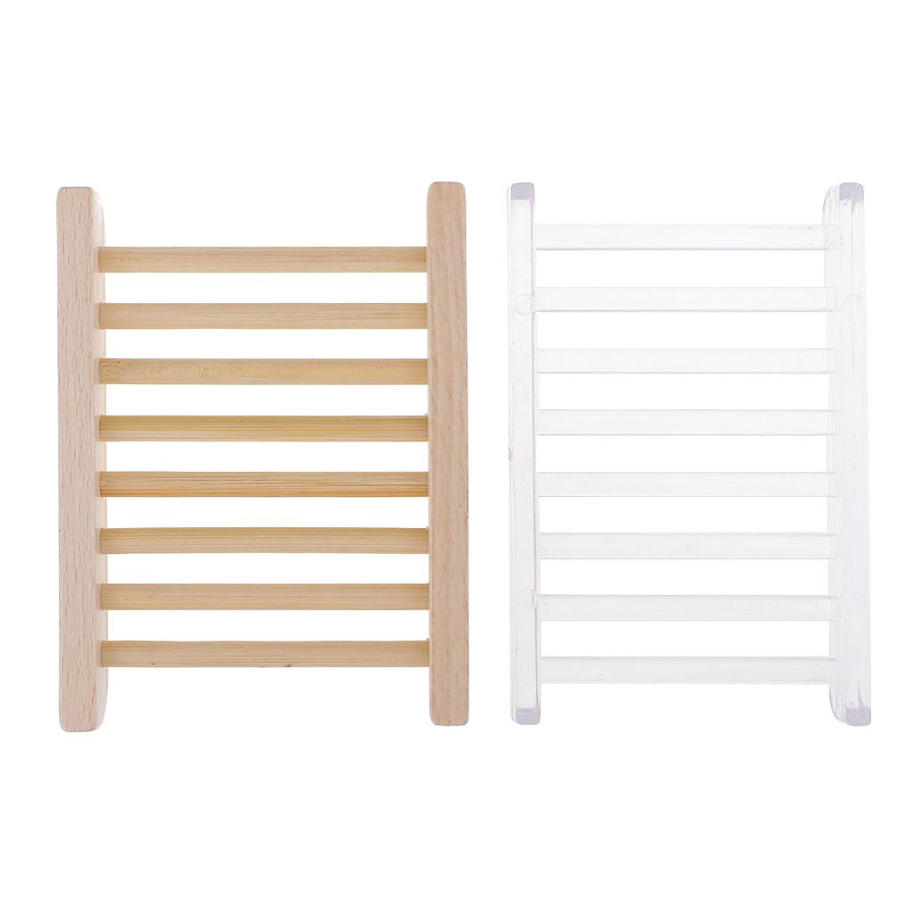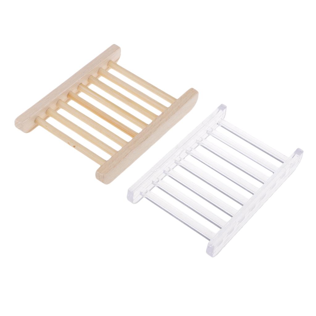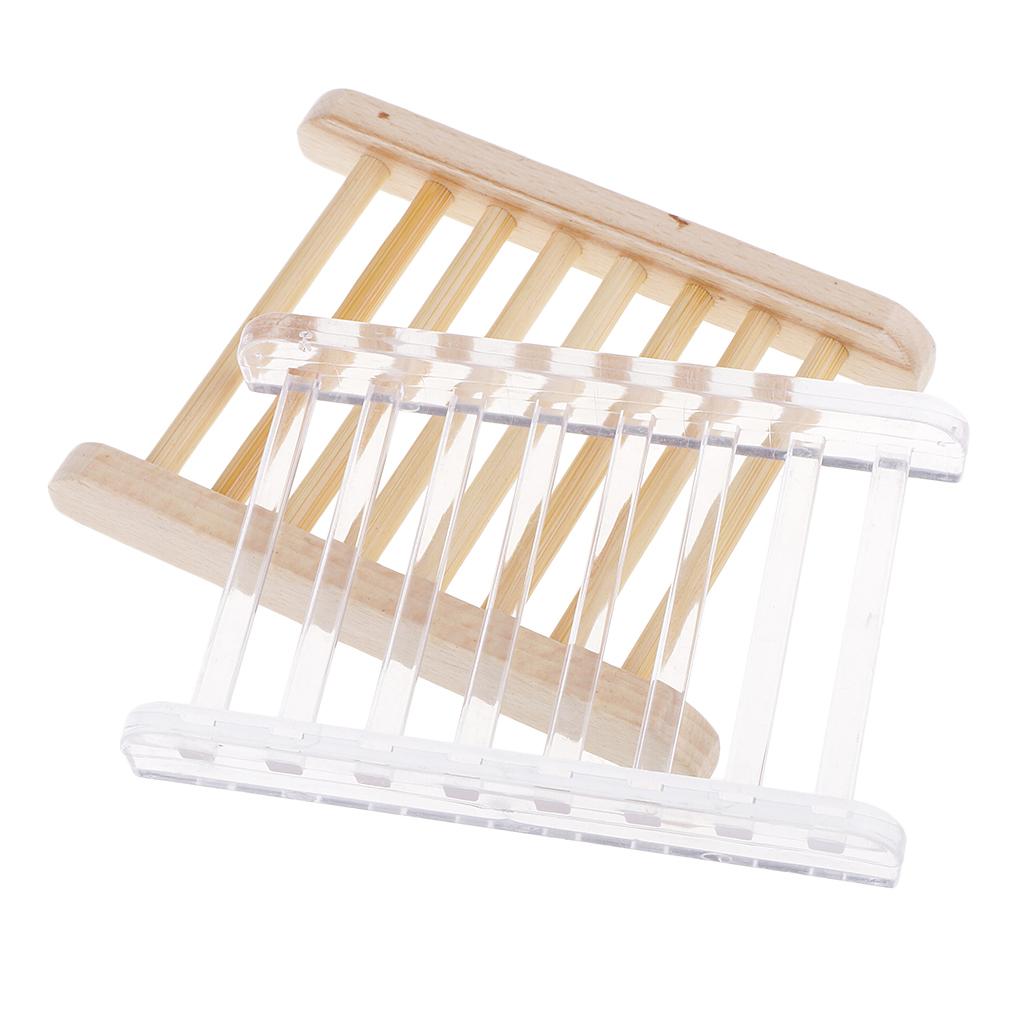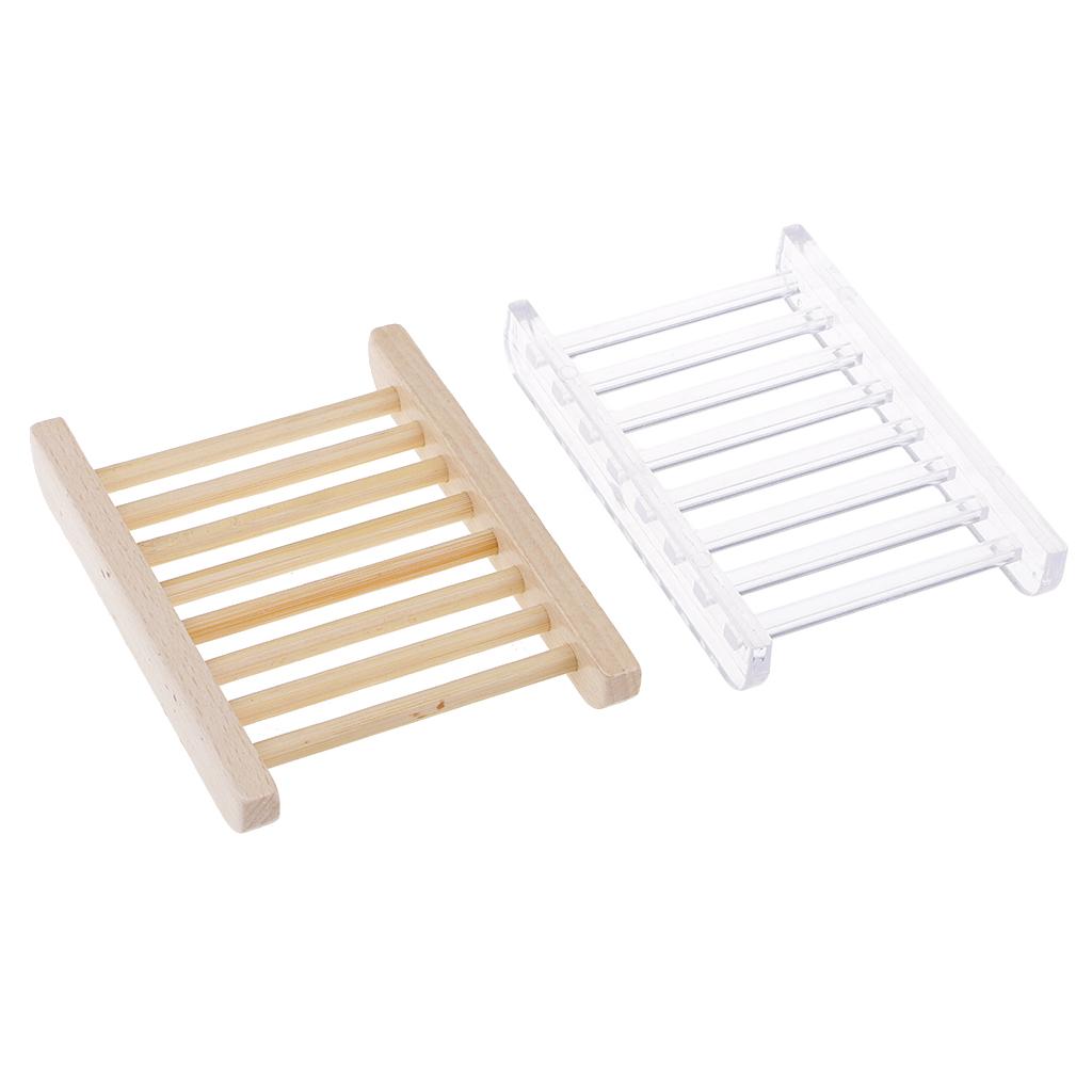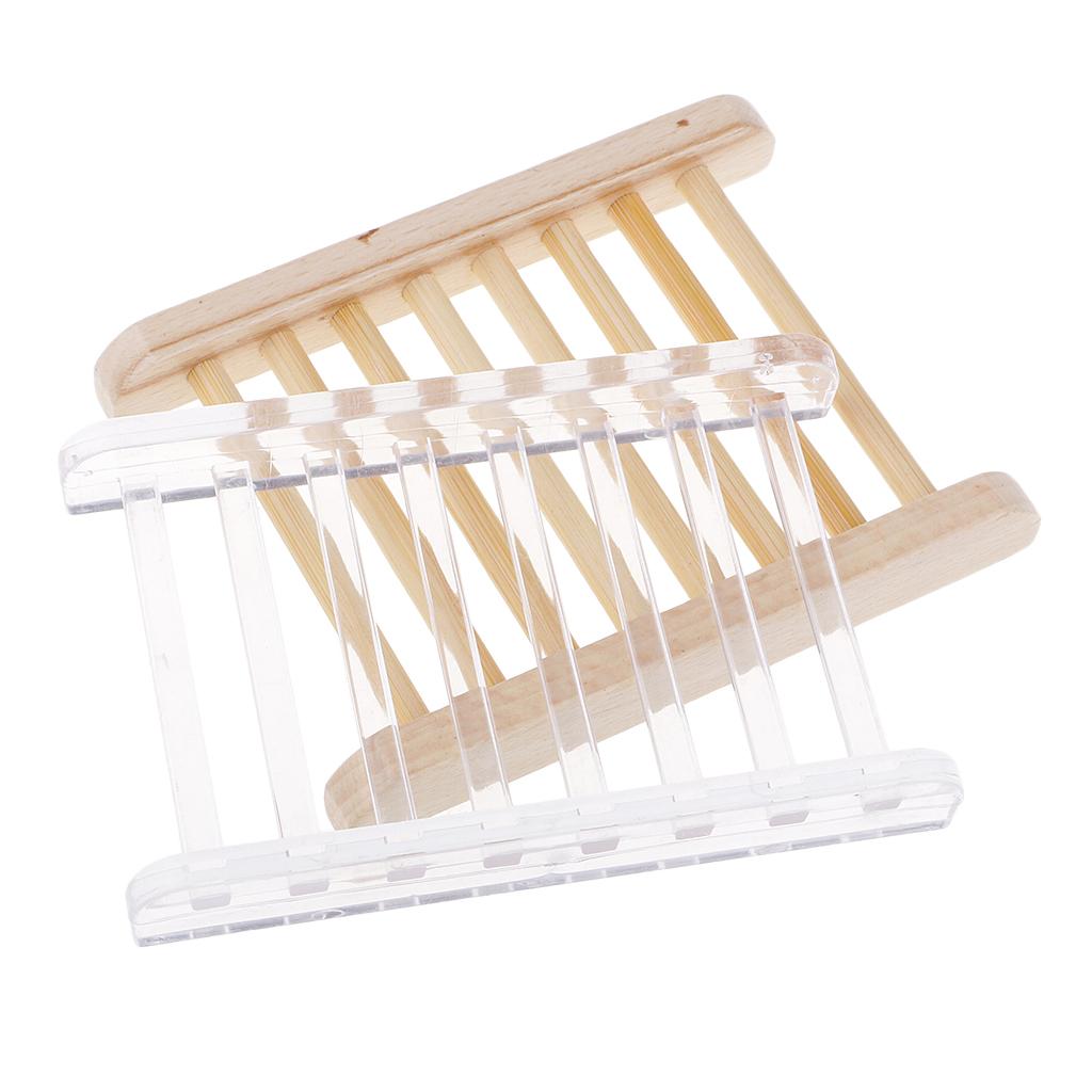 2 Pieces Natural Wood Soap Tray Holder Dish and Clear Acrylic Soap Dish Case Storage Bath Shower Plate Home Bathroom Wash Soap Holder Storage Organizer