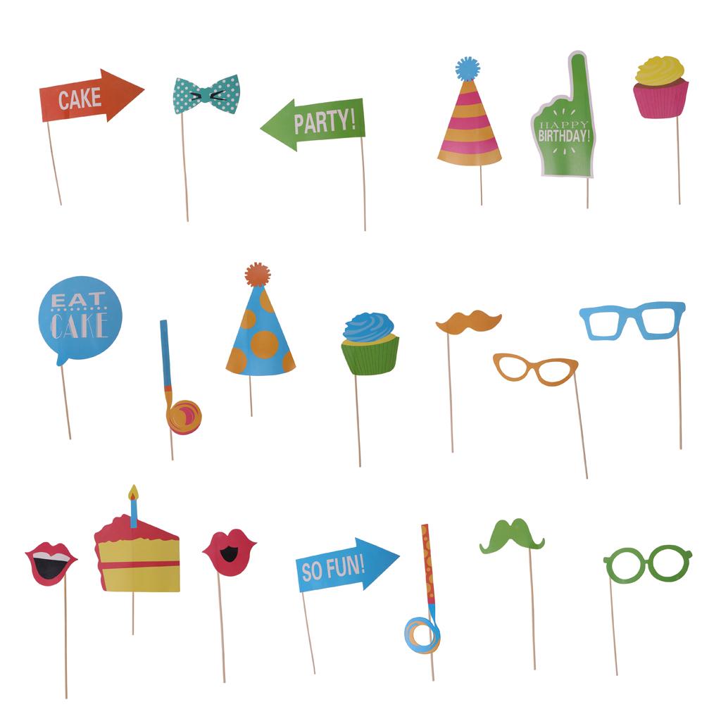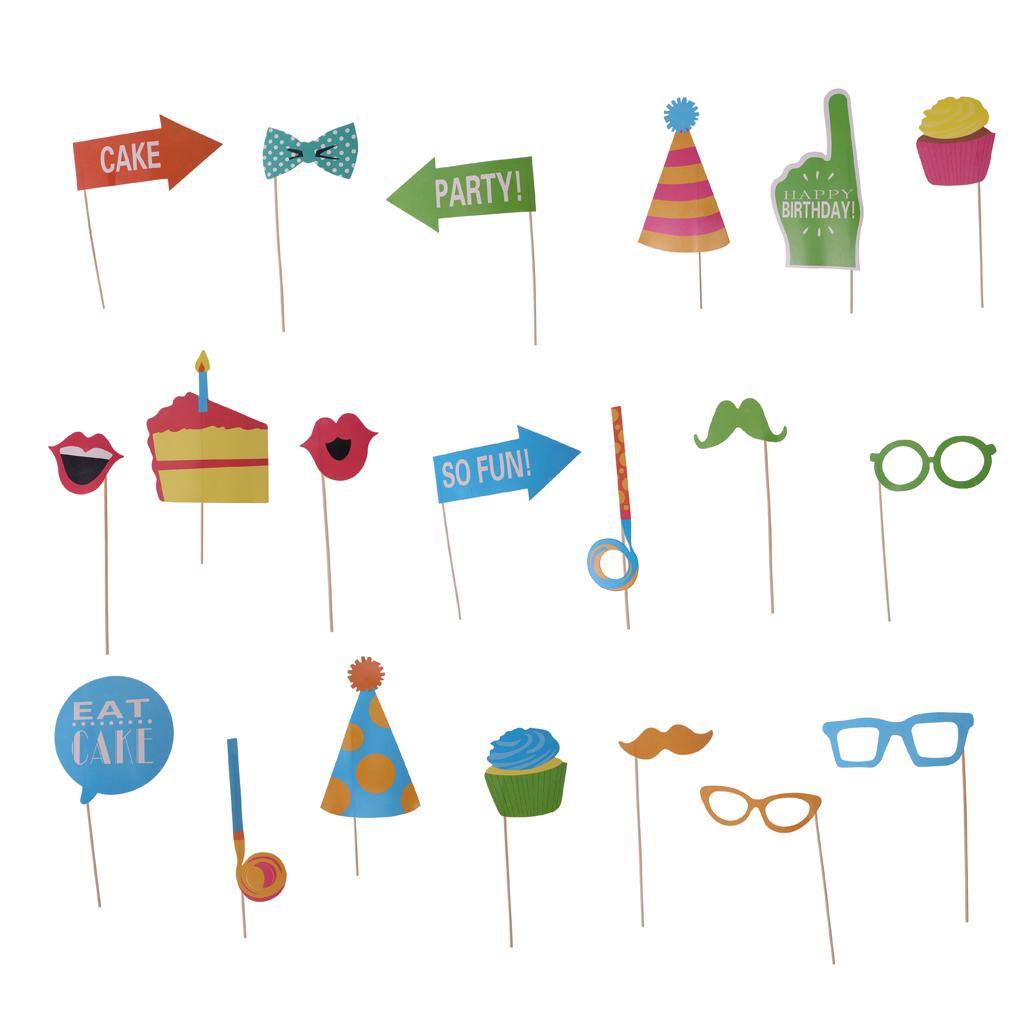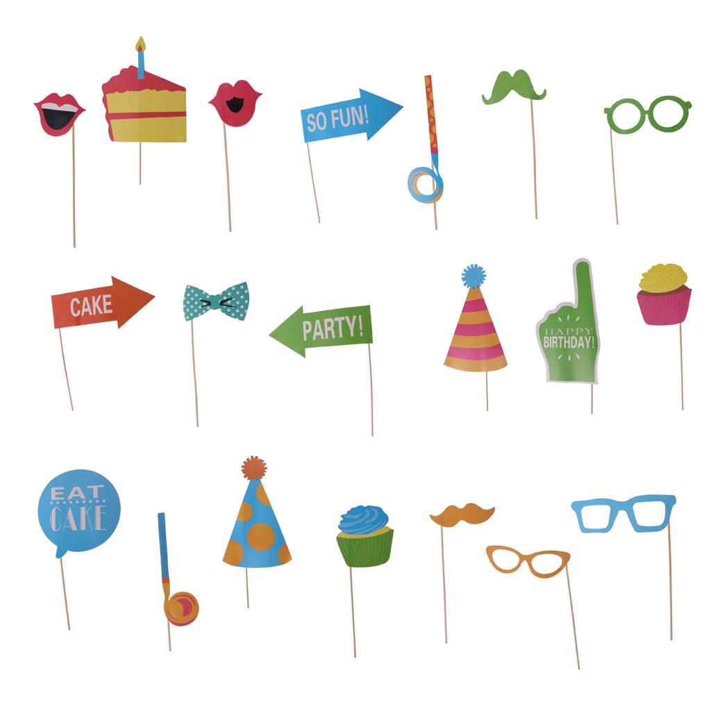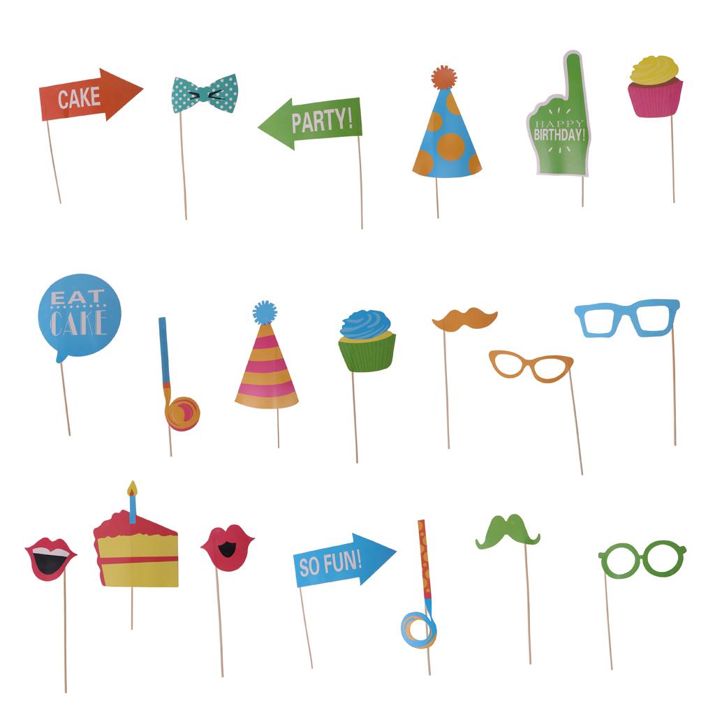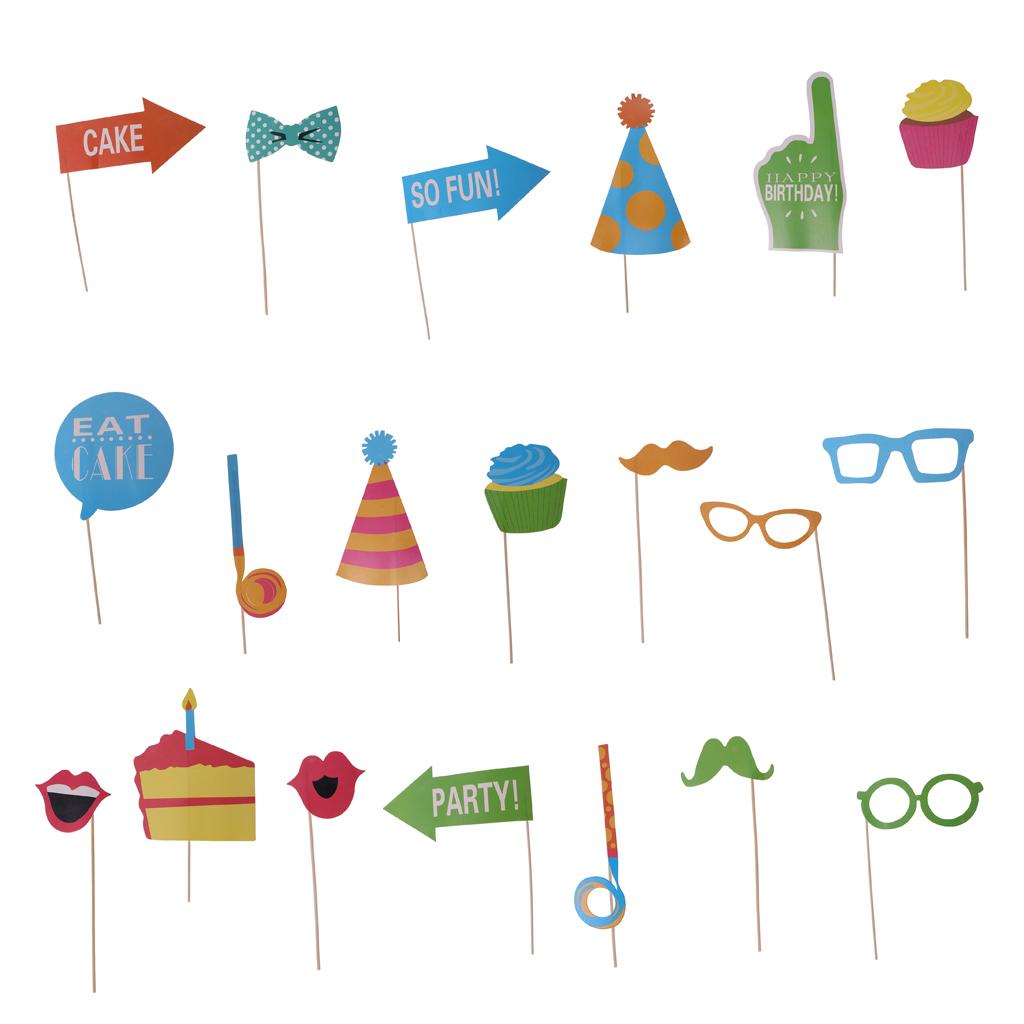 20 Pieces Birthday Photo Booth Props Kit Wedding Party Mask Photobooth Props Dress Up Accessory