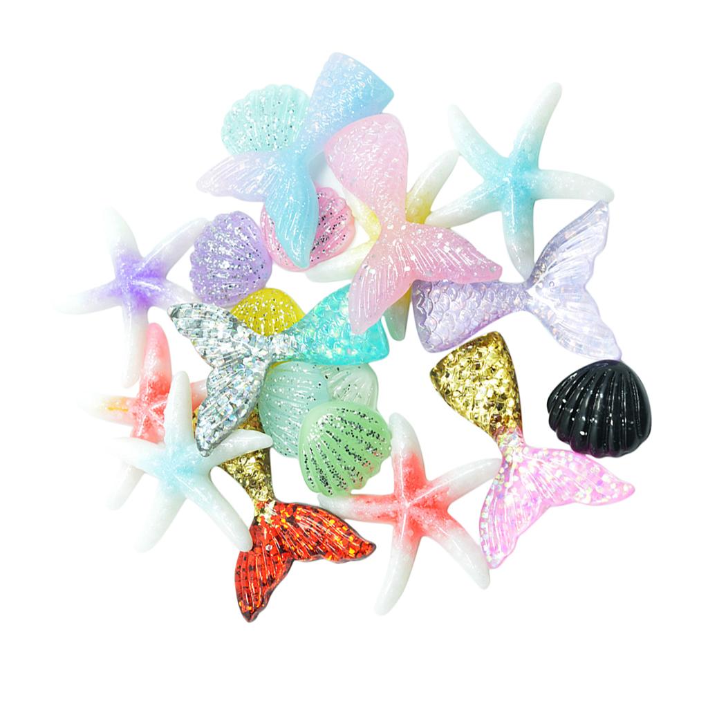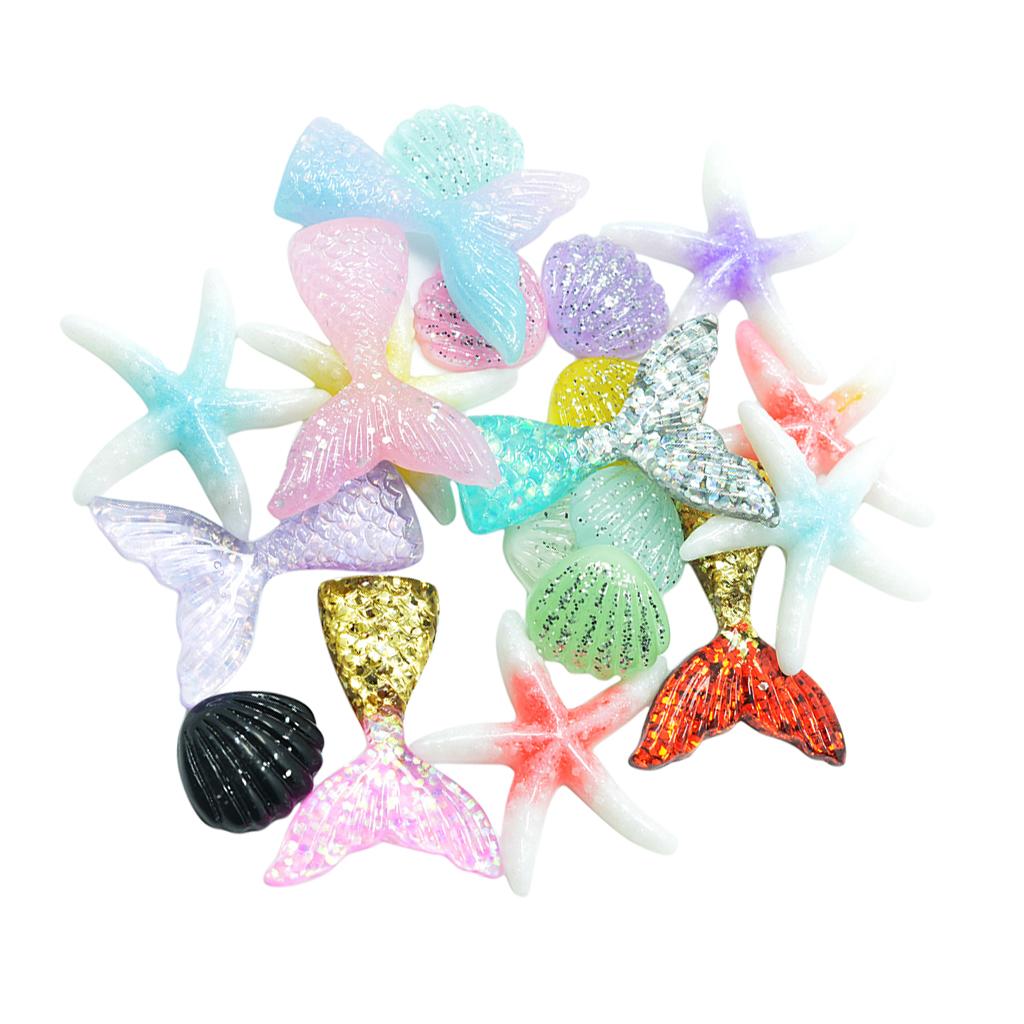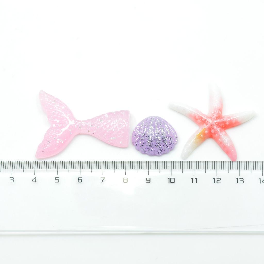 Size: Approx. Mermaid tail: 4.2 x 3.2cm / 1.65 x 1.26 inch, shell: 1.9 x 2cm / 0.75 x 0.79 inch, starfish: 4cm / 1.57 inch