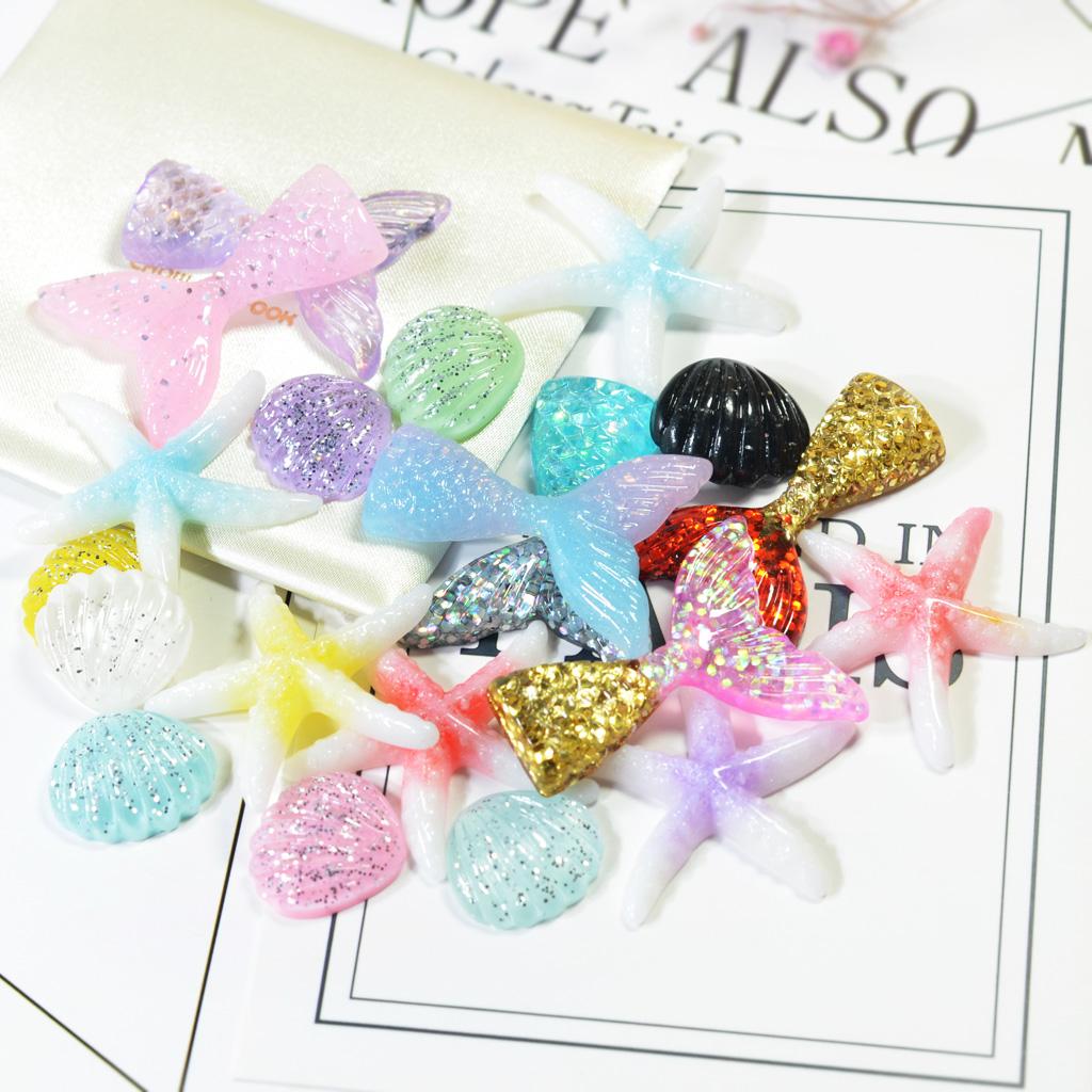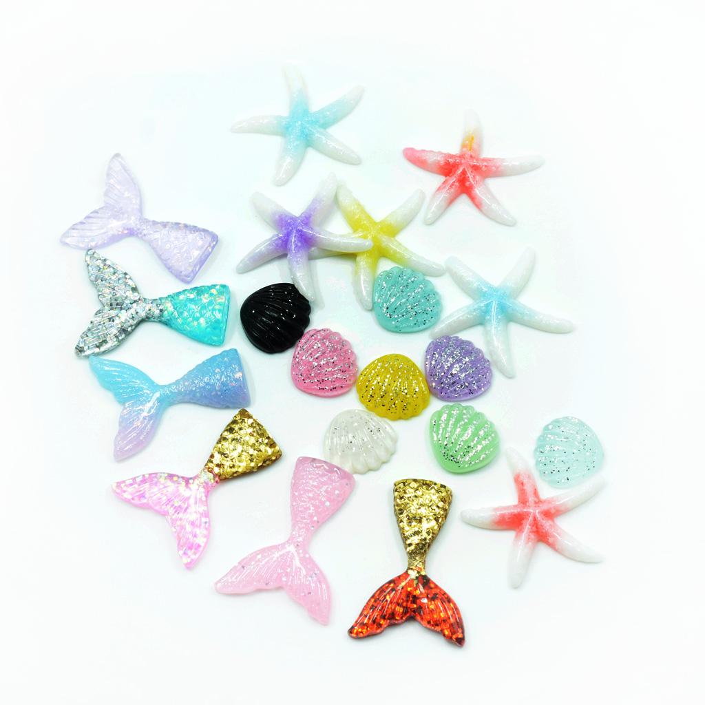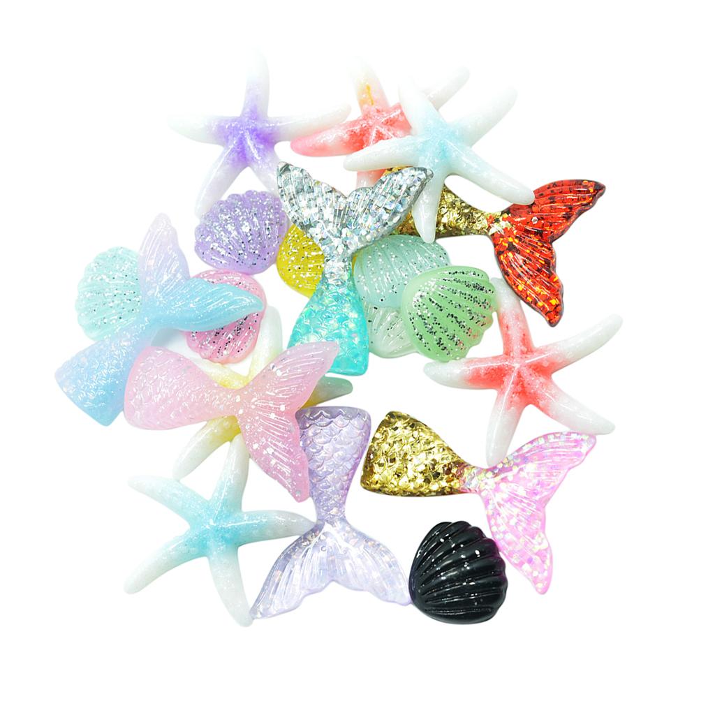 Size: Approx. Mermaid tail: 4.2 x 3.2cm / 1.65 x 1.26 inch, shell: 1.9 x 2cm / 0.75 x 0.79 inch, starfish: 4cm / 1.57 inch