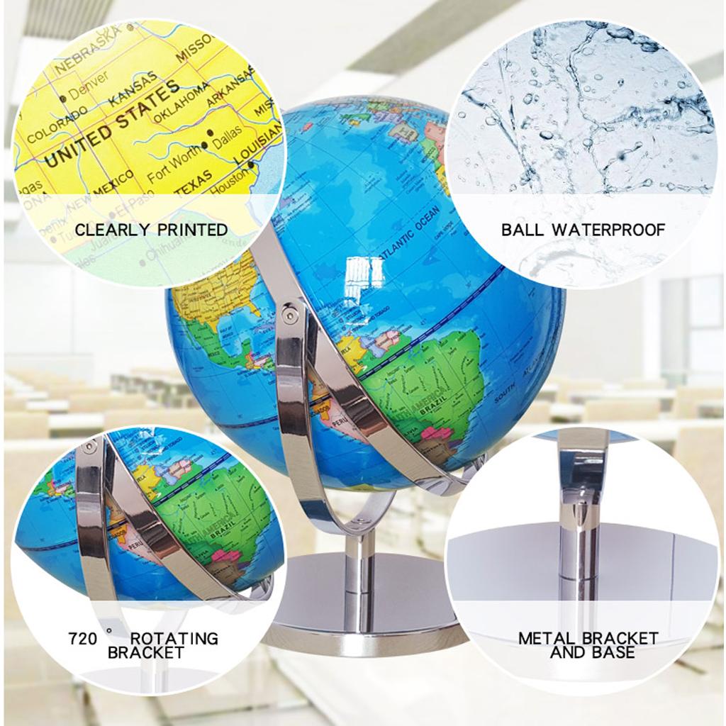25cm Metal Base ABS Geographical World Political Globe Map for Geography & History Teaching Kit Desktop Supplies