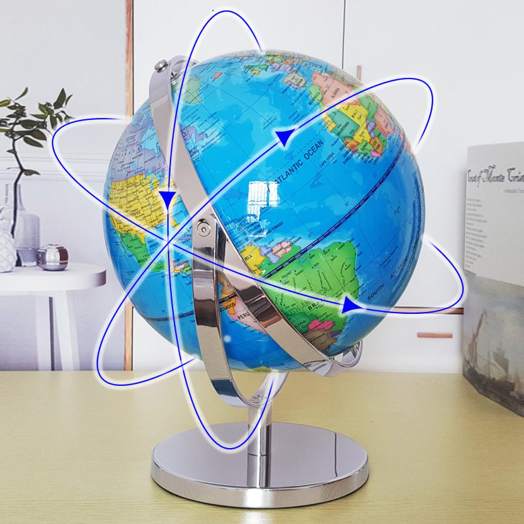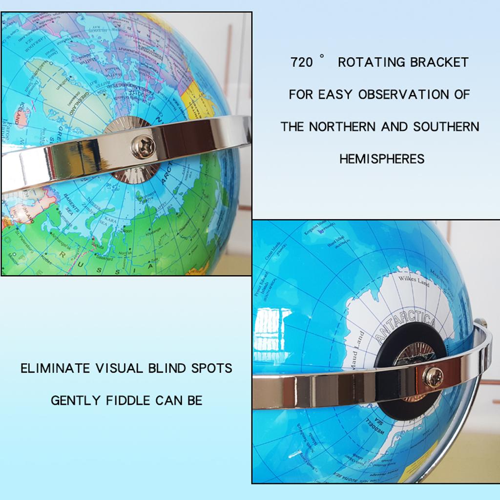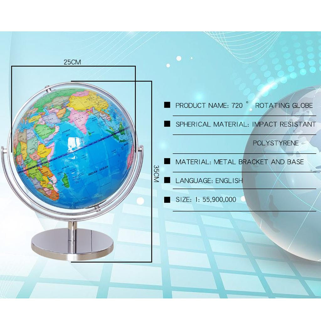 25cm Metal Base 720 Degree Rotating Geographical World Earth Map Globe Home Ornament Blue