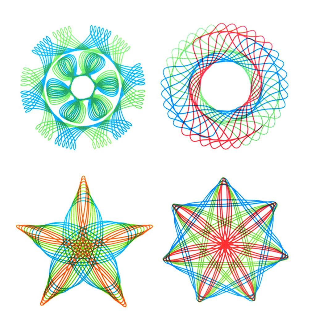 Kids can create thousands of beautiful picture by using spirograph, and it can improve kids' practical ability, cultivate their aesthetic and develop their intelligence.