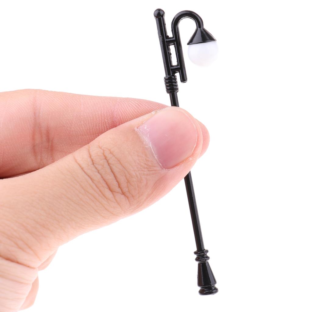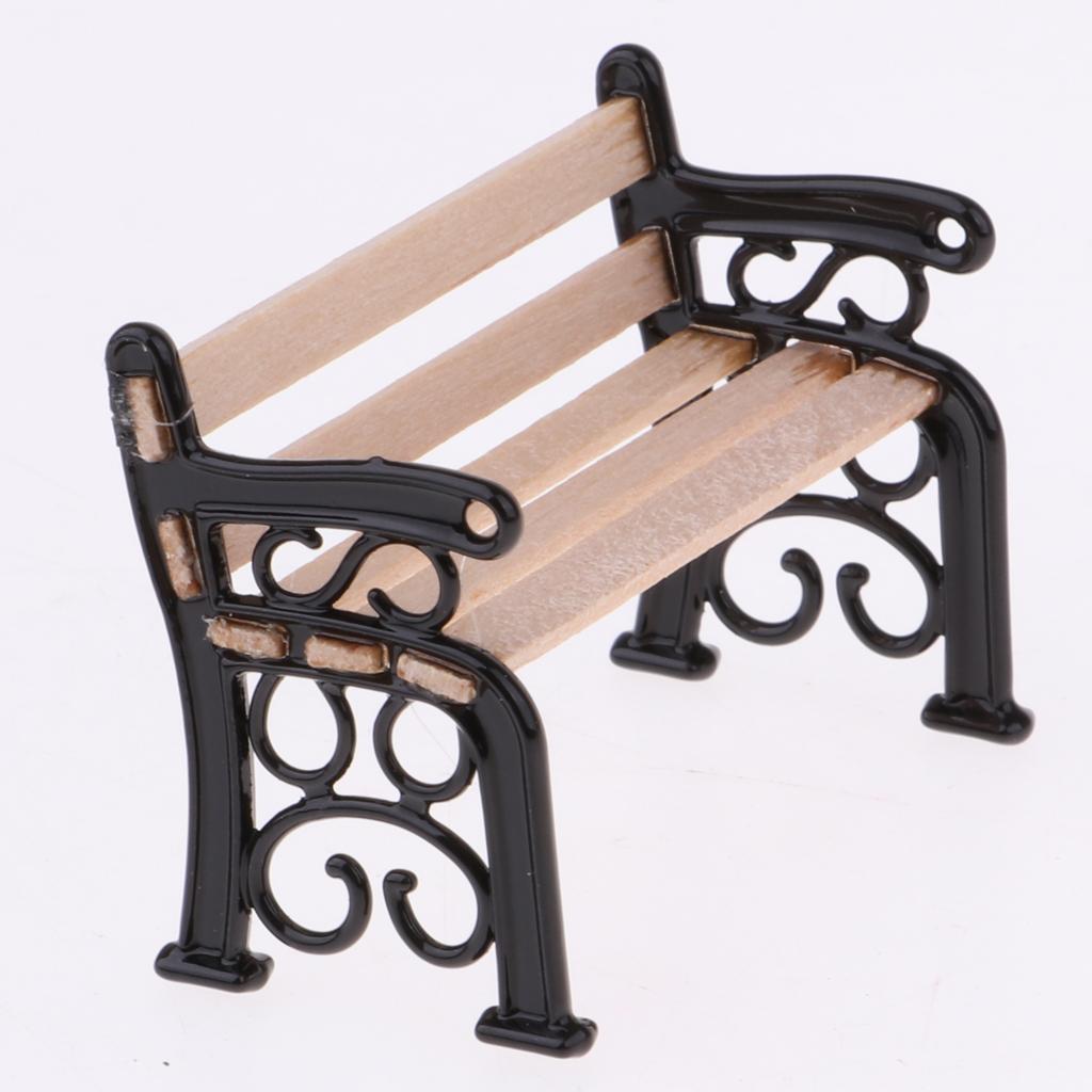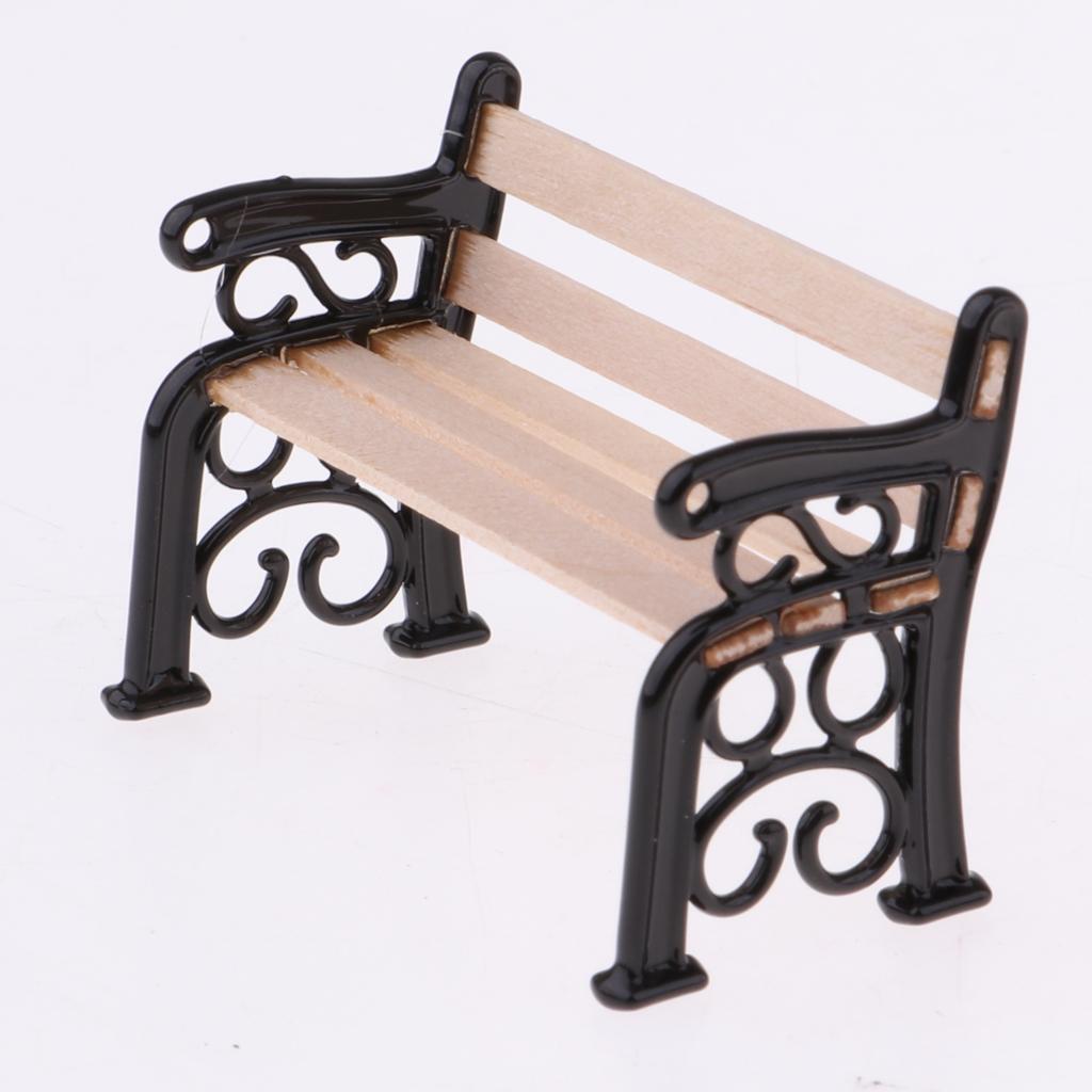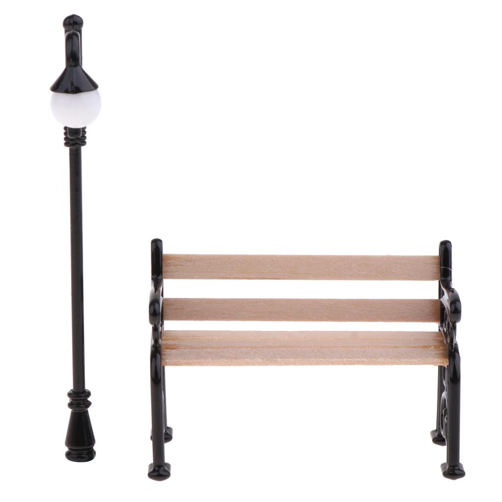 2 pieces dollhouse furniture lifelike mini outdoor garden ornament wooden park bench with metal armrest and street lamp craft accessories