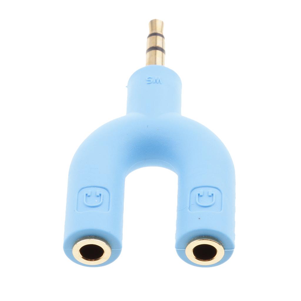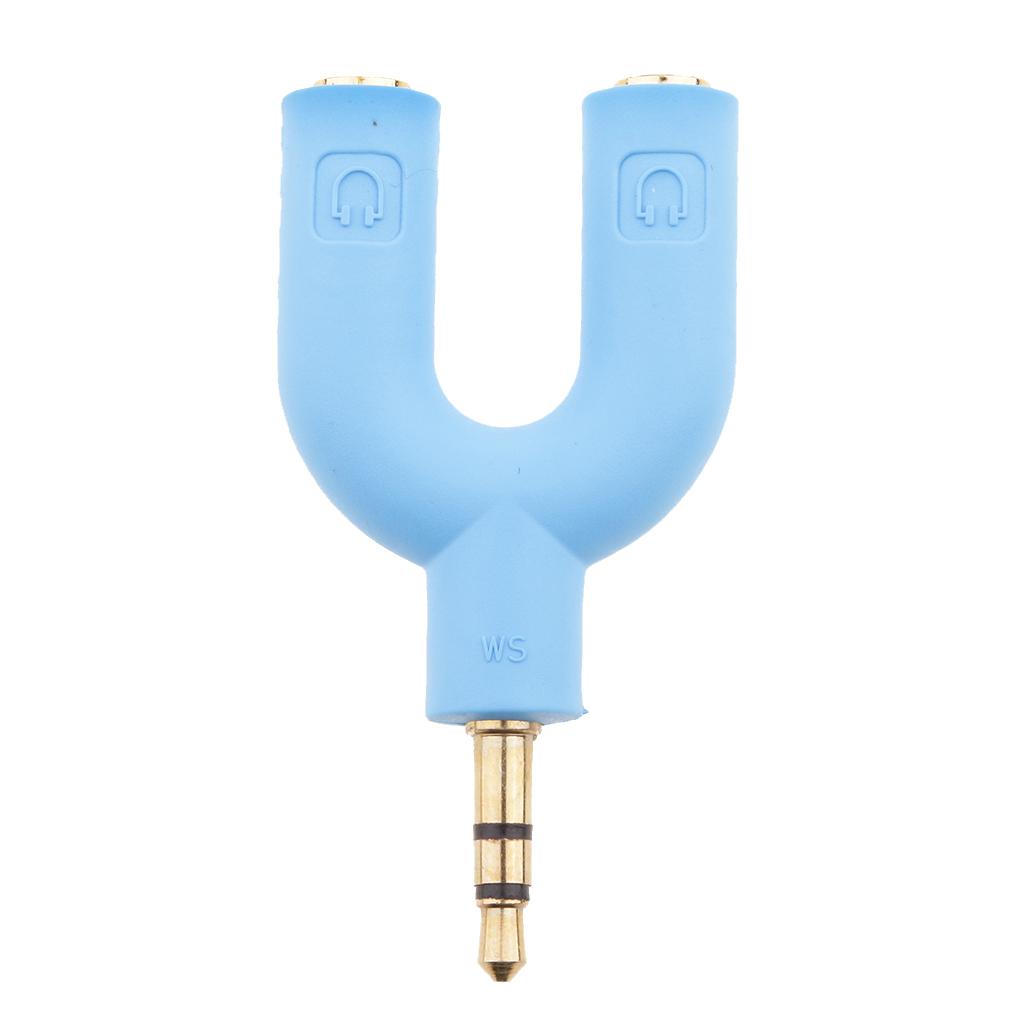 3.5mm Audio Splitter Jack Earphone Headphone 2 Ways U Adapter Keyring Blue