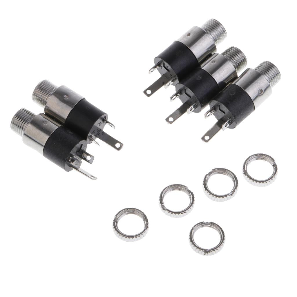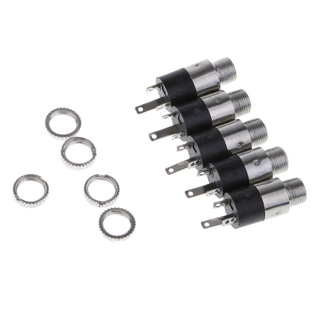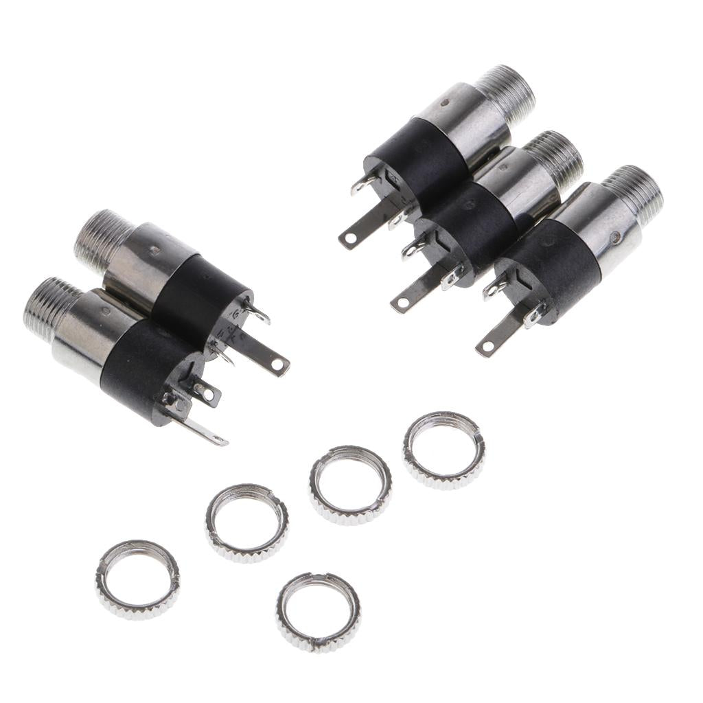 3.5MM Female Plating Stereo Jack Panel Mount Solder Connector Terminals With Locking Nuts-3.5MM Headphone Audio Jack, Pack of 5