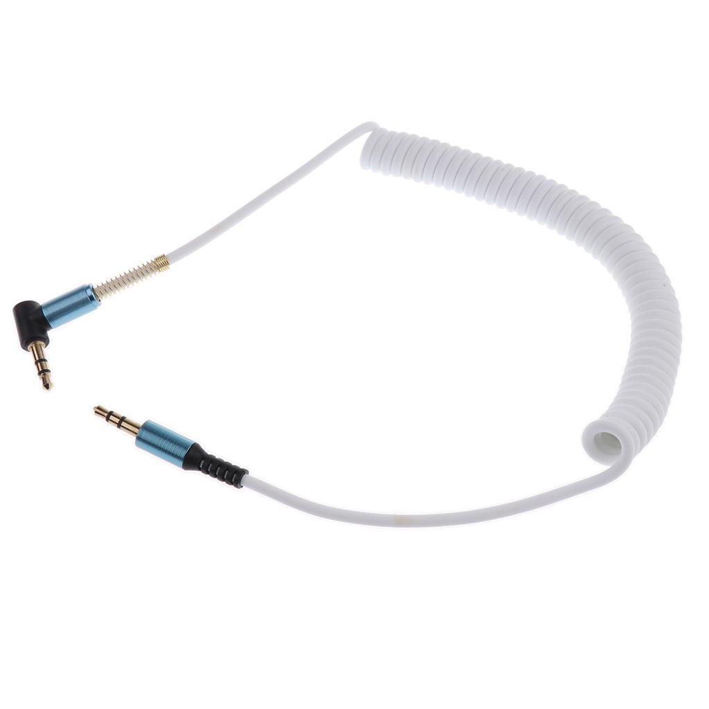 3.5mm Male To 3.5mm Male Coiled Stereo Audio Headphone Cable L-Shaped White